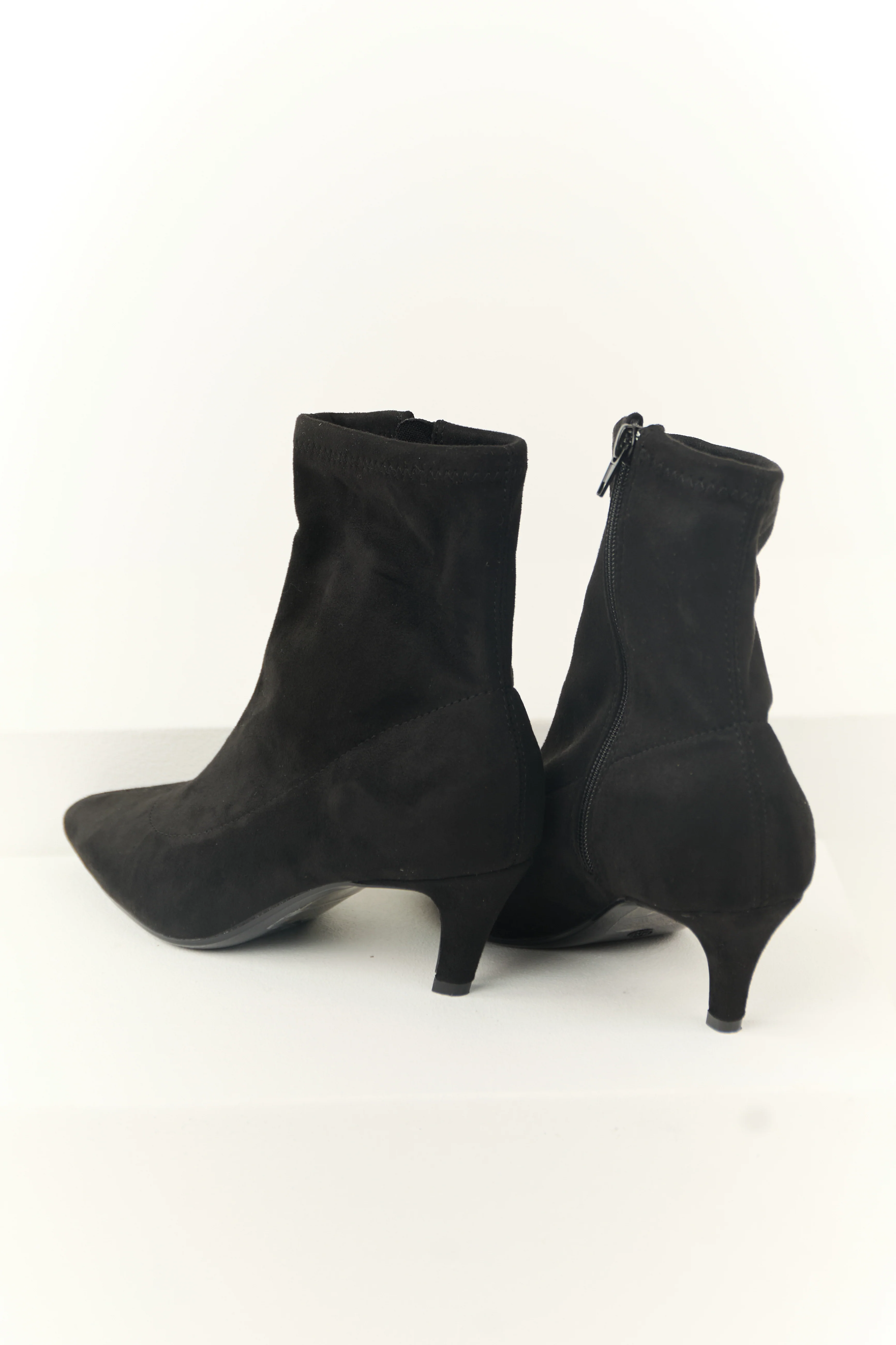 Black Faux Suede Pointed Toe Ankle Booties with Heel