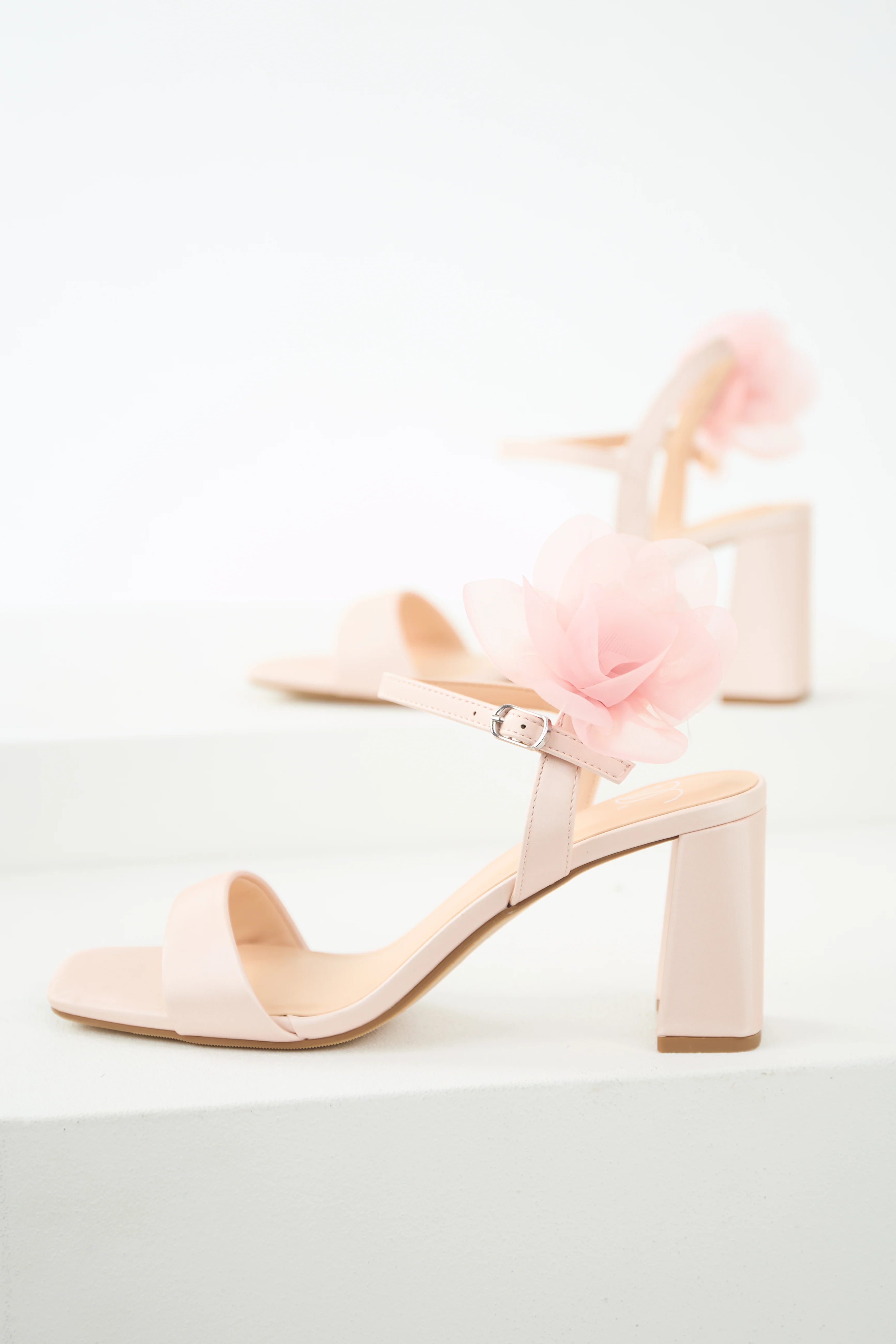 Dusty Blush Floral Detail Open Toed Heels