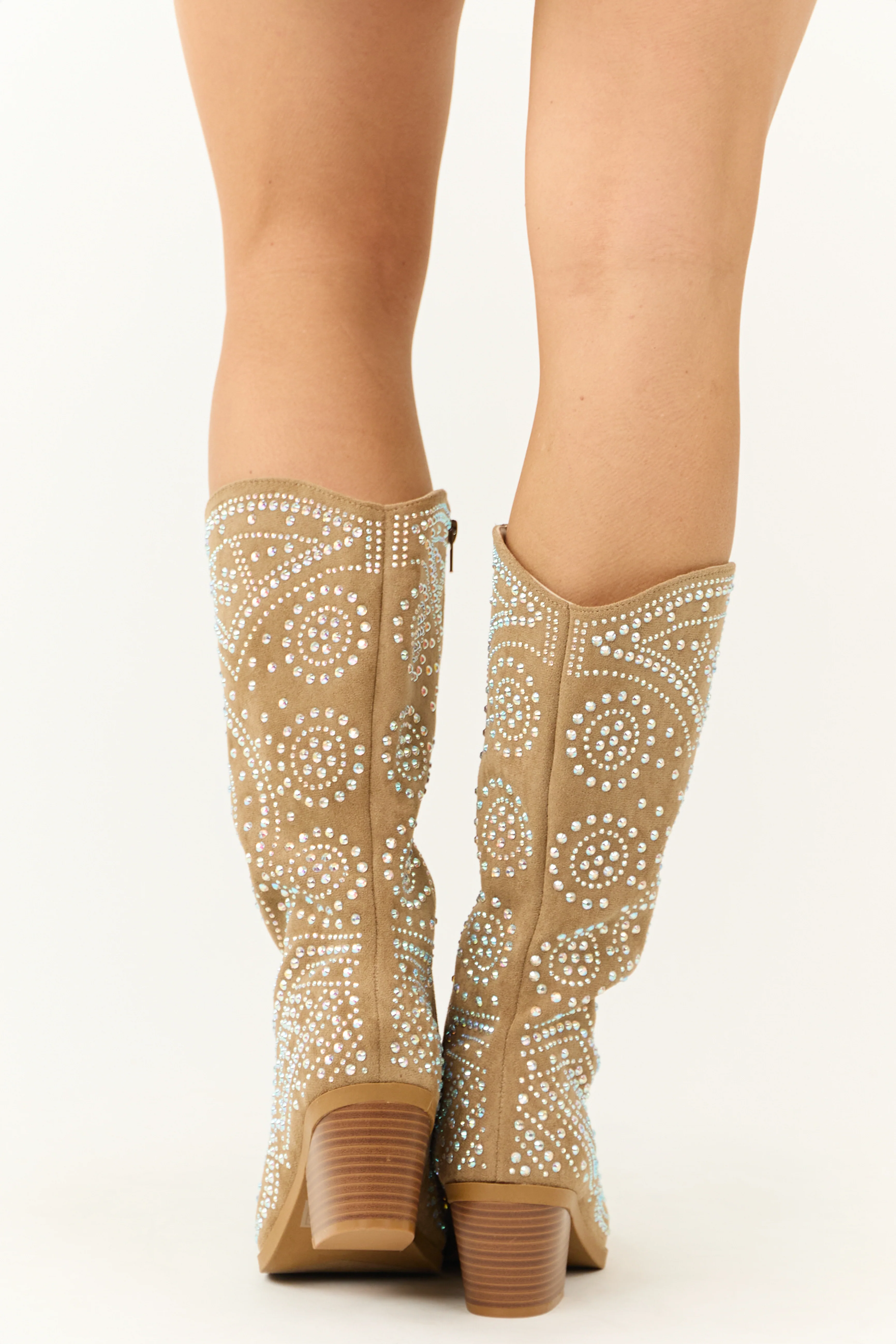 Latte Rhinestone Studded Western Boots
