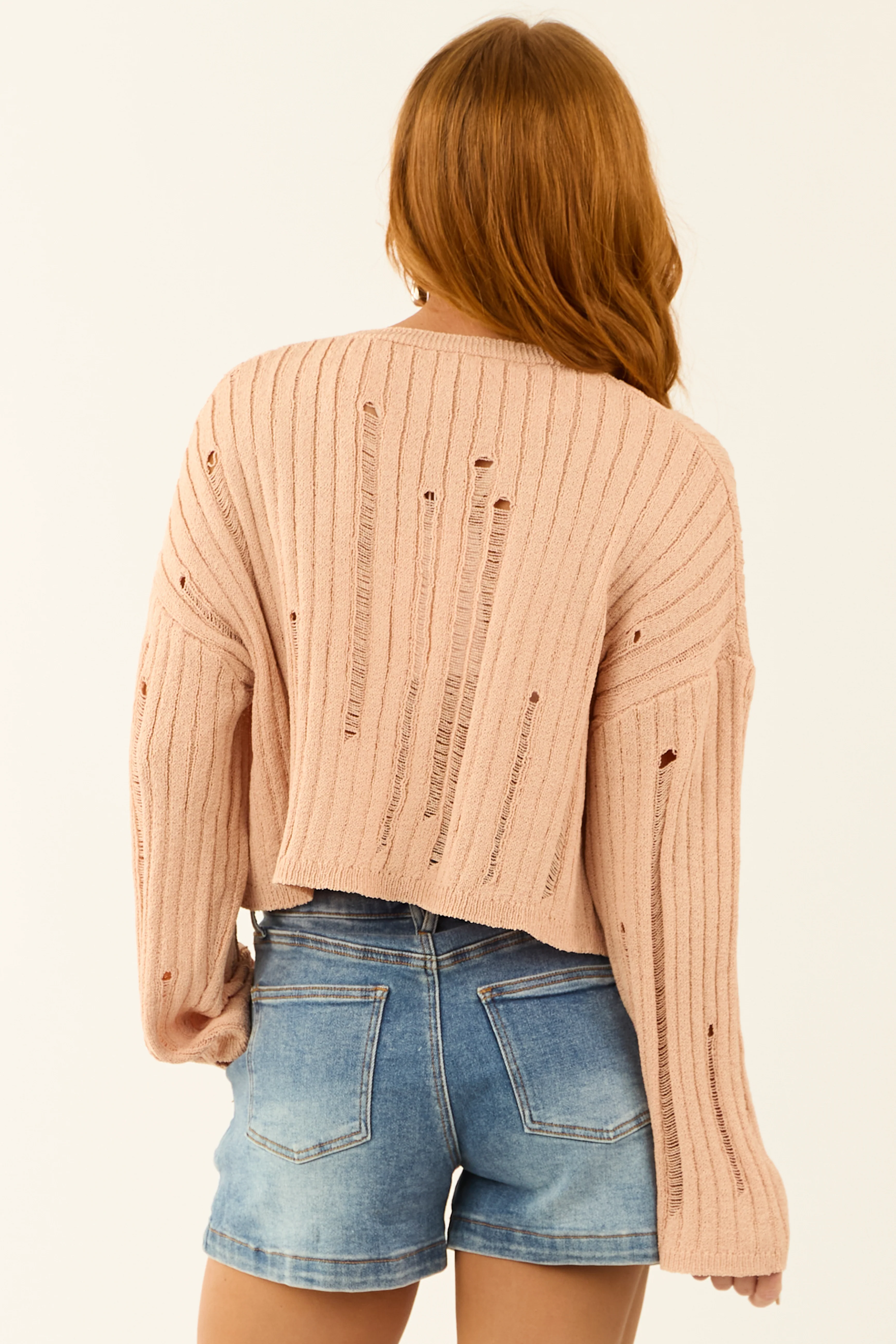 Dusty Blush V Neck Flare Sleeve Cropped Sweater