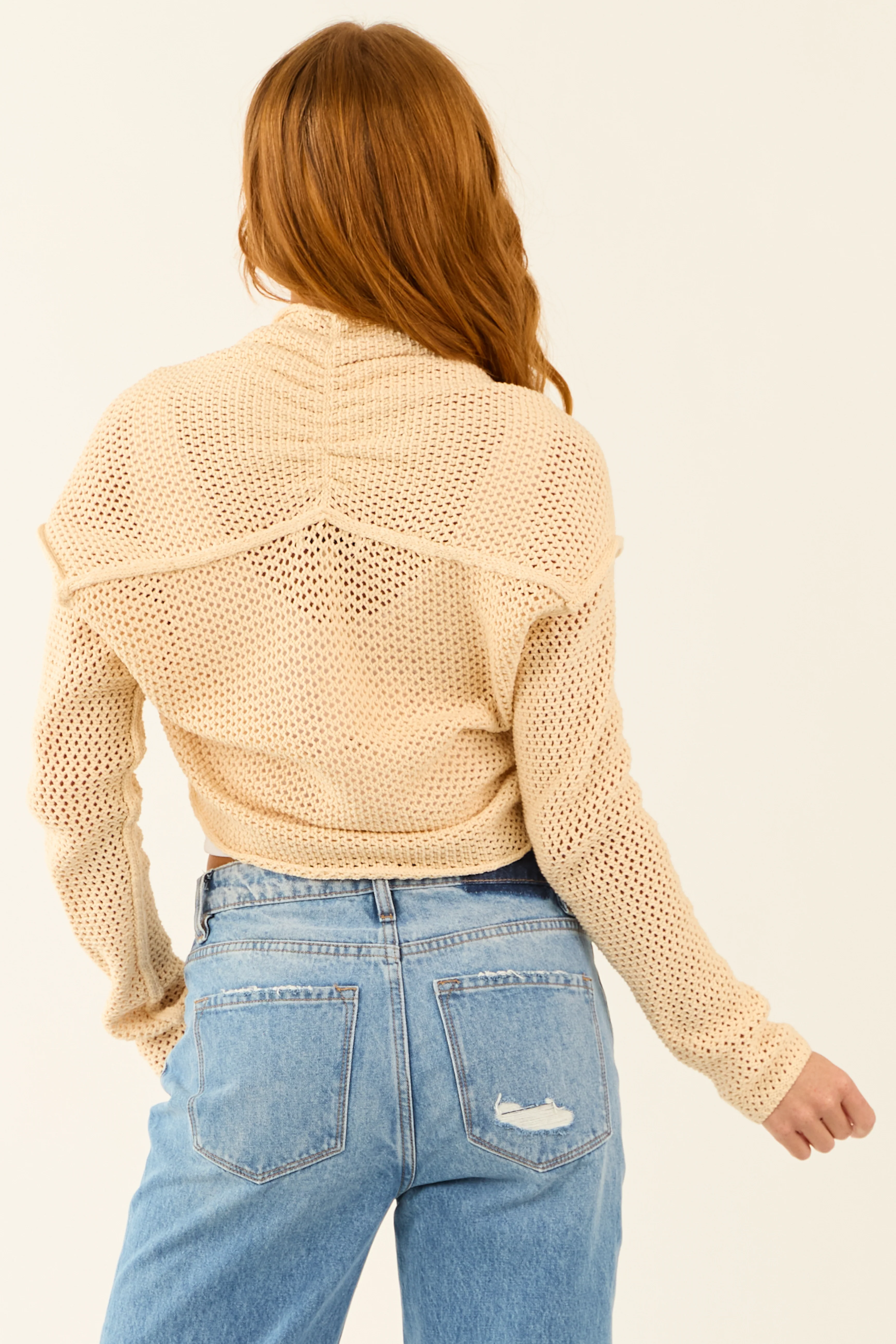 Dusty Blush Open Knit Two Tie Long Sleeve Cardigan