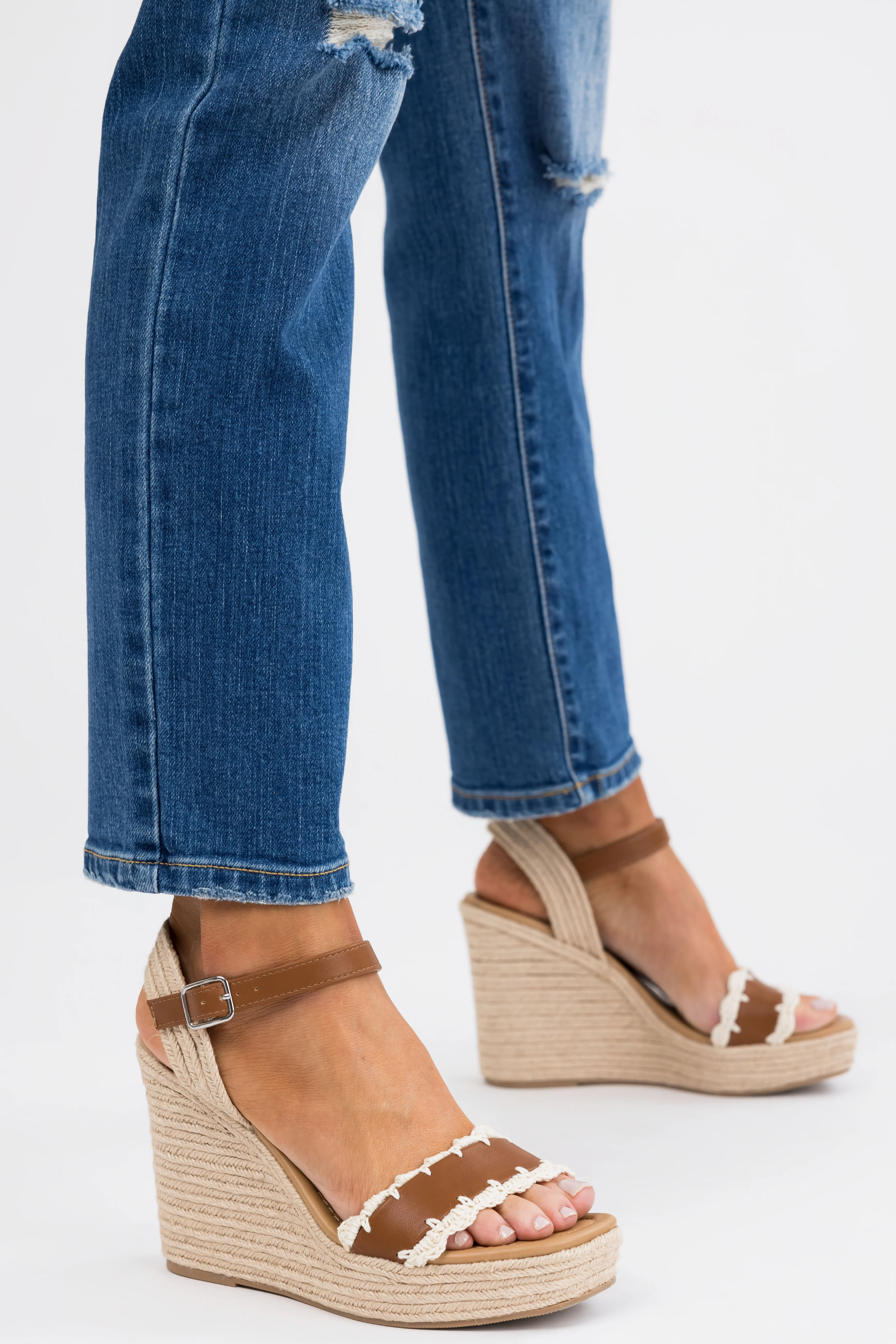 Sepia Straw Trim Cut Out Strap Slide Sandals