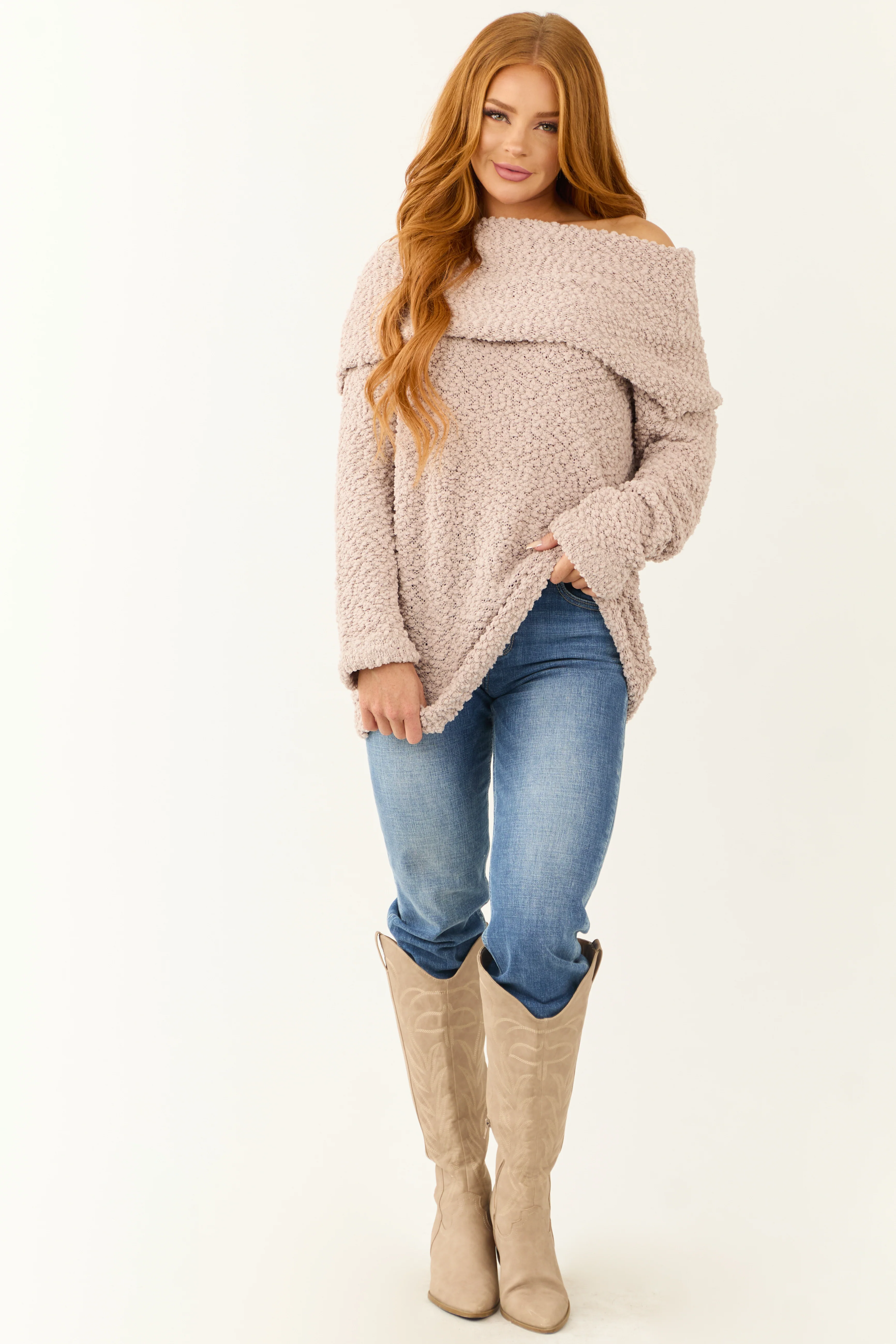 Oatmeal Off the Shoulder Long Sleeve Sweater