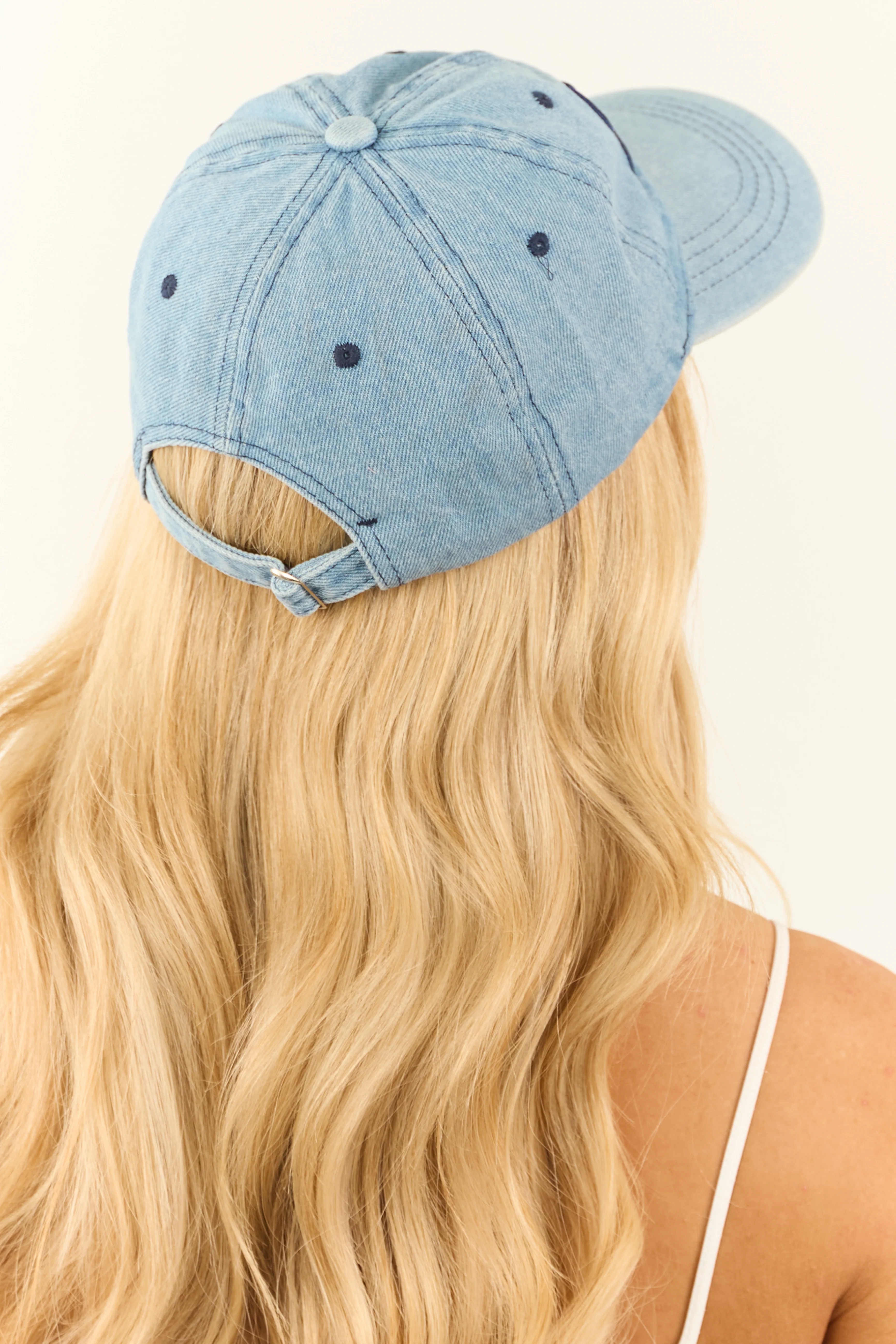 Medium Wash Denim Bow Embroidered Baseball Cap