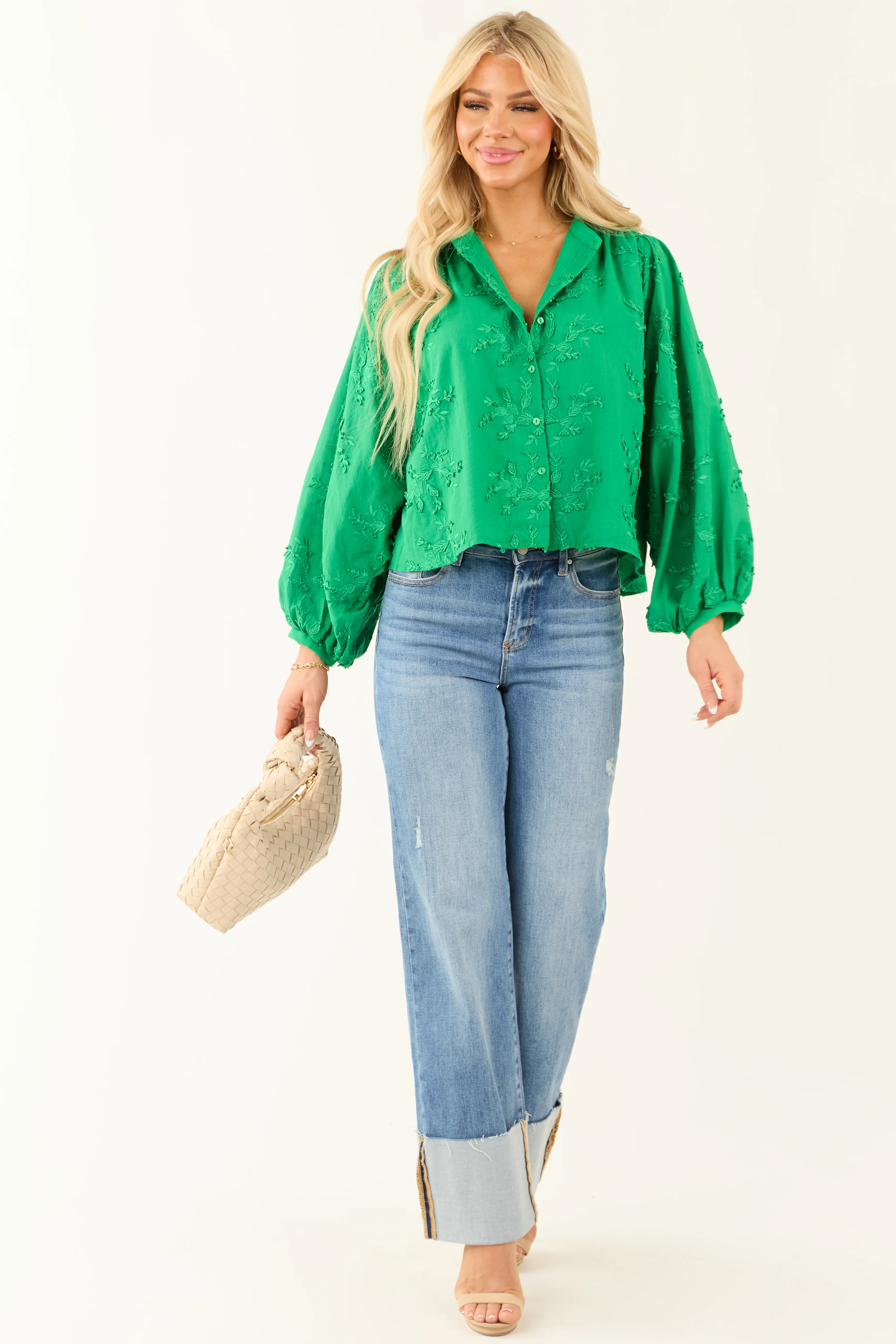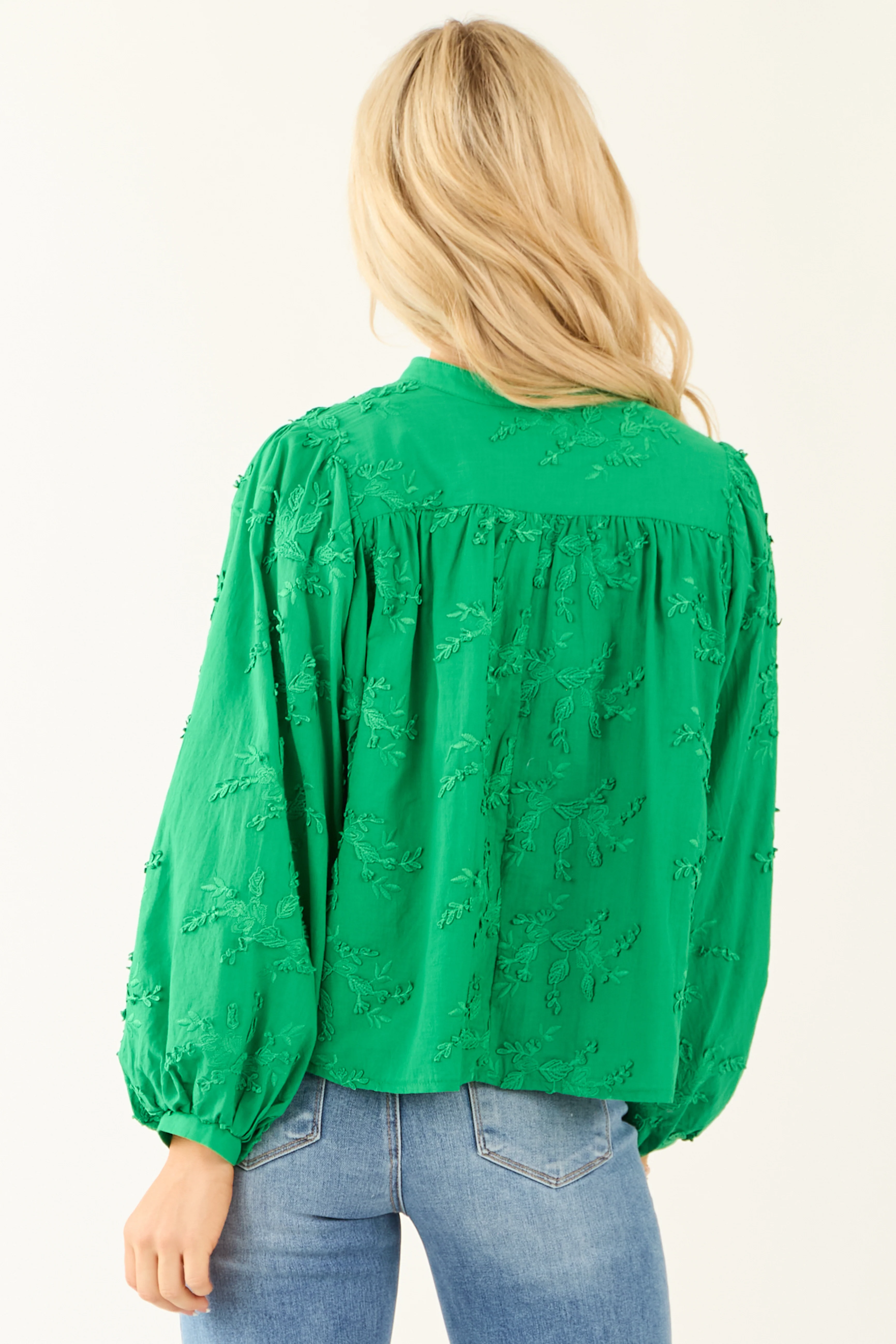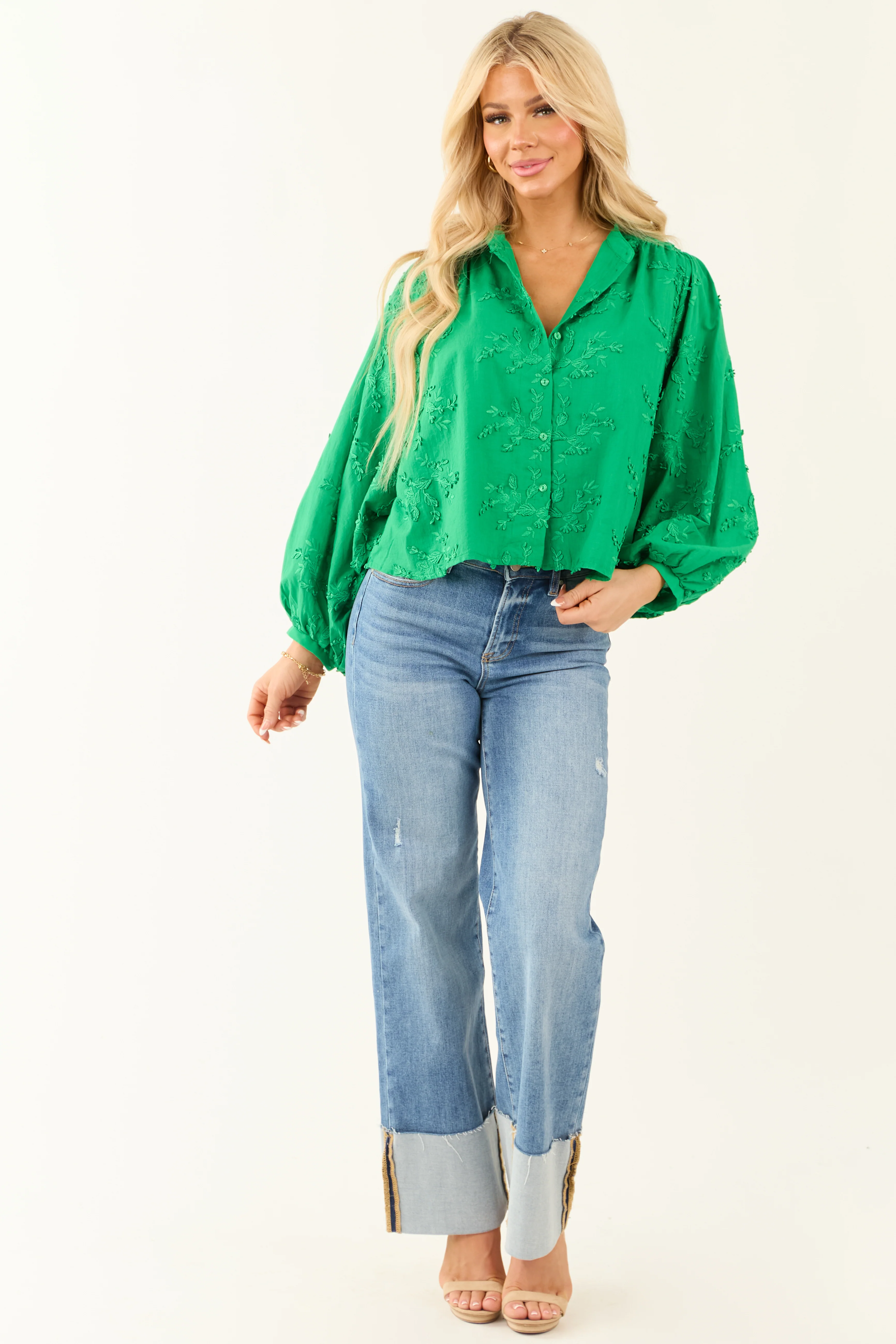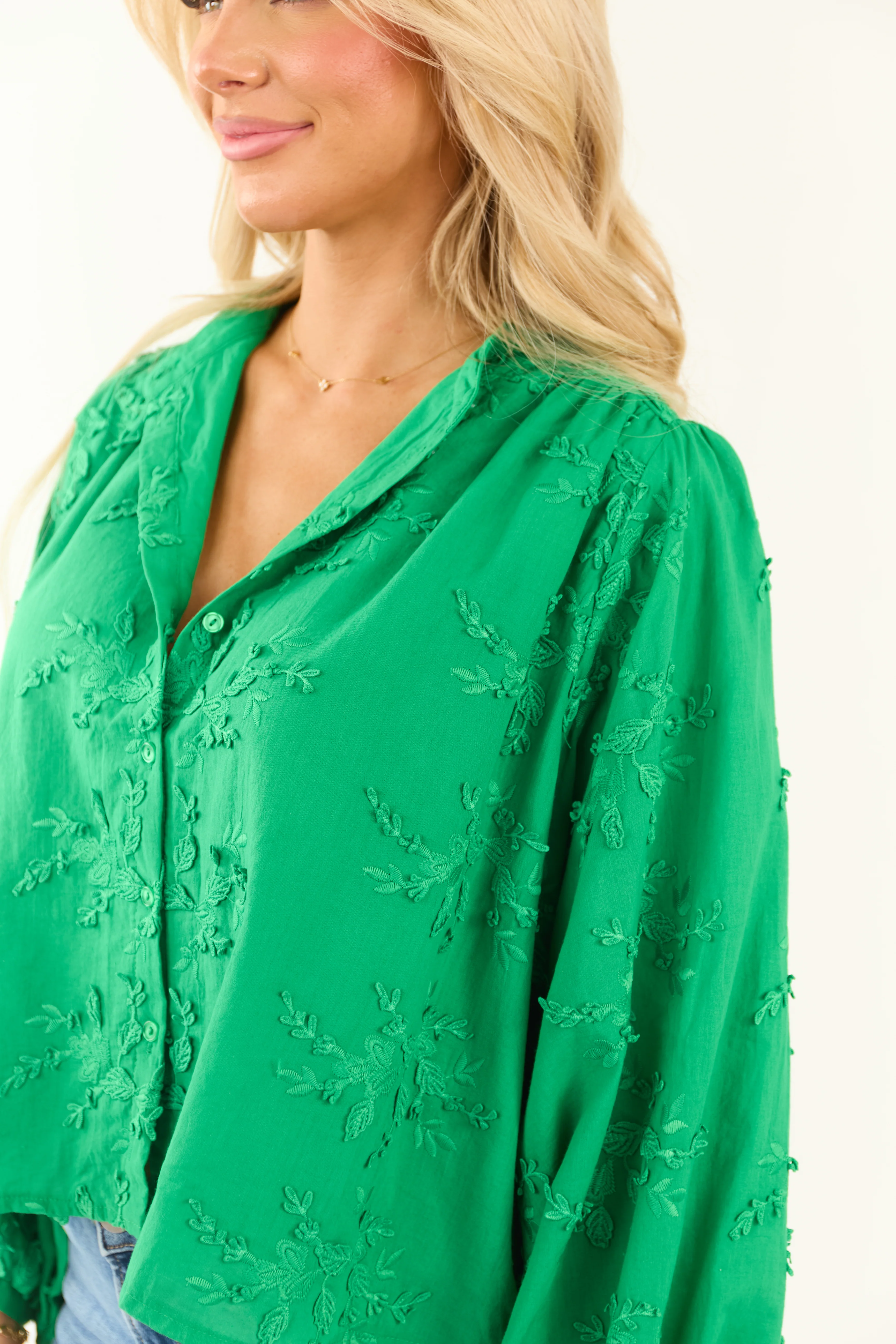 Jade Floral Embroidery Button Down Long Sleeve Top