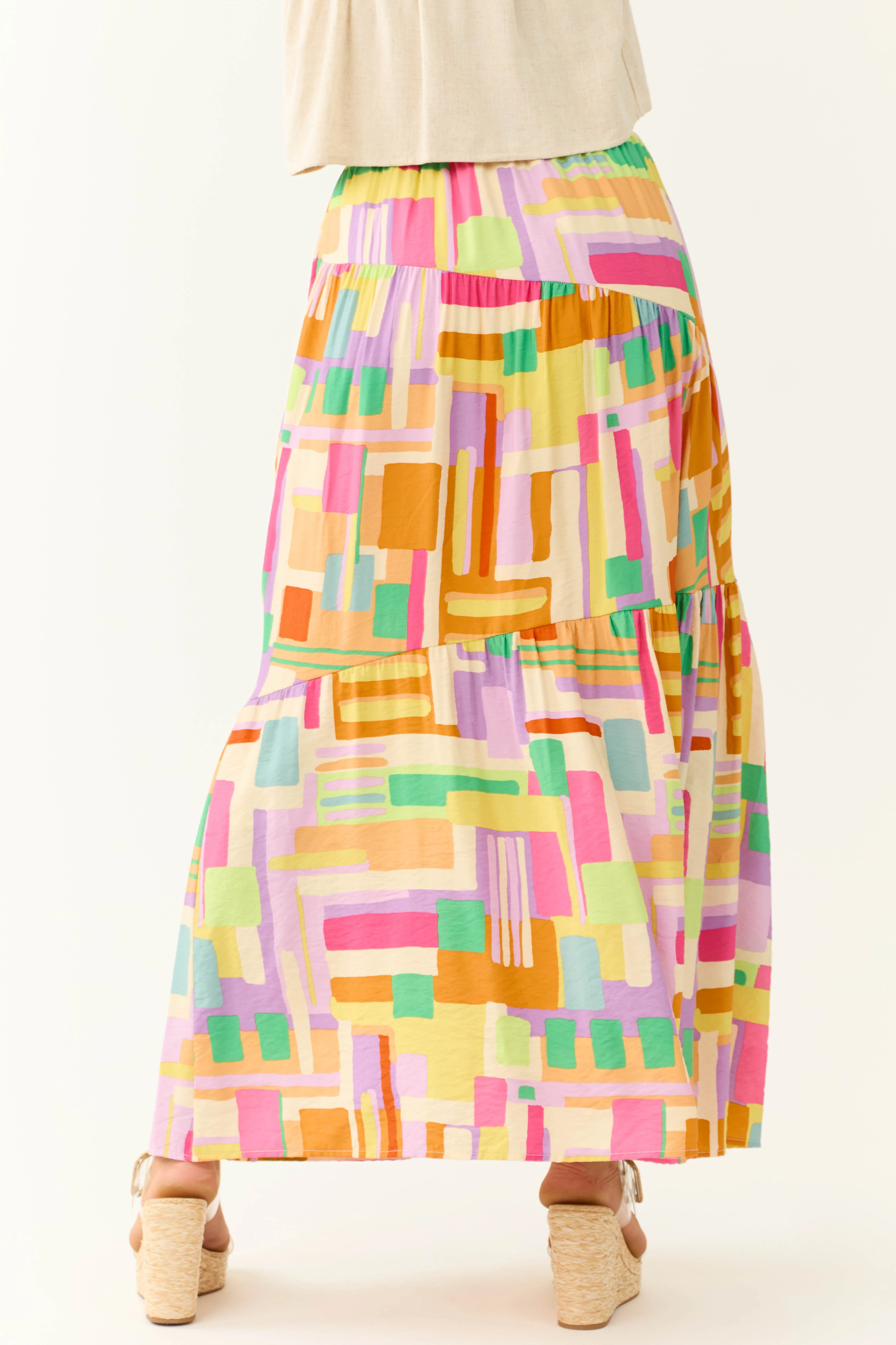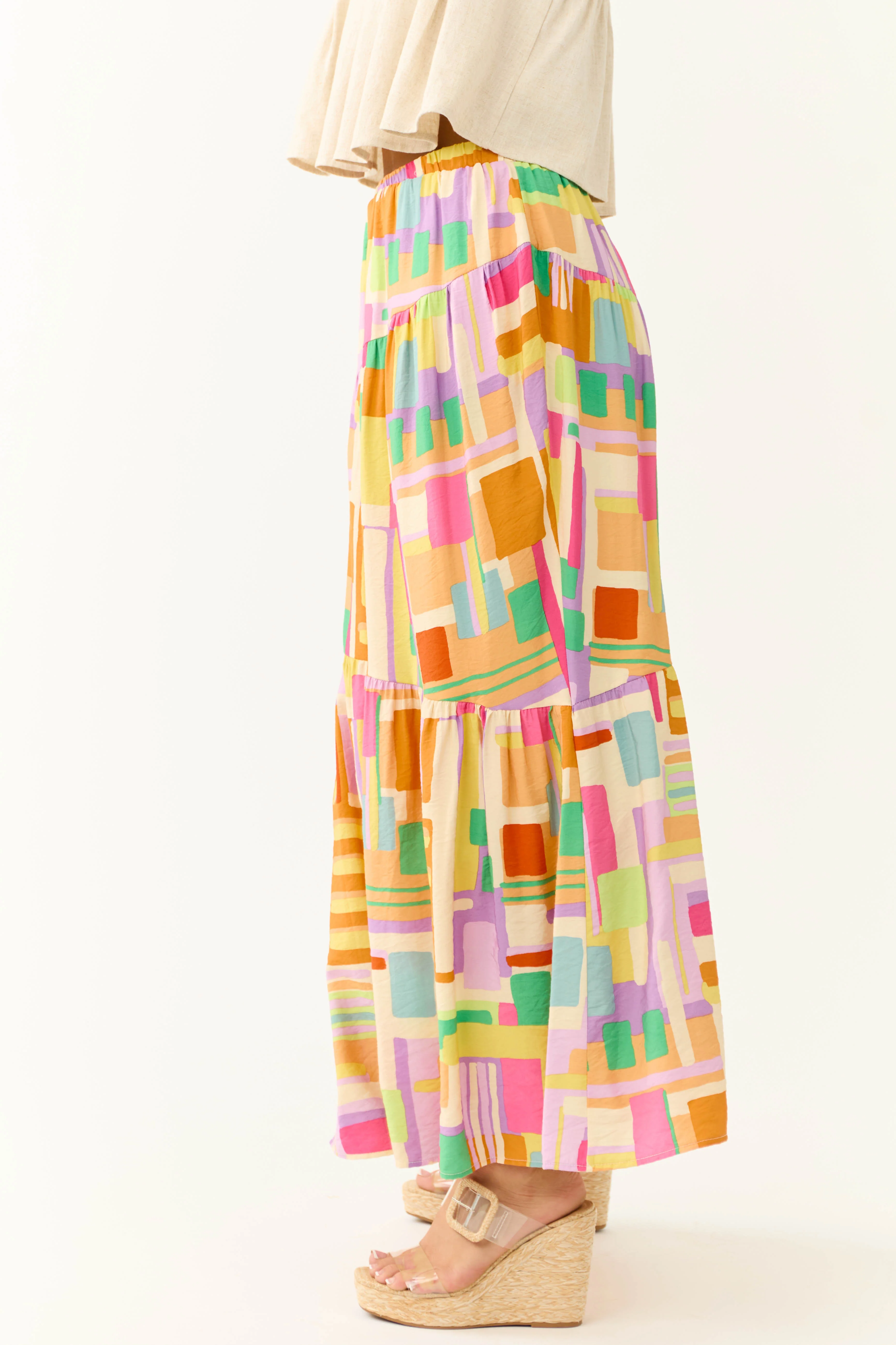 Cream Multicolor Geo Print Maxi Skirt