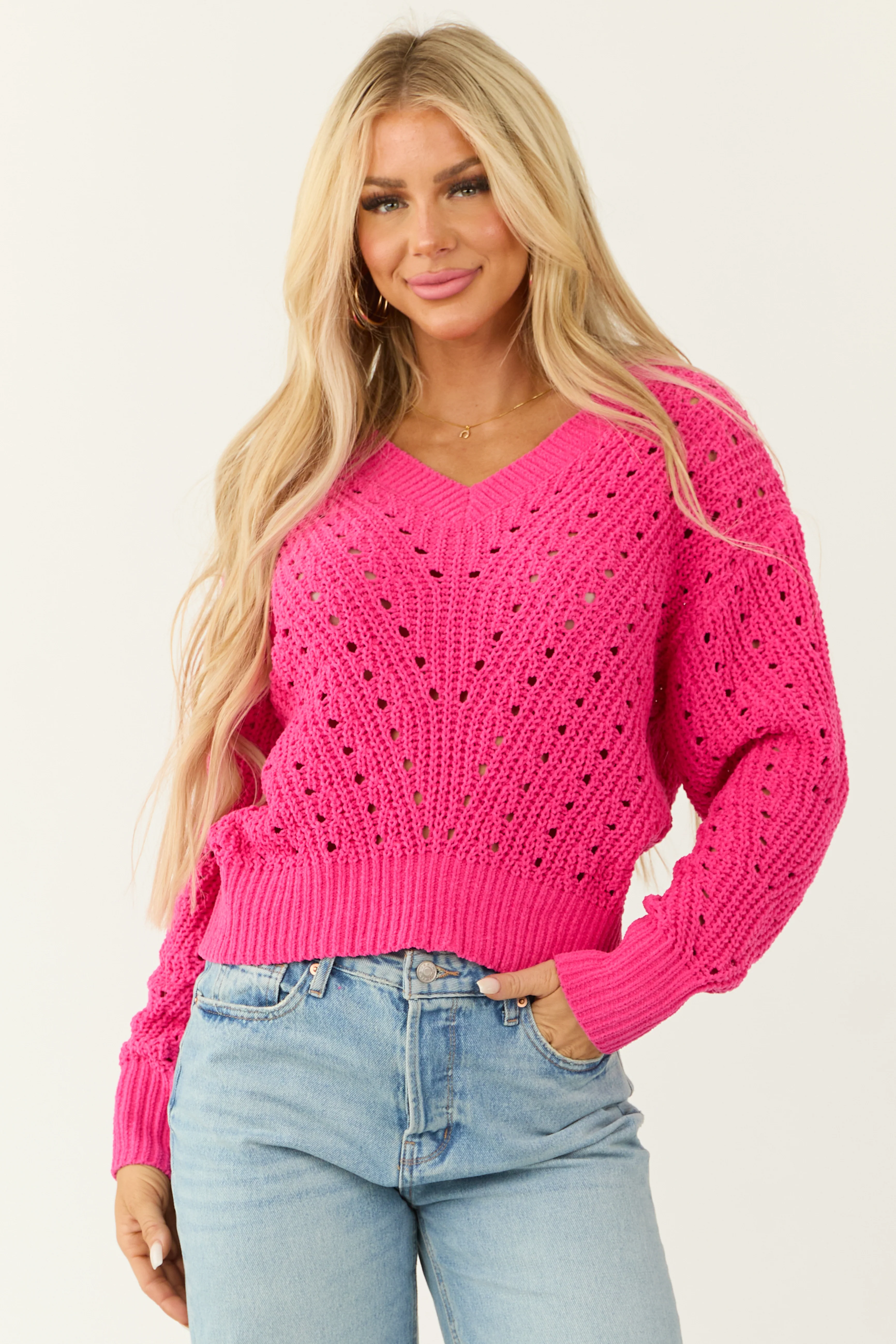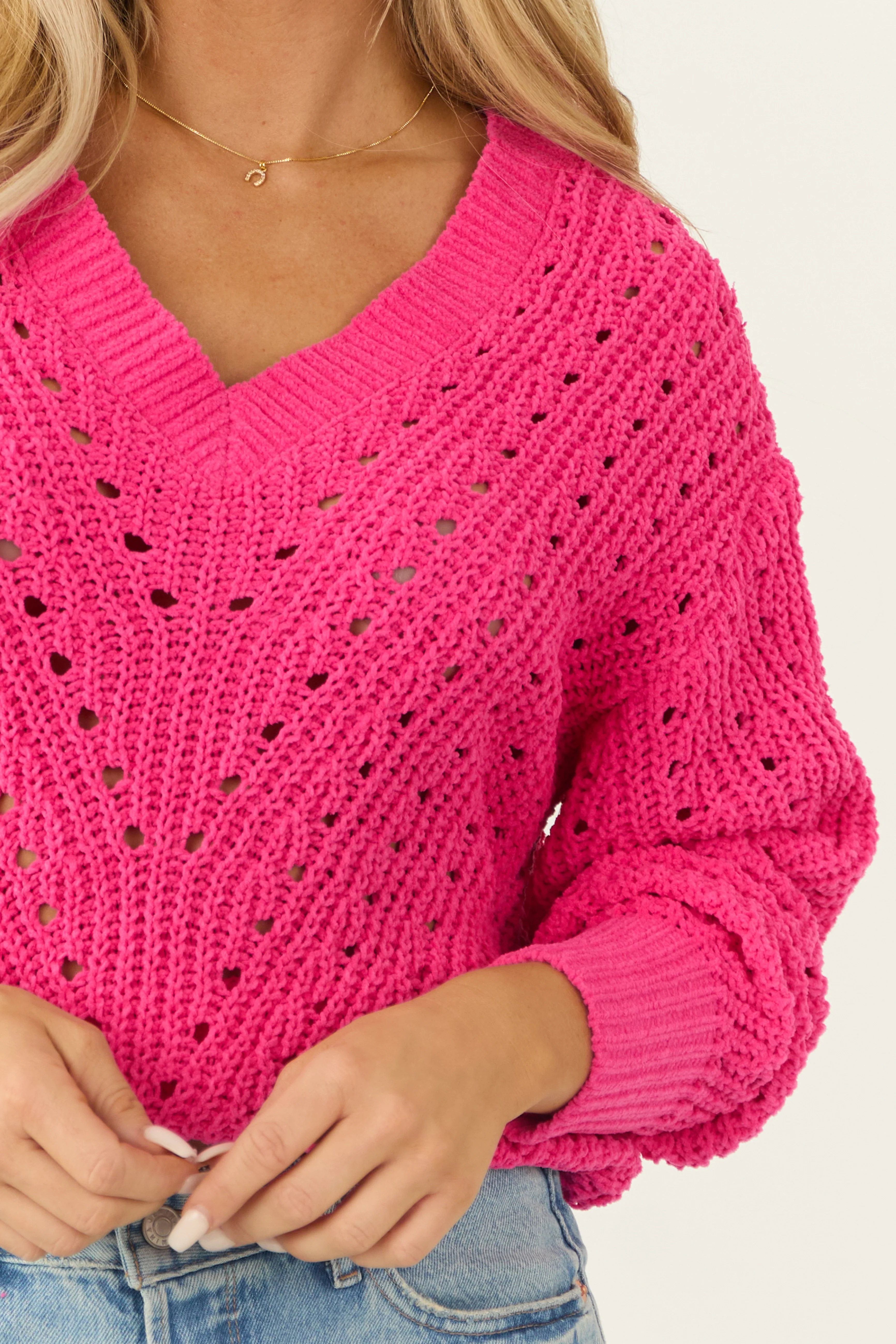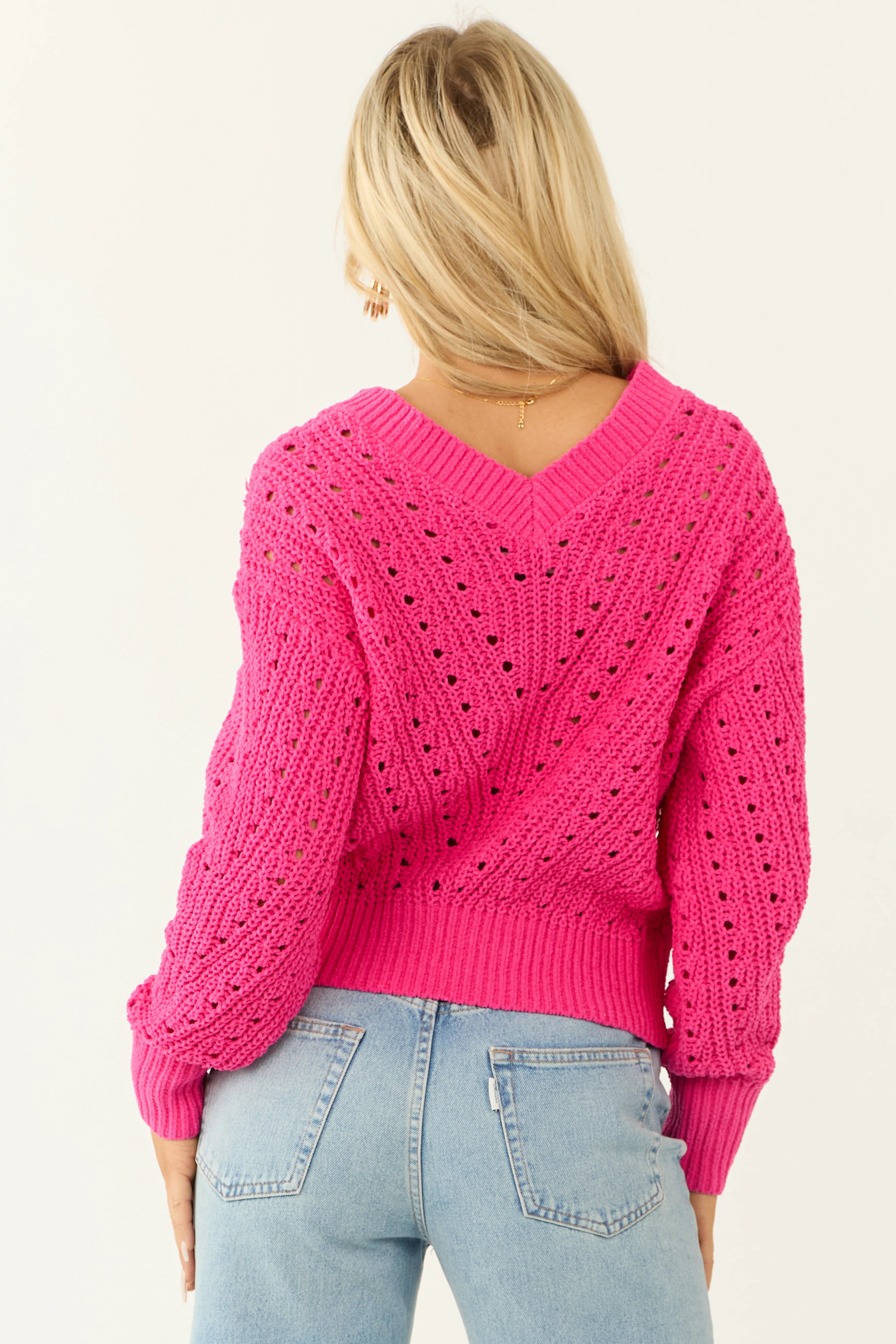 Hot Pink Pointelle Cut Out Chenille Sweater