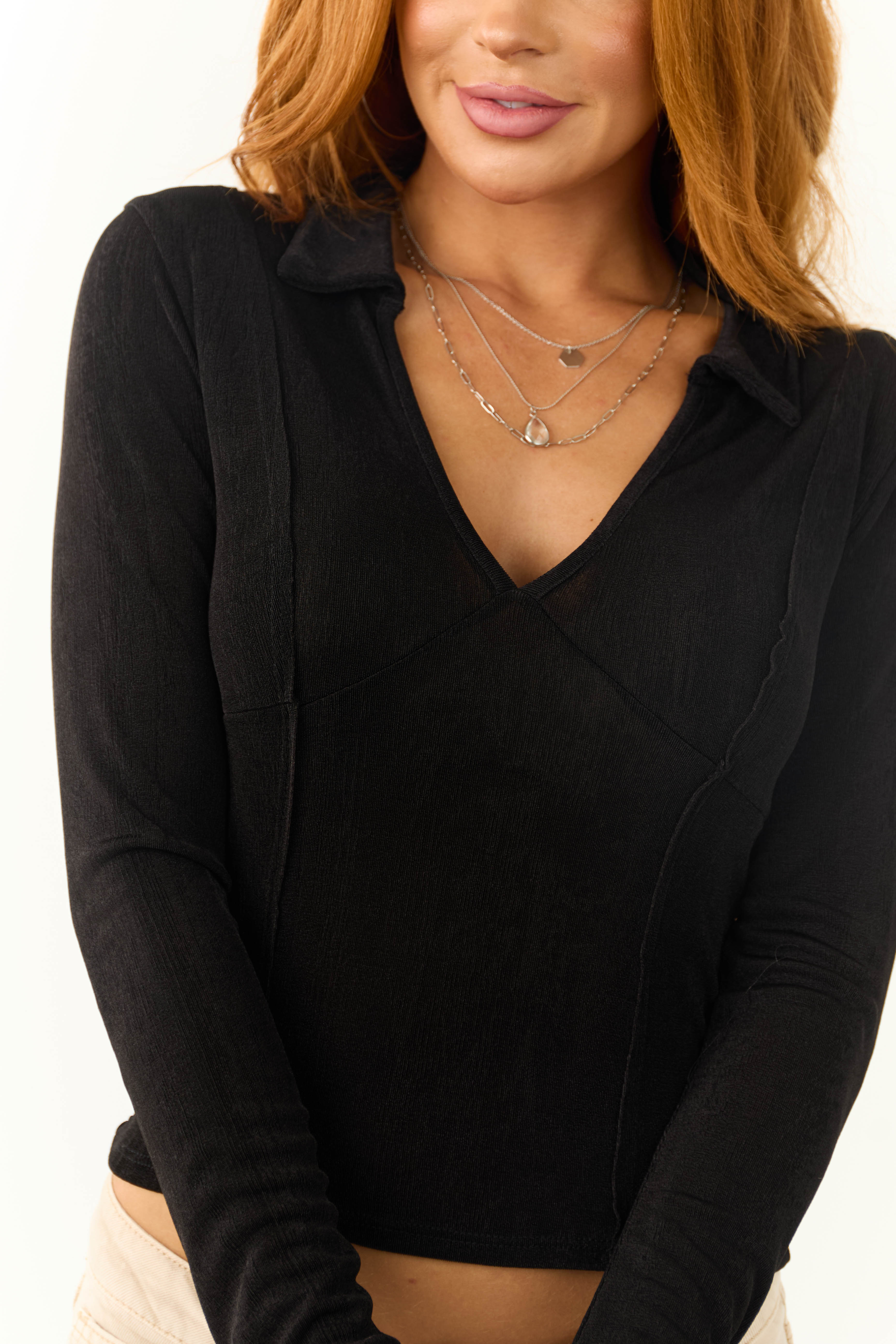 Cognac Mock Keyhole Neck Illusion Sleeve Top