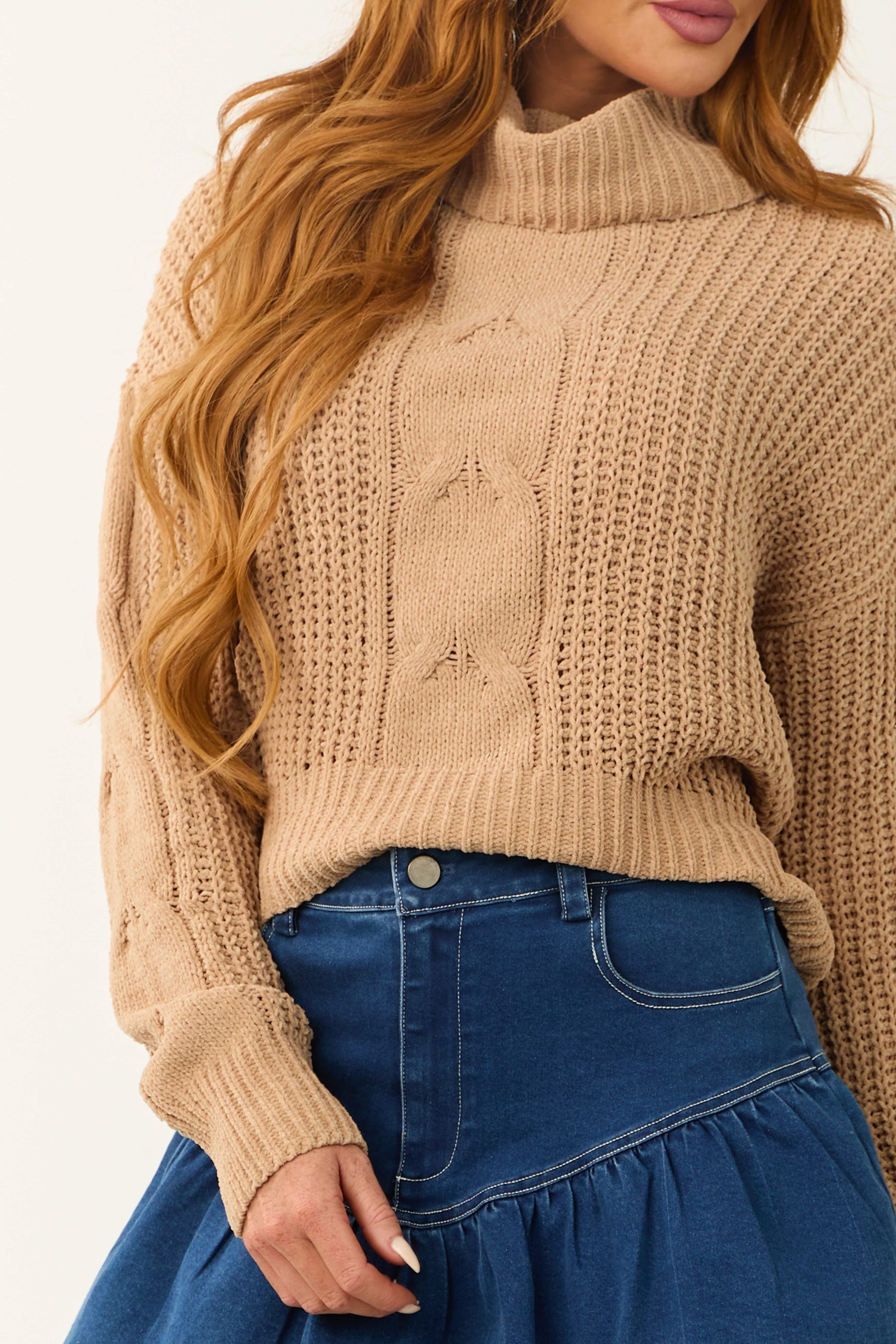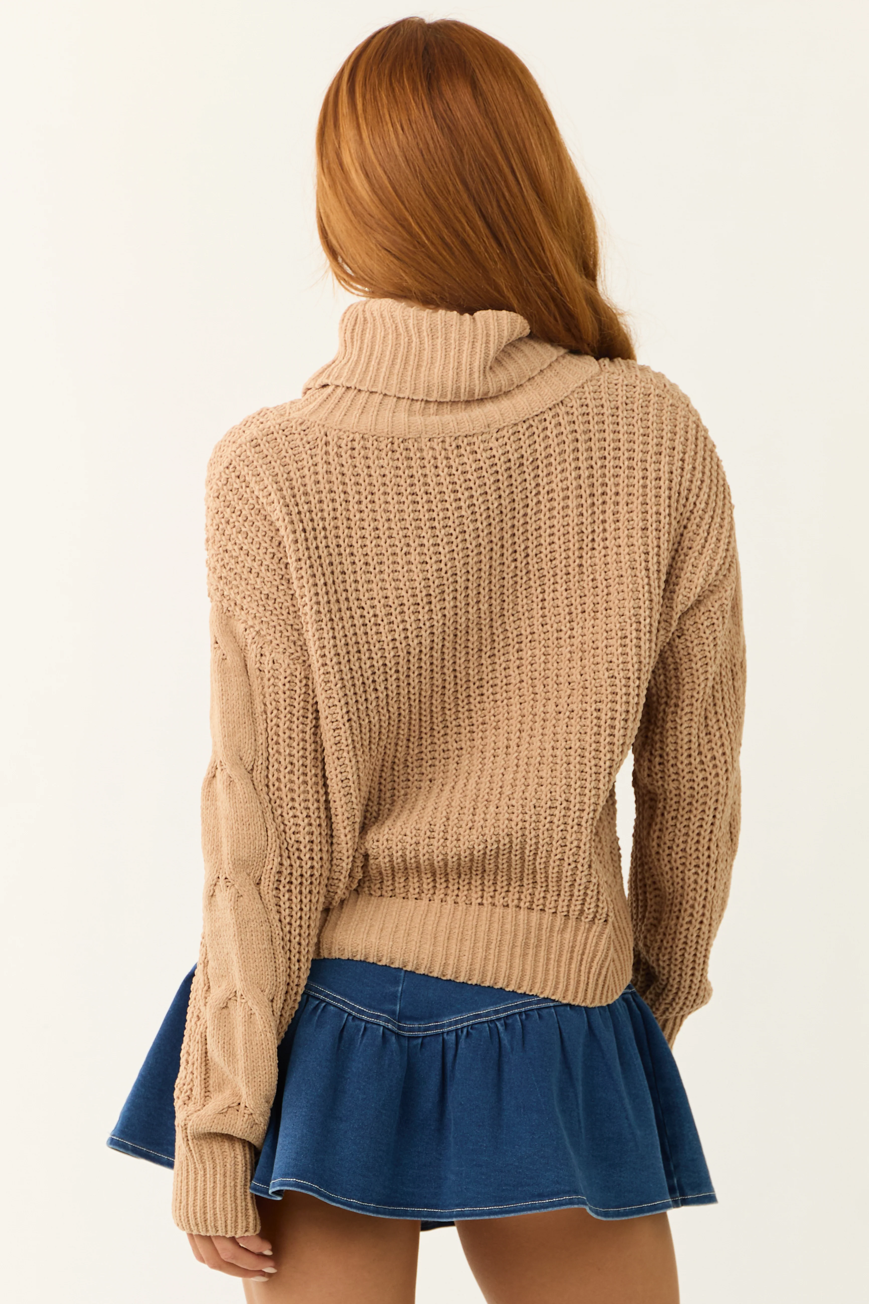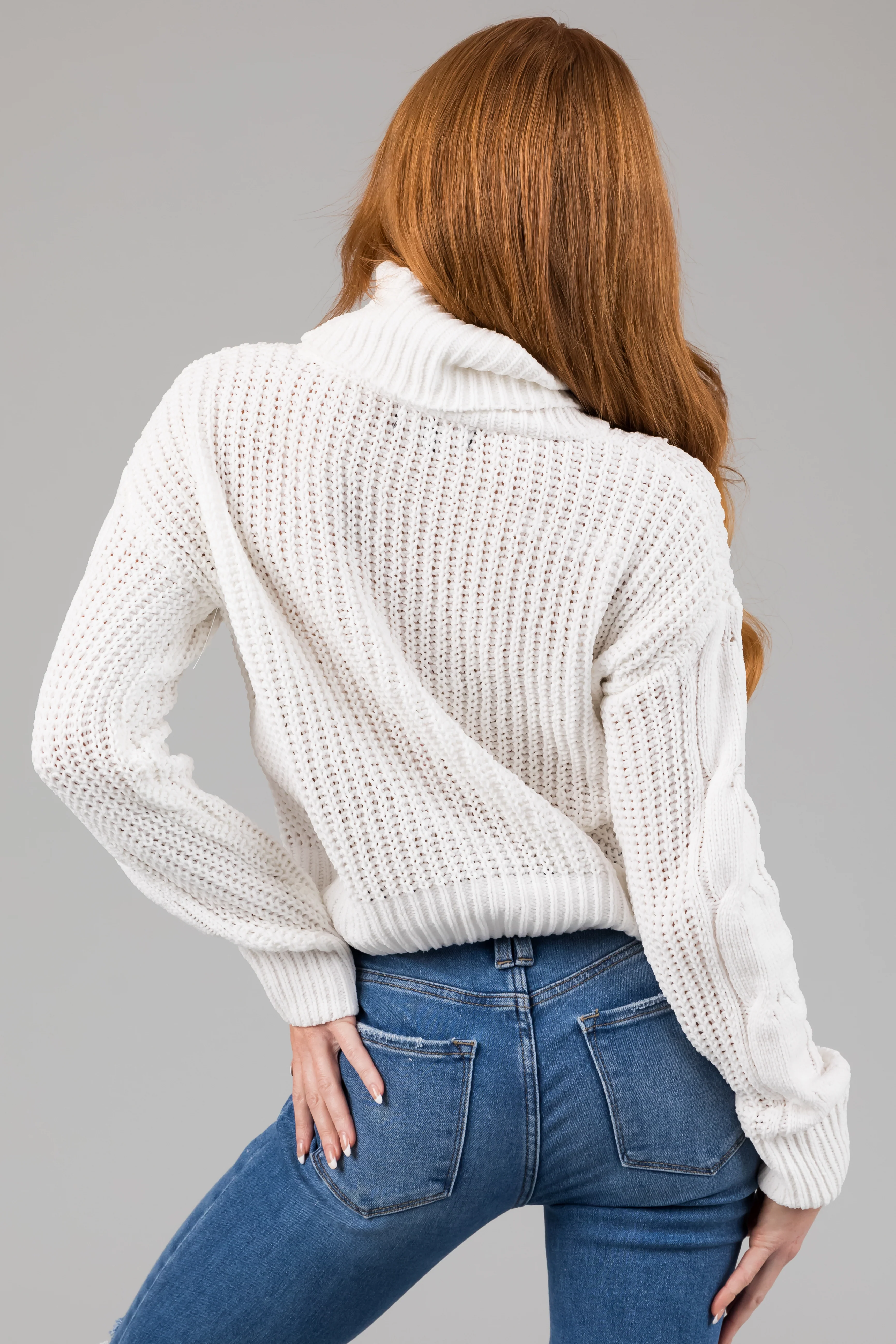 Ivory Turtleneck Cable Knit Chenille Sweater