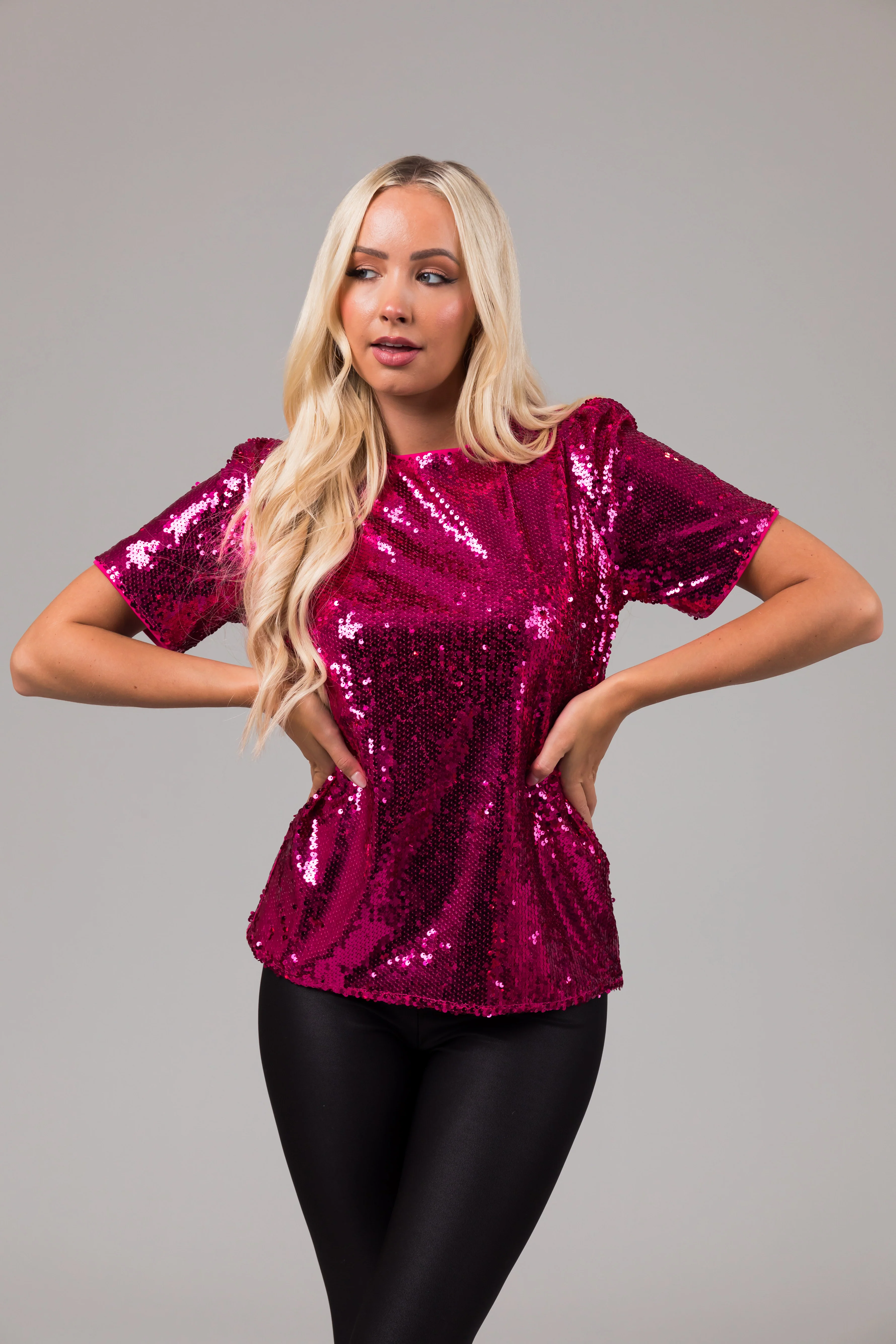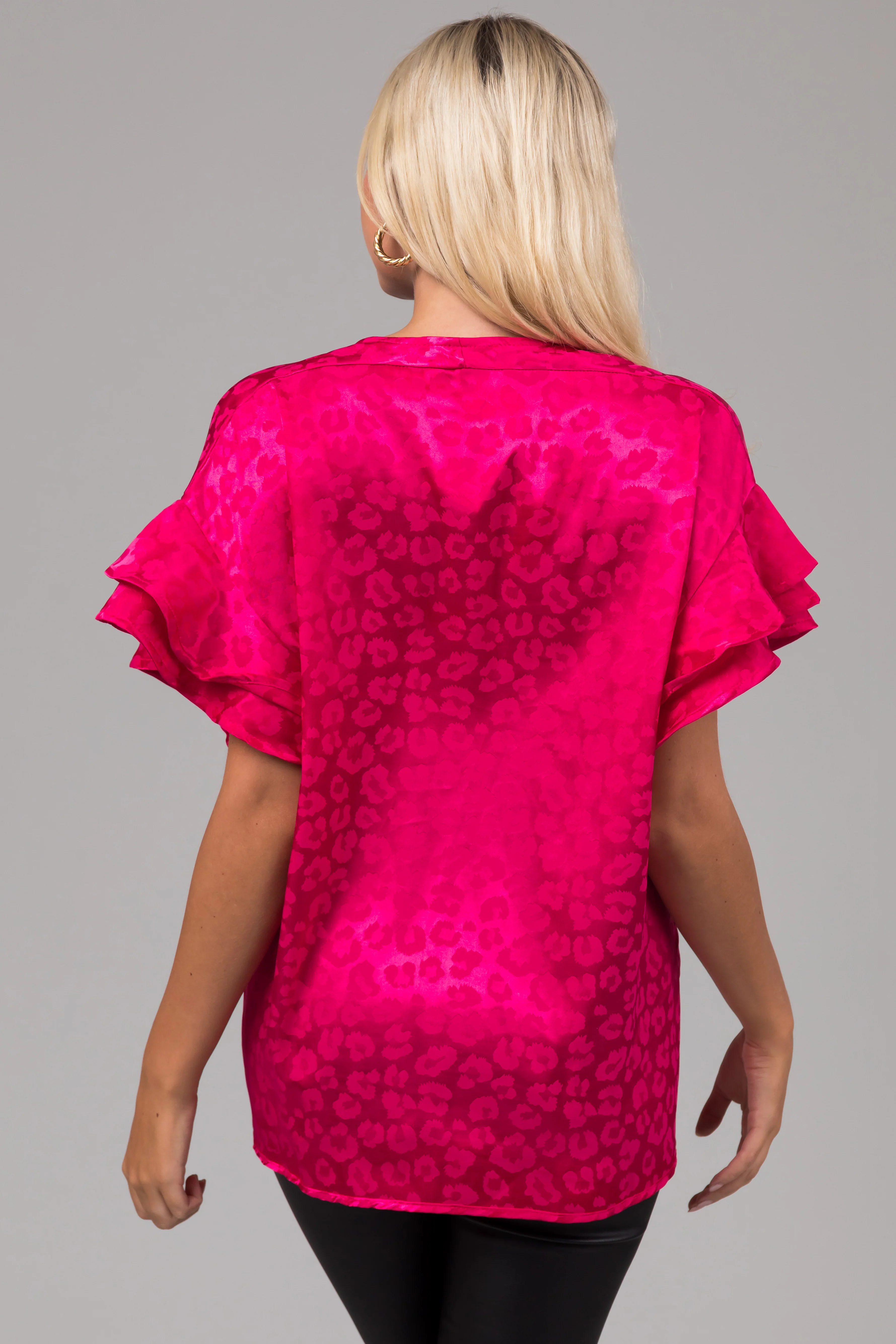 Hot Pink Animal Print Short Ruffle Sleeve Top