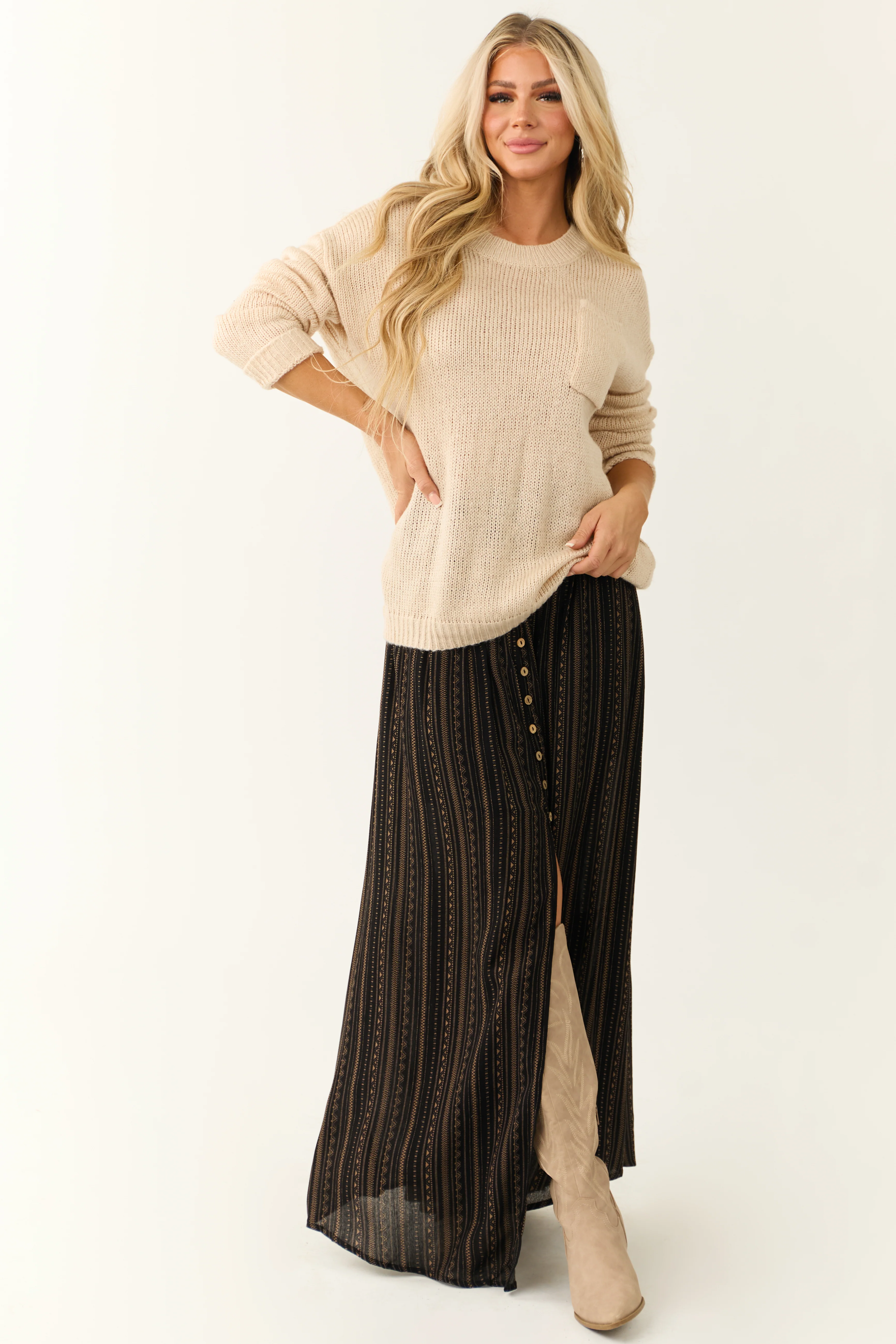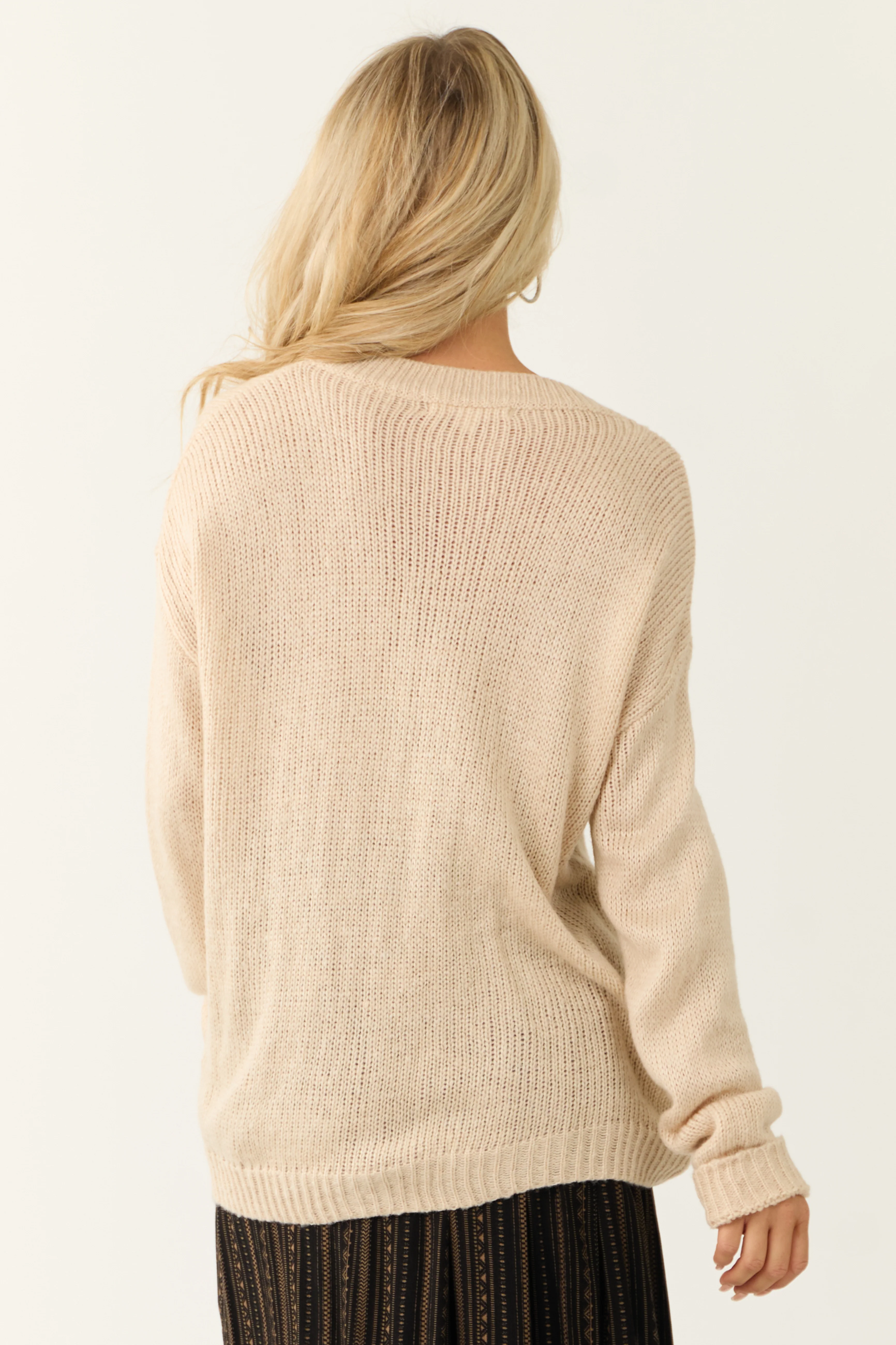 Oatmeal Chest Pocket Cuffed Sleeve Sweater