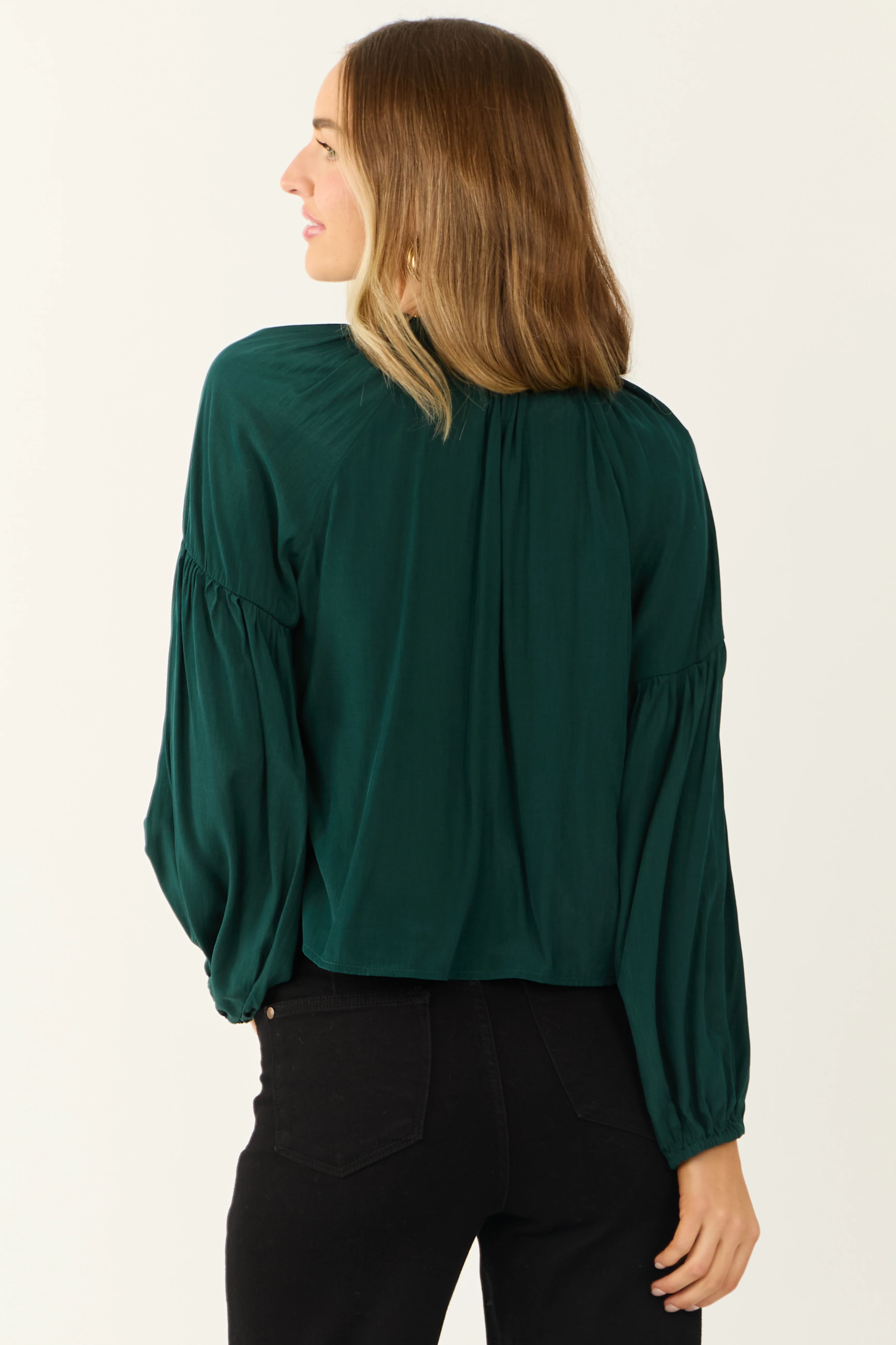 Forest Green Button Up Smocked Yoke Long Sleeve Top