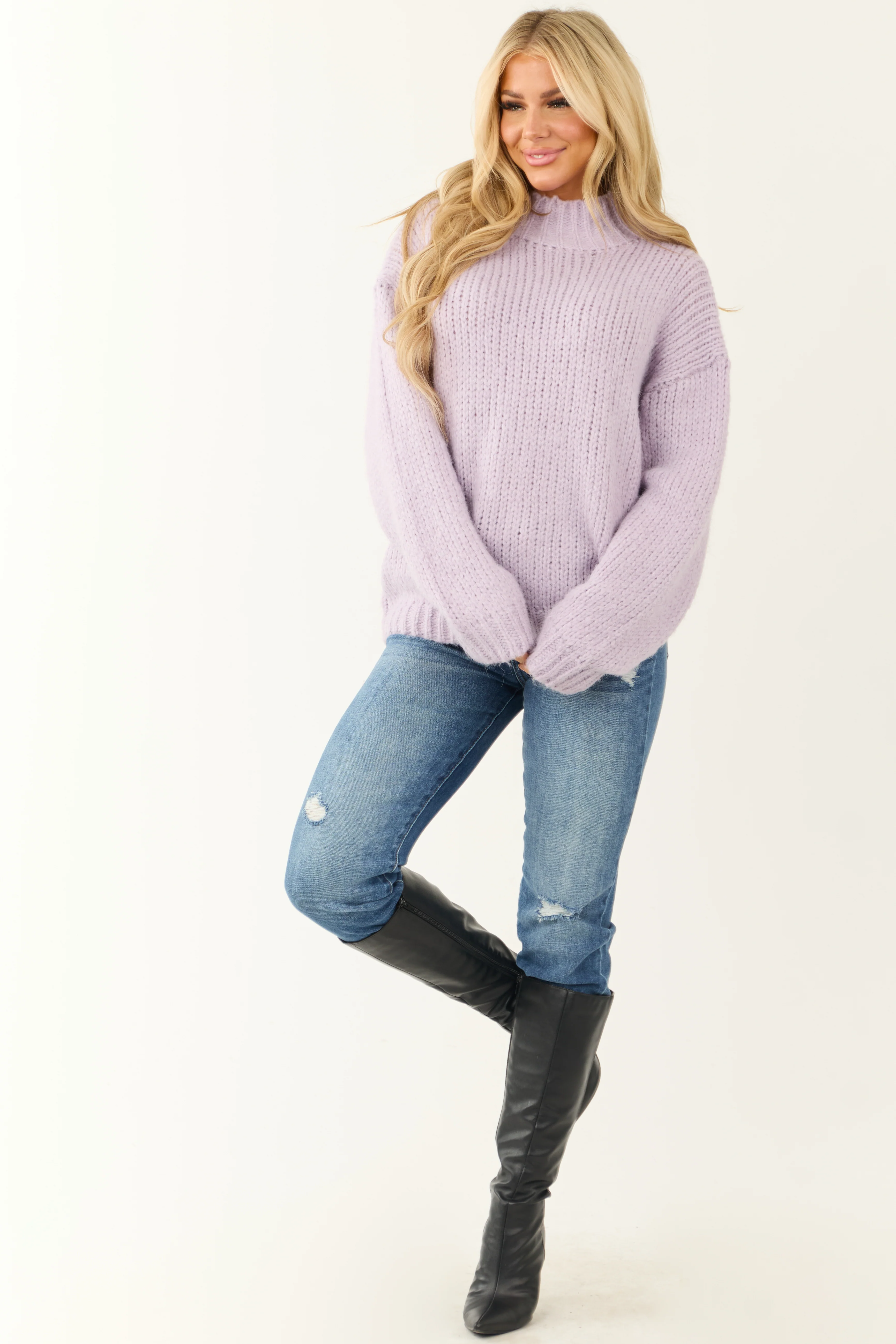 Periwinkle High Neck Chunky Knit Oversized Sweater