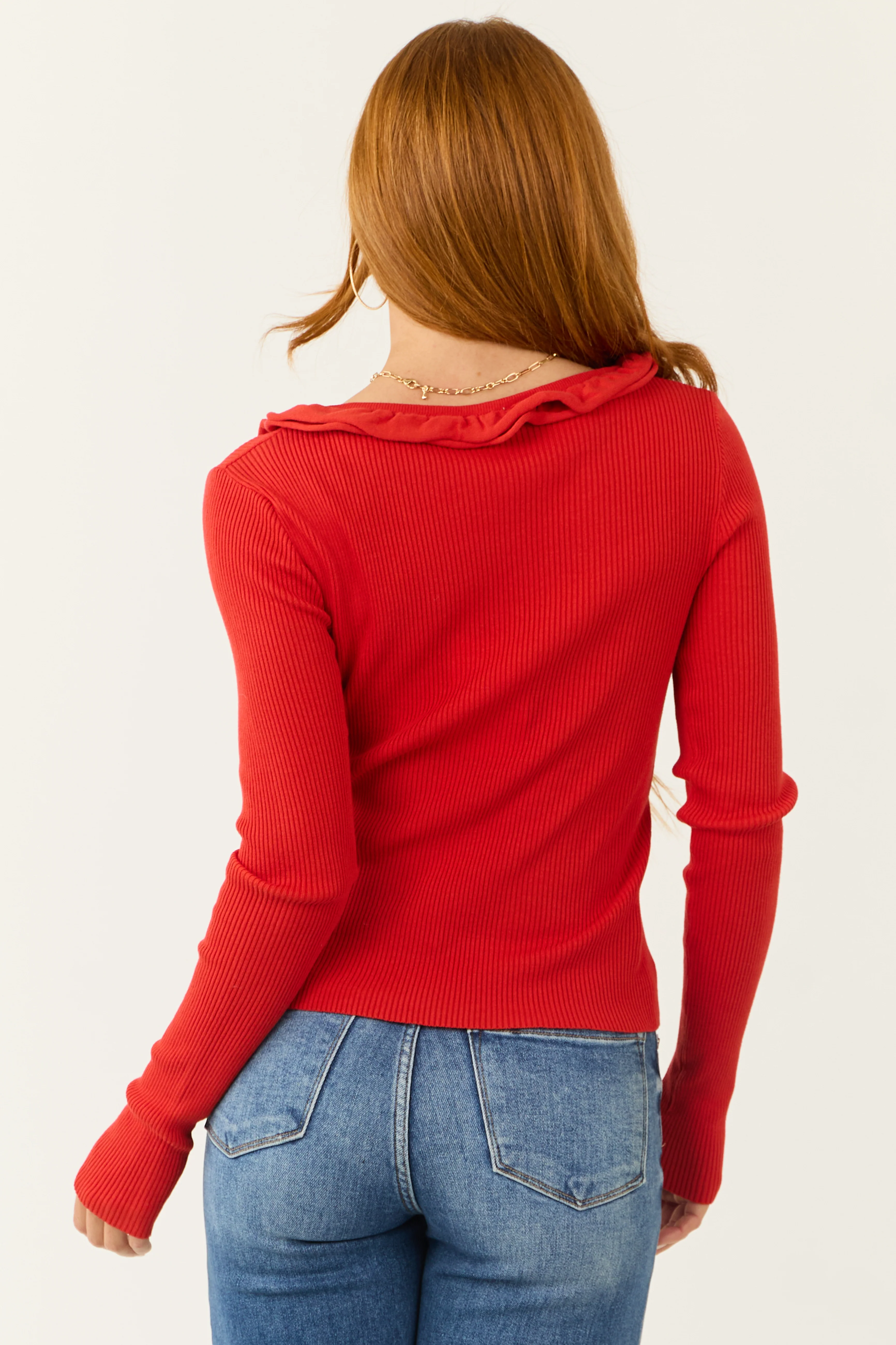 Bright Scarlet Long Sleeve Snowflake Sweater
