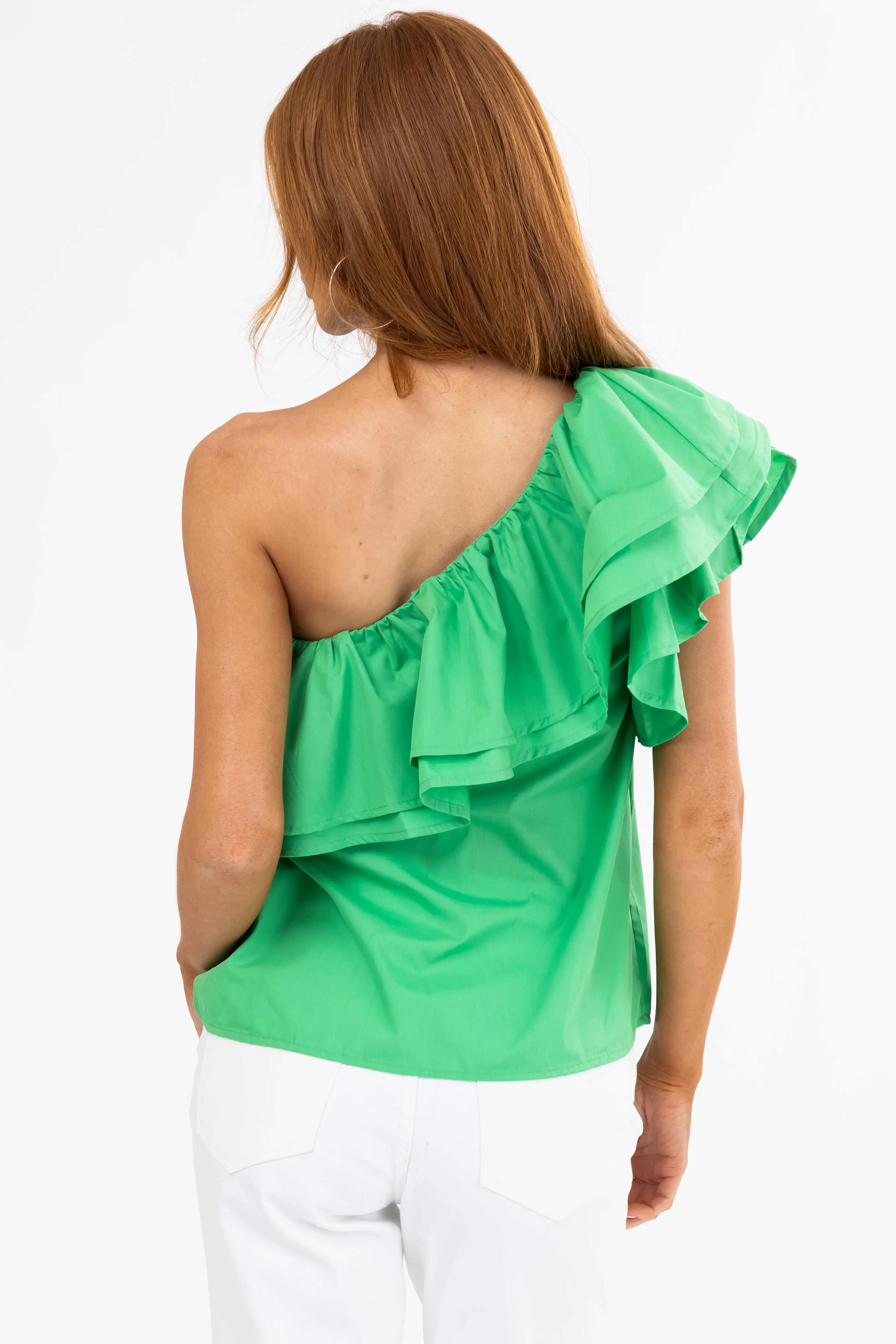 She+Sky Kelly Green Ruffle One Shoulder Top