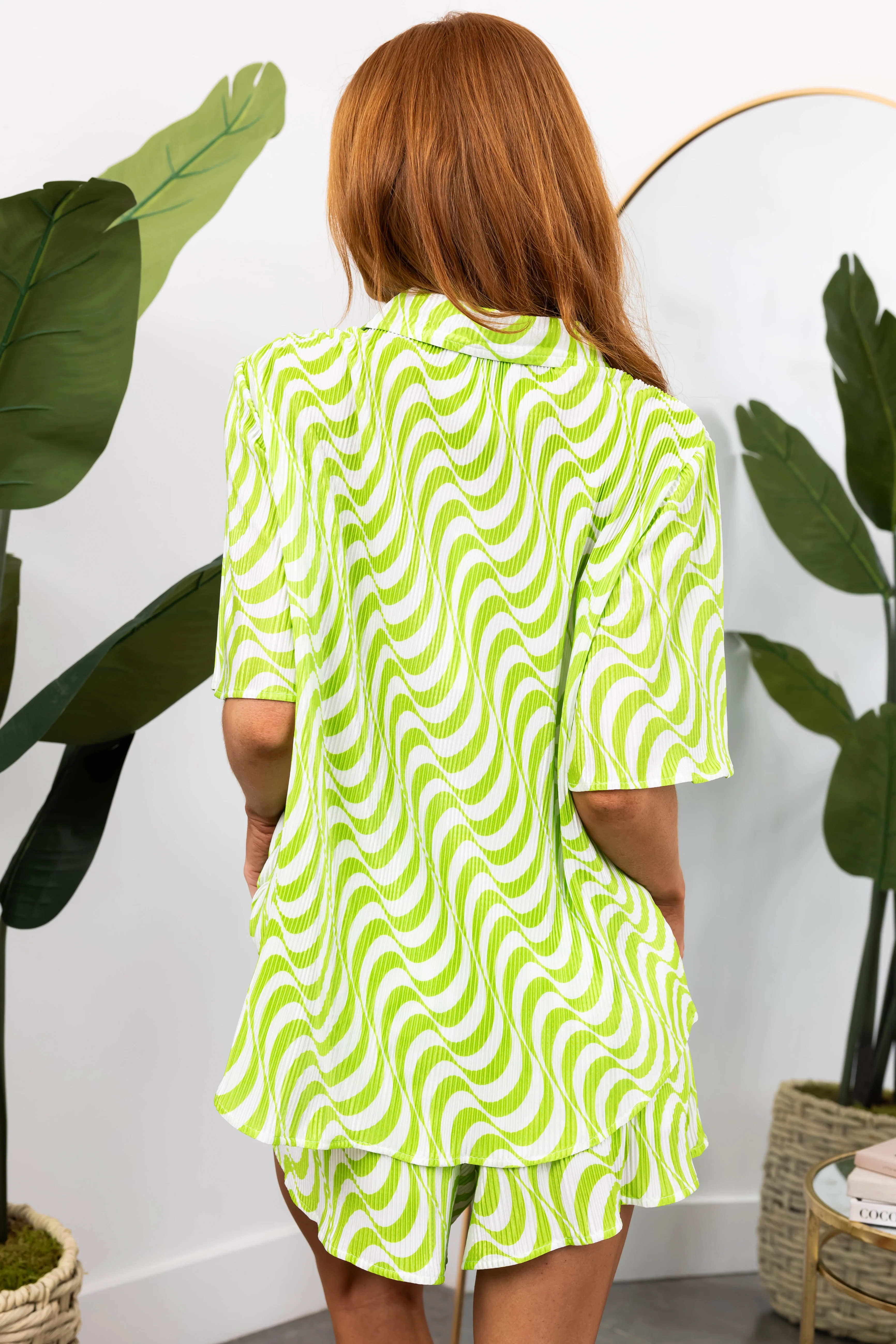 She+Sky Kiwi and Ivory Wavy Plisse Top