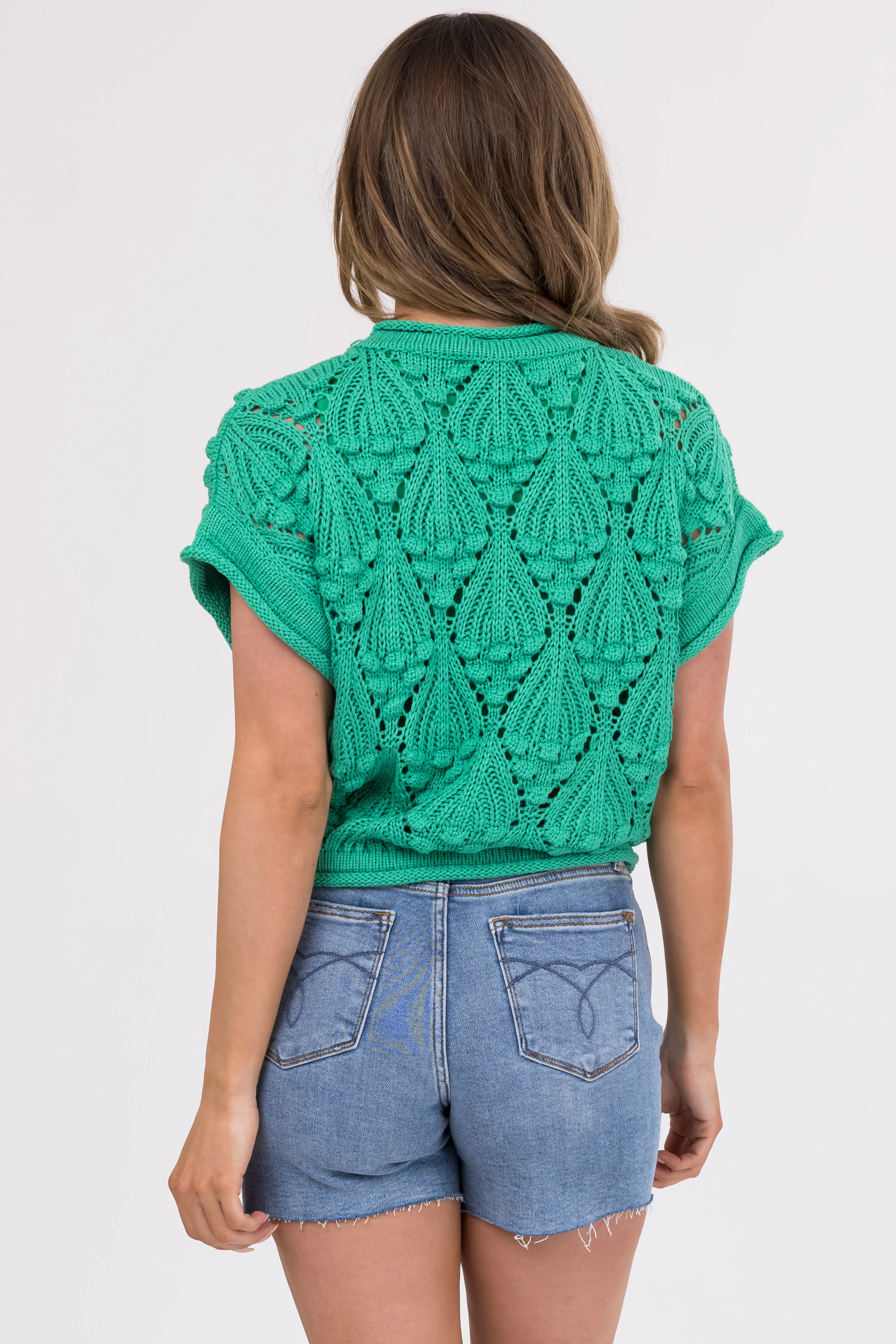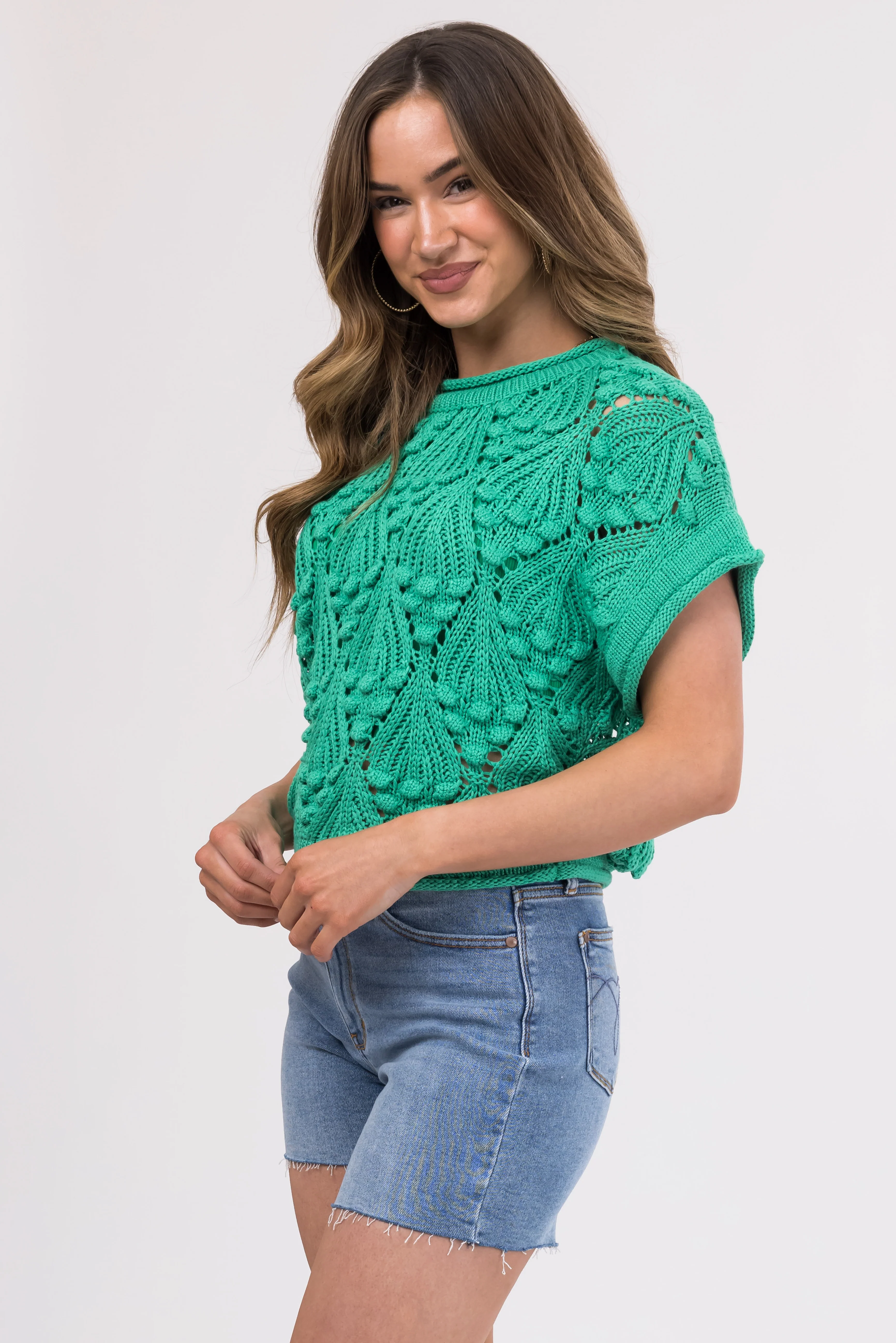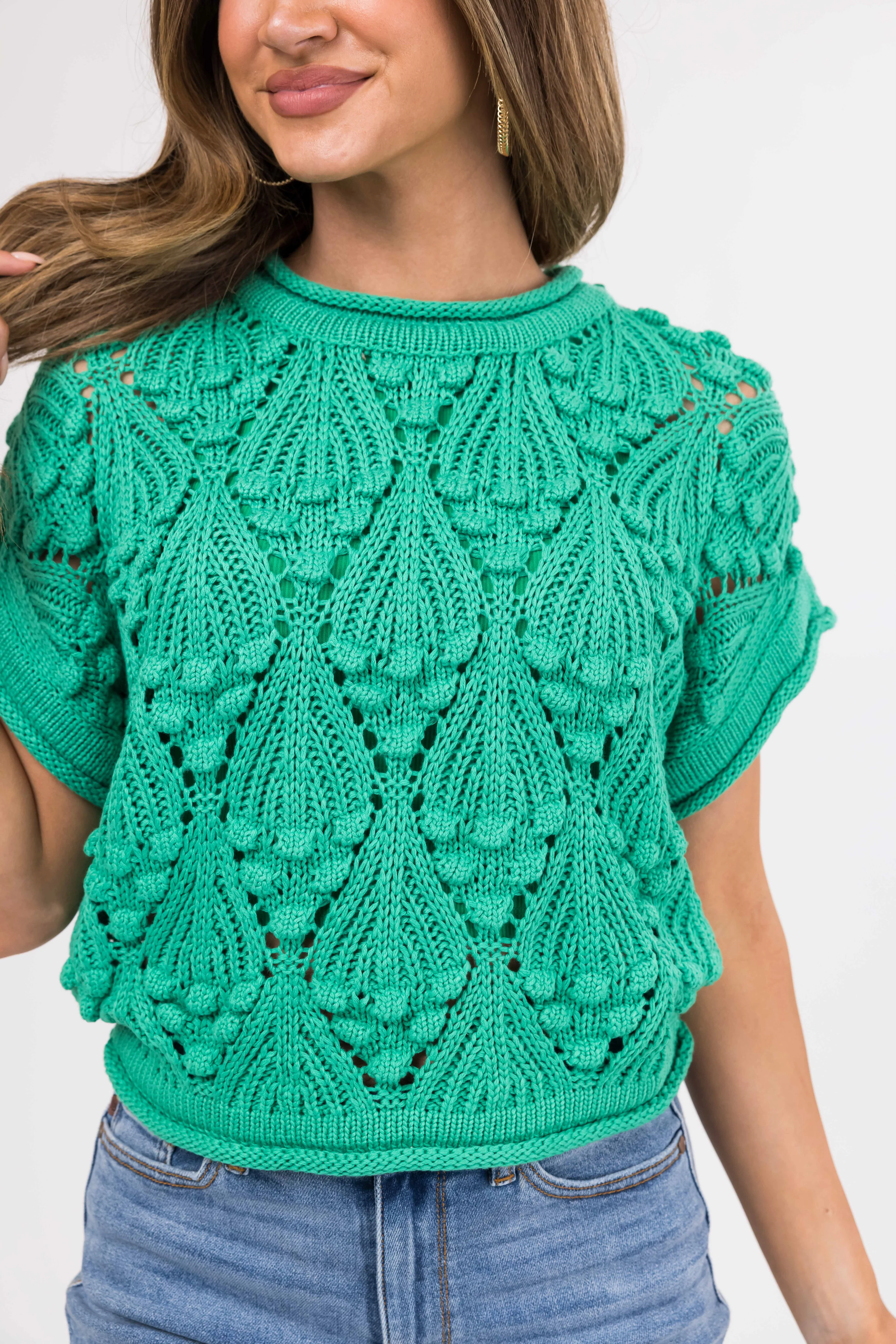 She+Sky Jade Short Sleeve Cut Out Knit Sweater