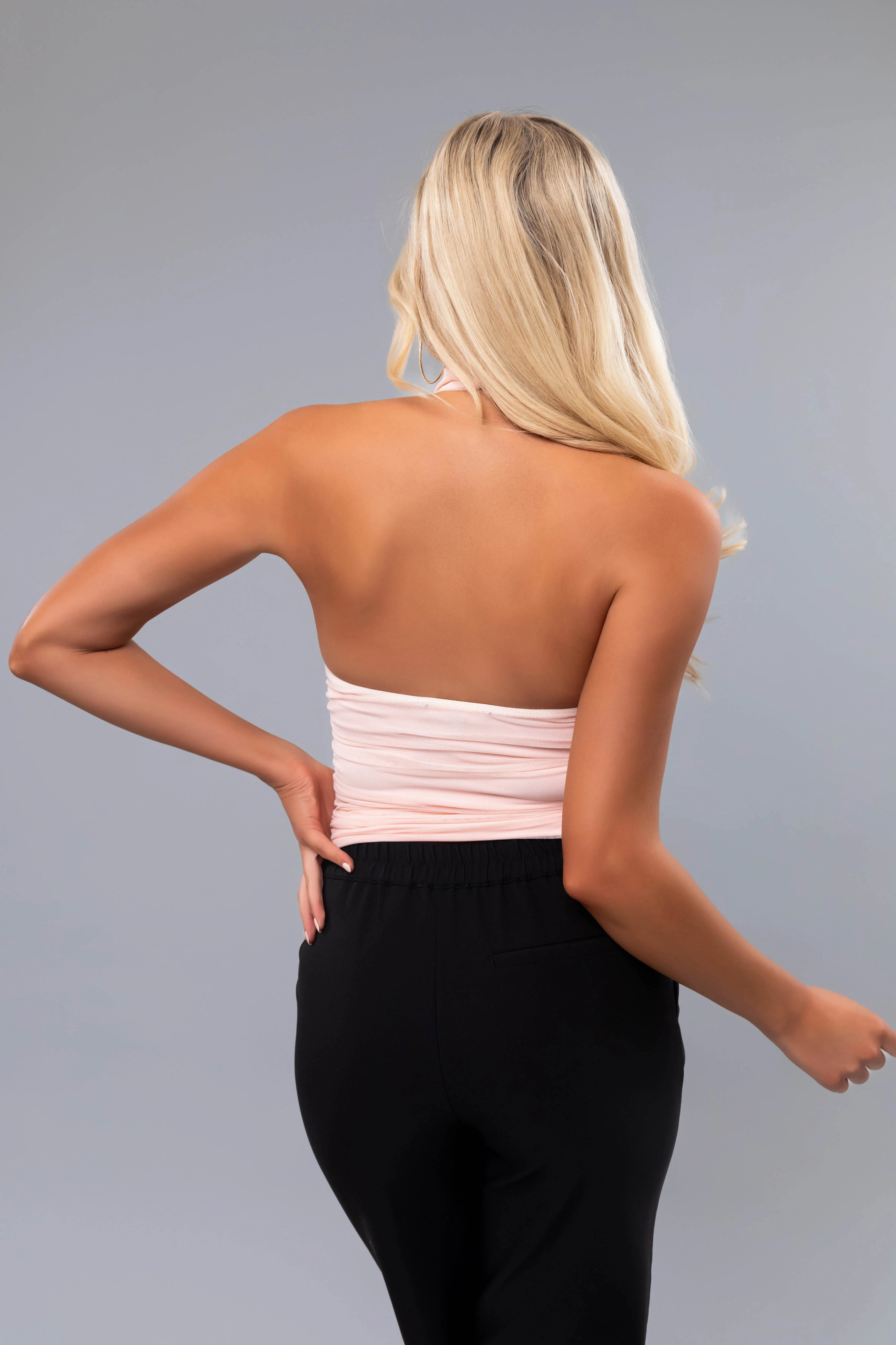 Blush Halter Neck Ruched Side Top