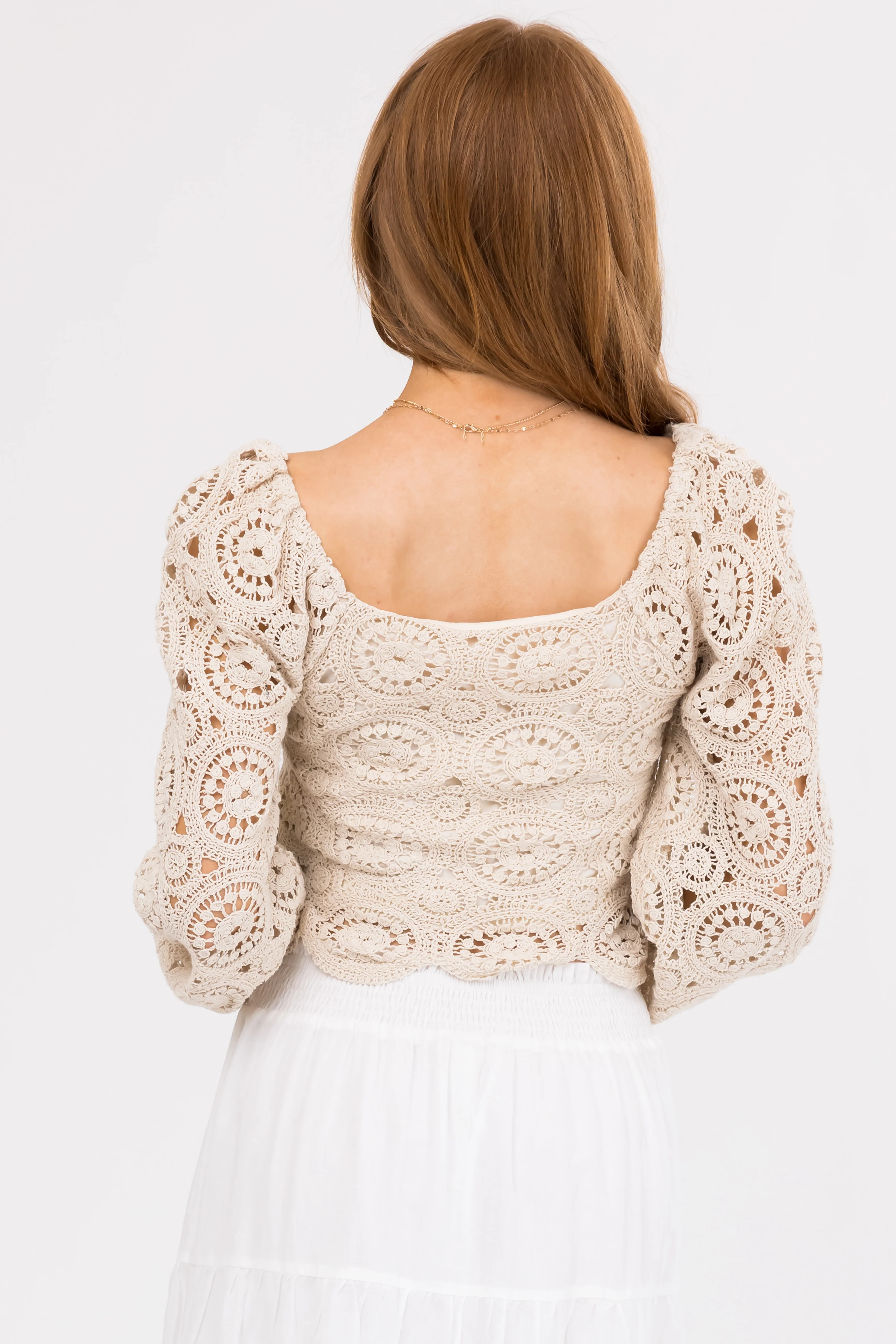 Khaki Sweetheart Neck Long Sleeve Crop Top