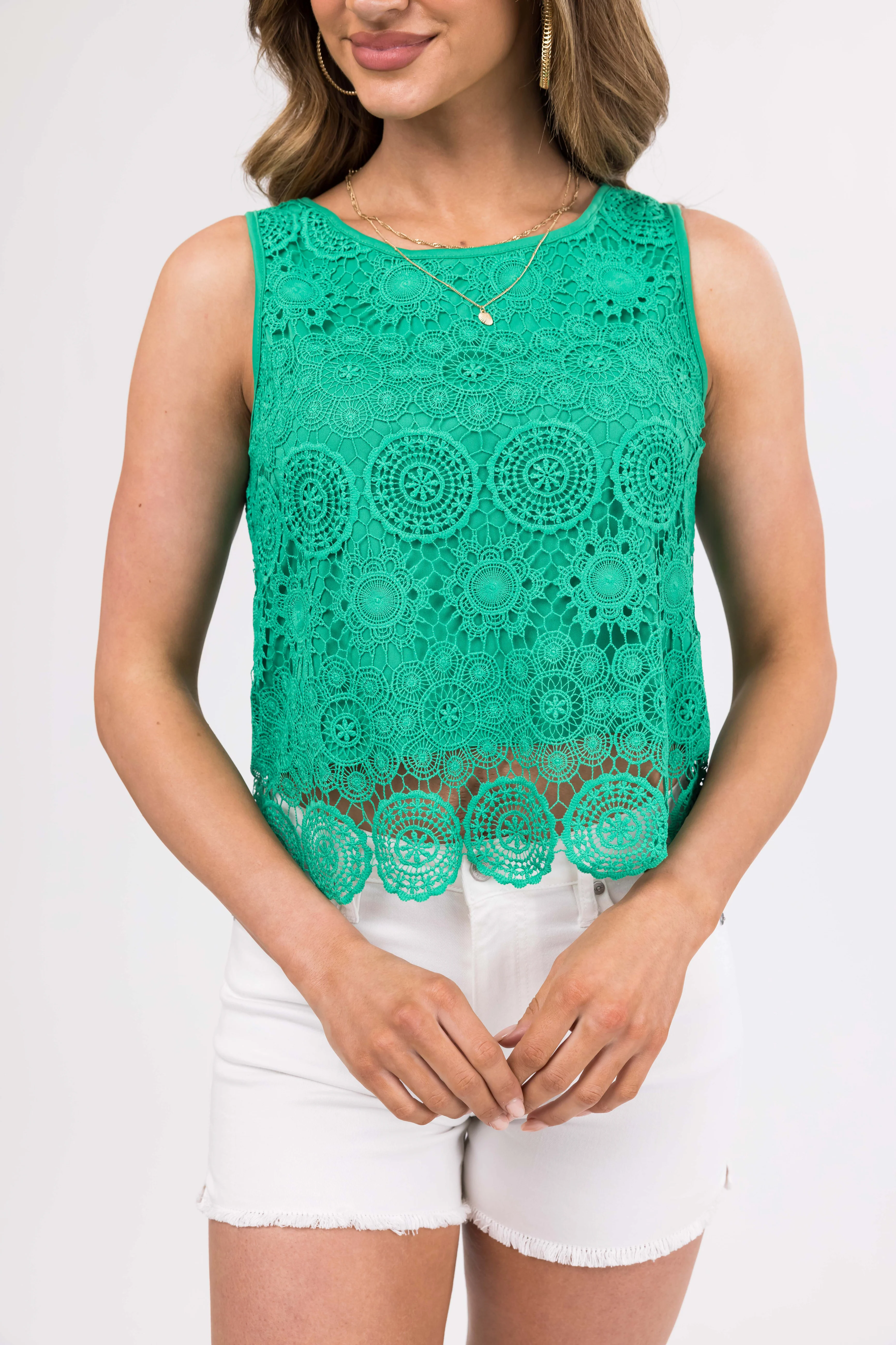 She+Sky Kelly Green Crochet Lace Tank Top