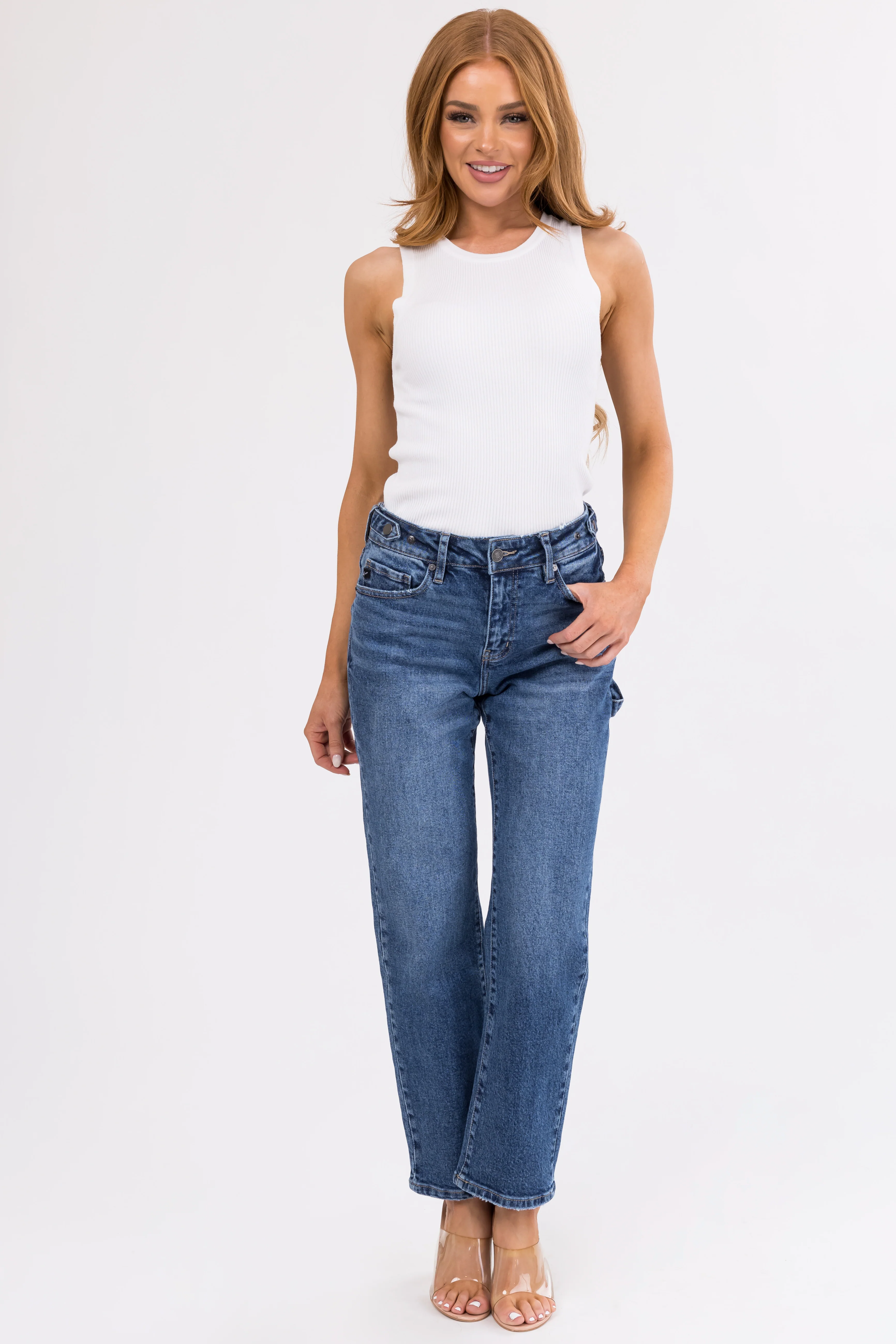 White Ribbed Knit Fitted Tank Top