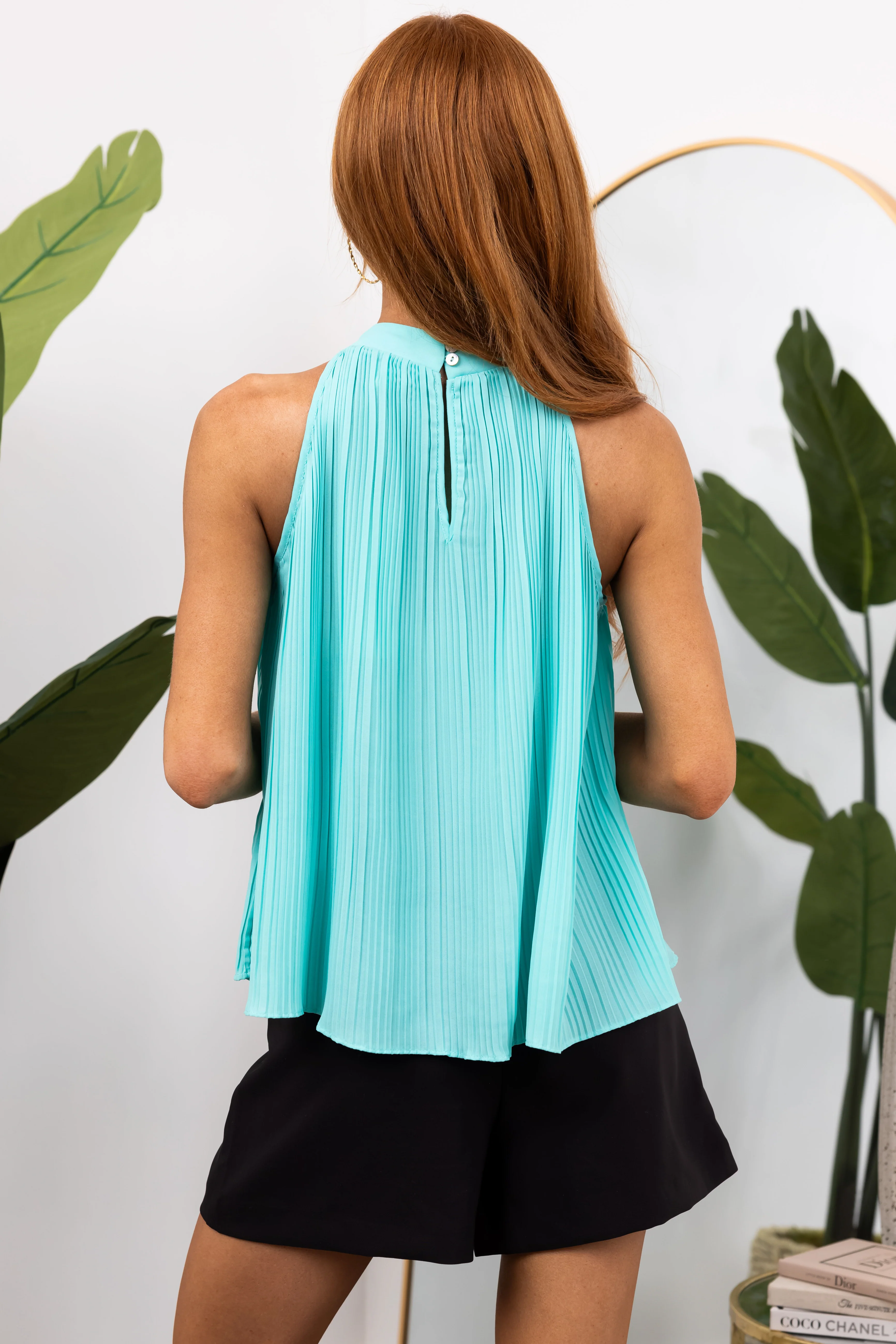 She+Sky Seafoam Pleated Halter Neck Blouse
