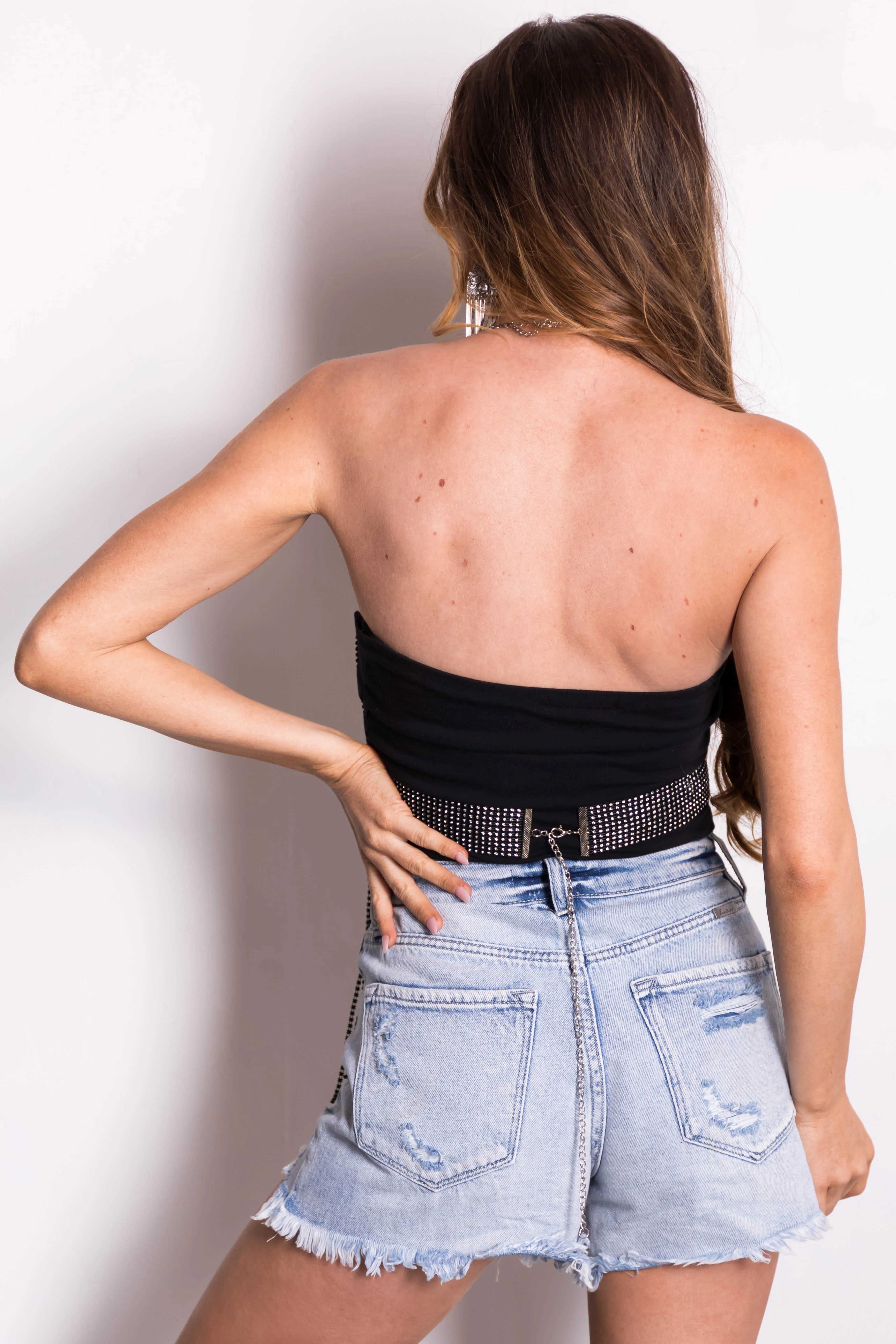 Black Rhinestone Chain Mail Fringe Top