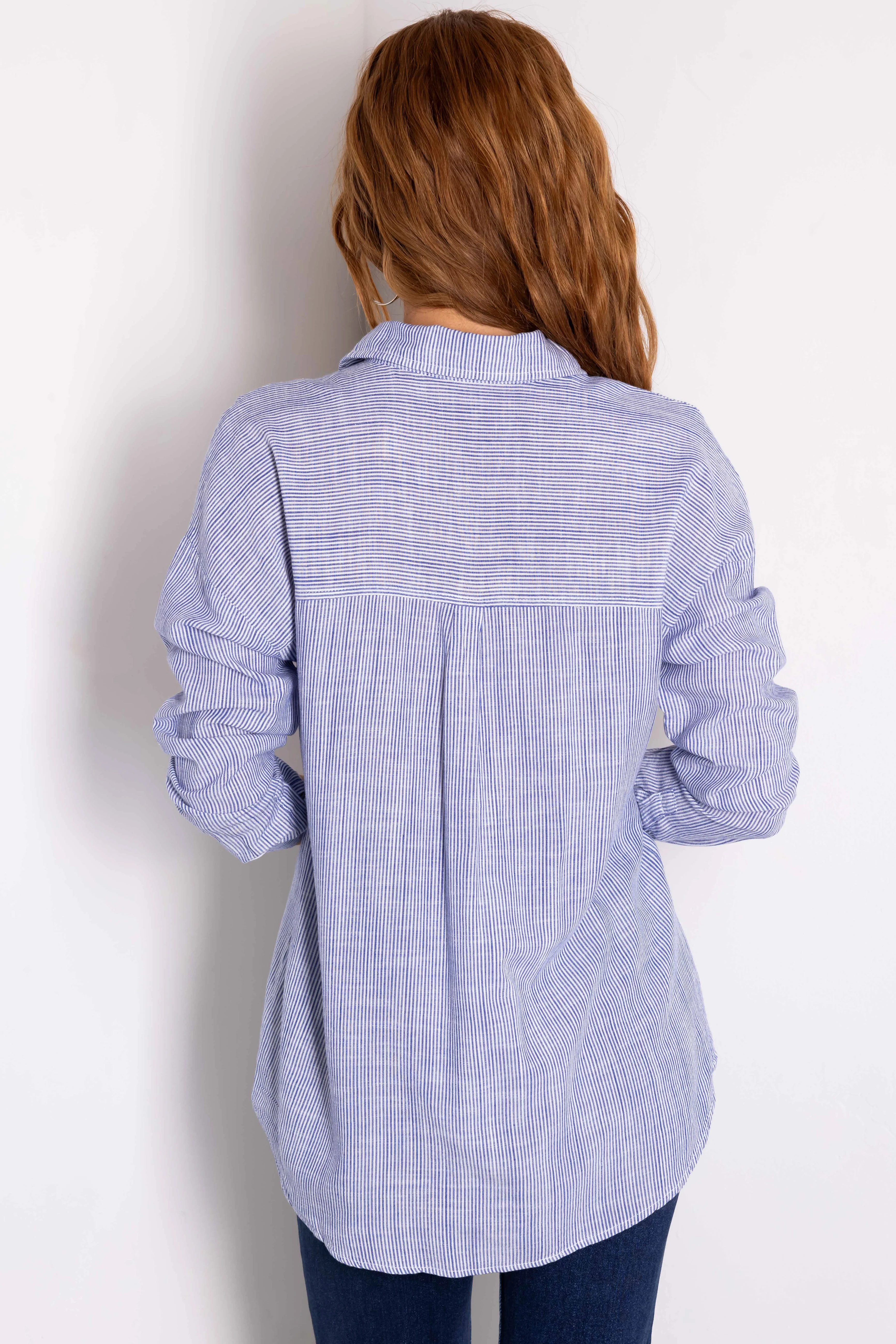 Cobalt Striped Button Down Long Sleeve Top
