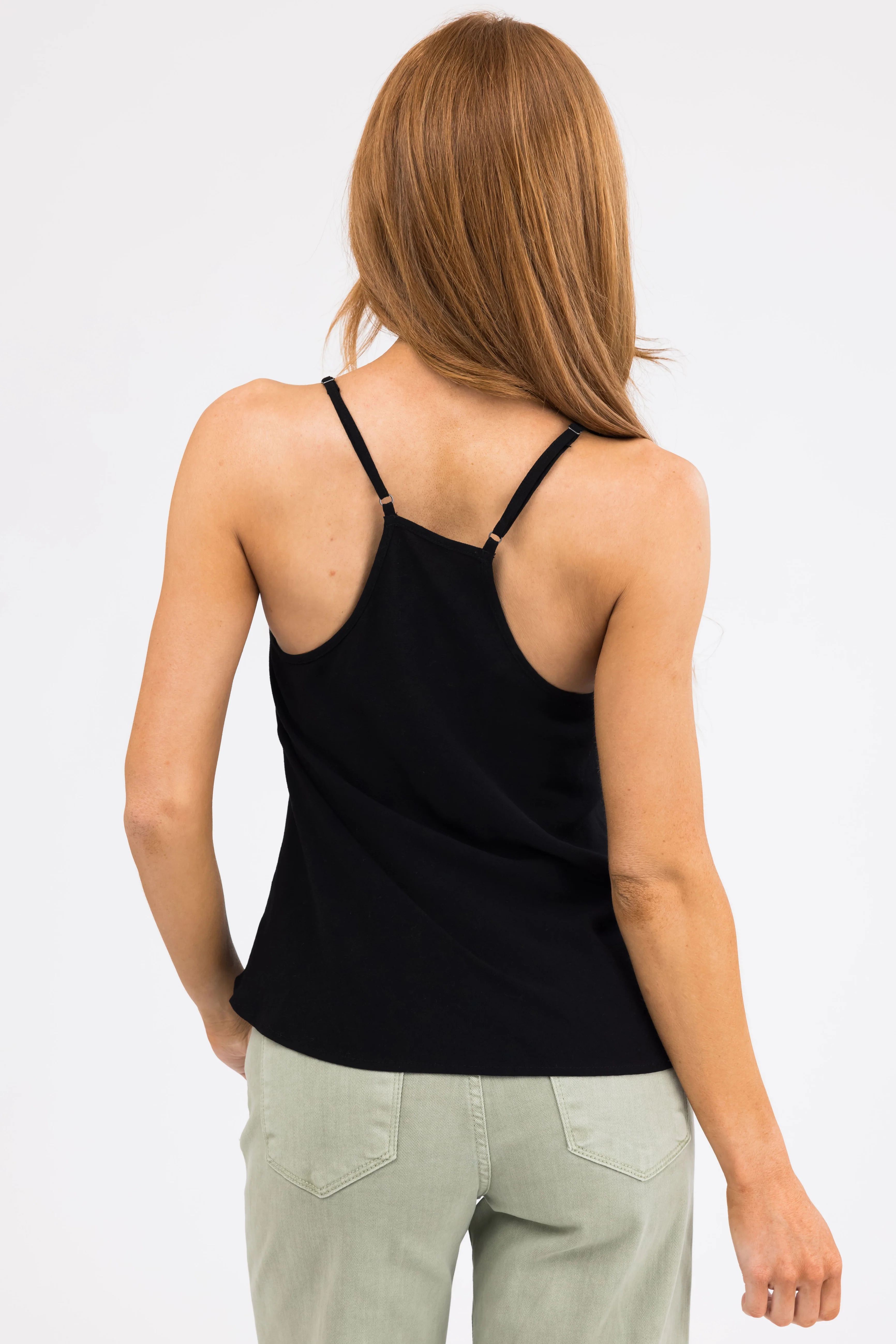 Black Racerback V Neck Linen Tank Top