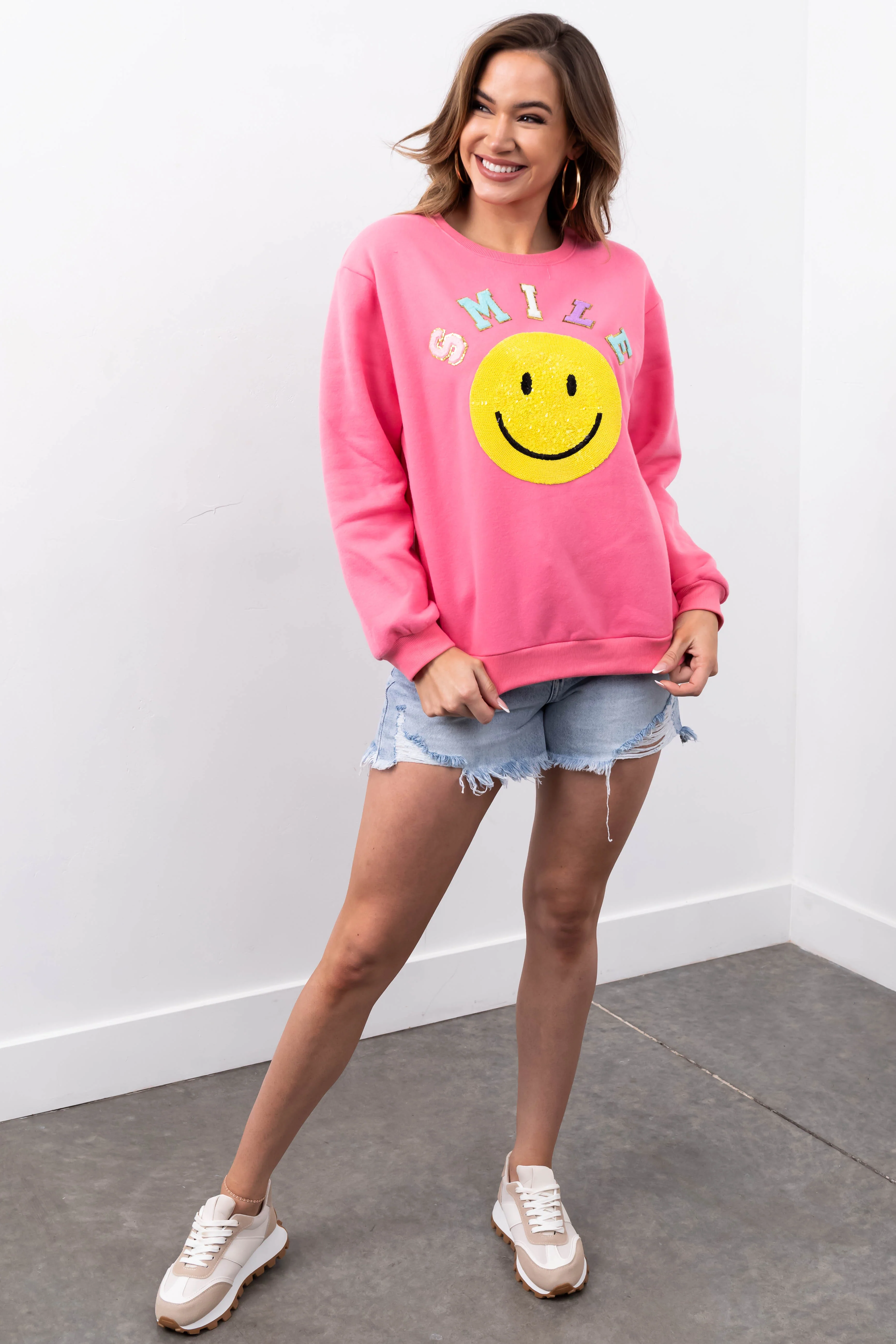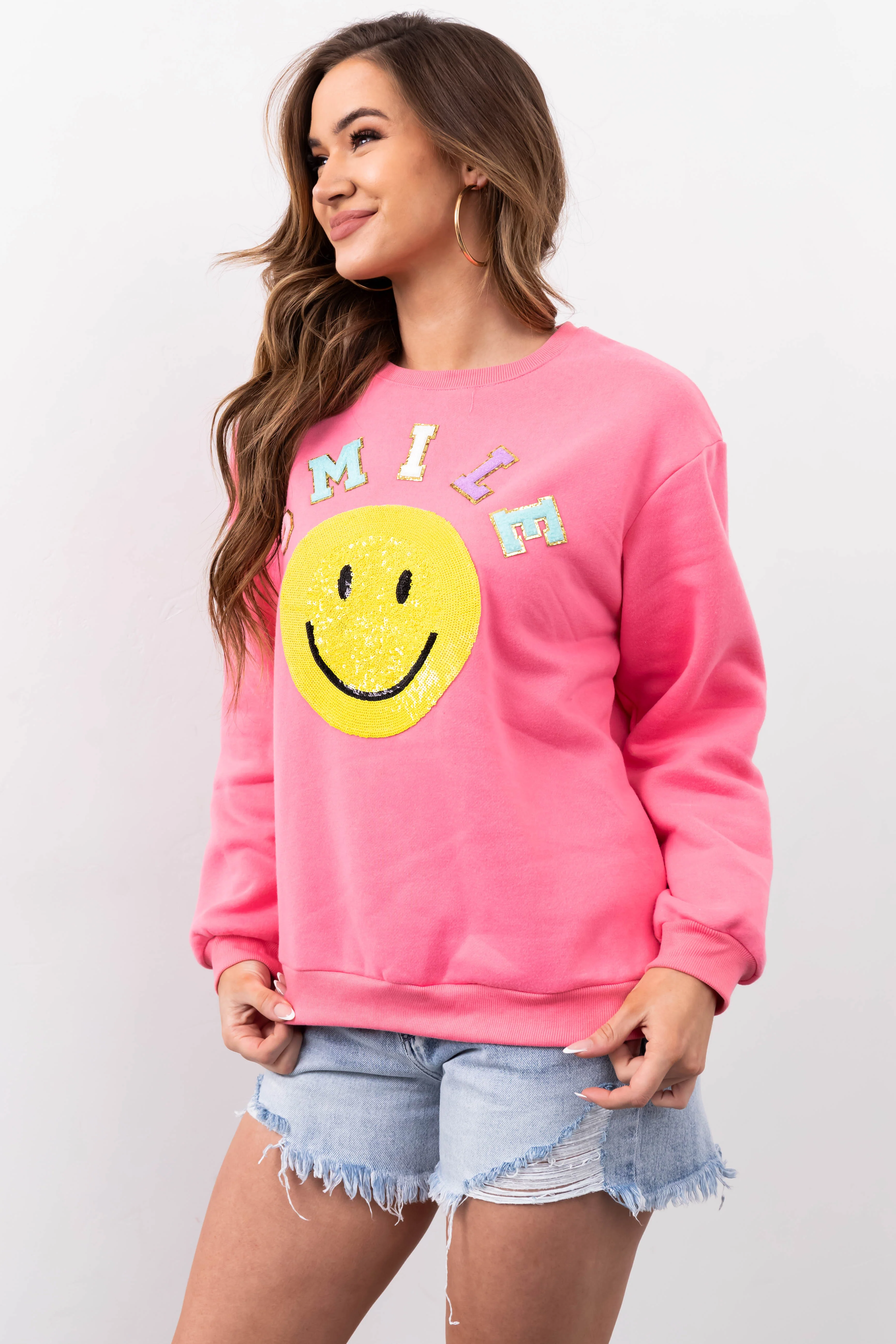 She+Sky Baby Pink 'Smile' Sequin Sweatshirt