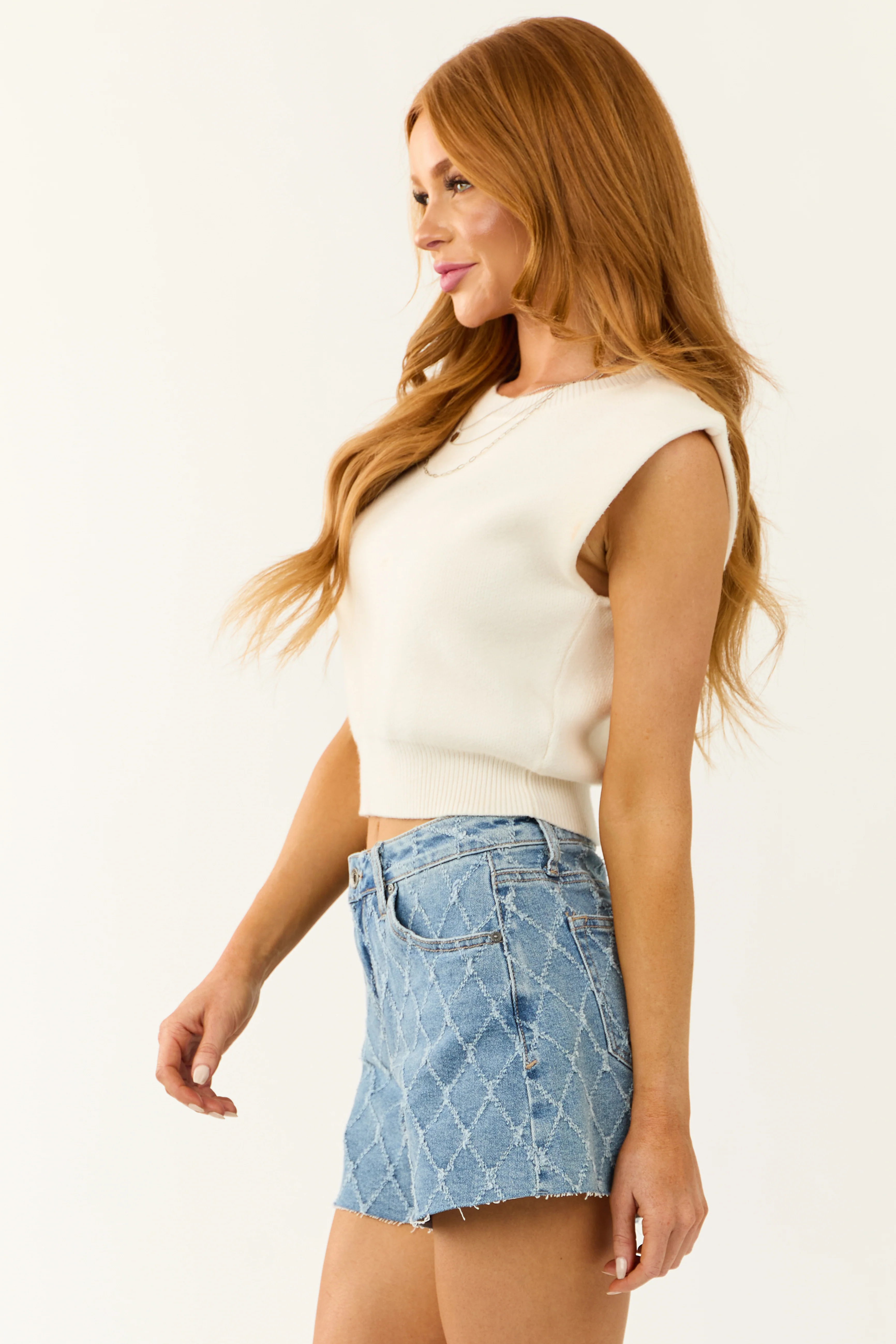She+Sky Ivory Sleeveless Cropped Soft Sweater