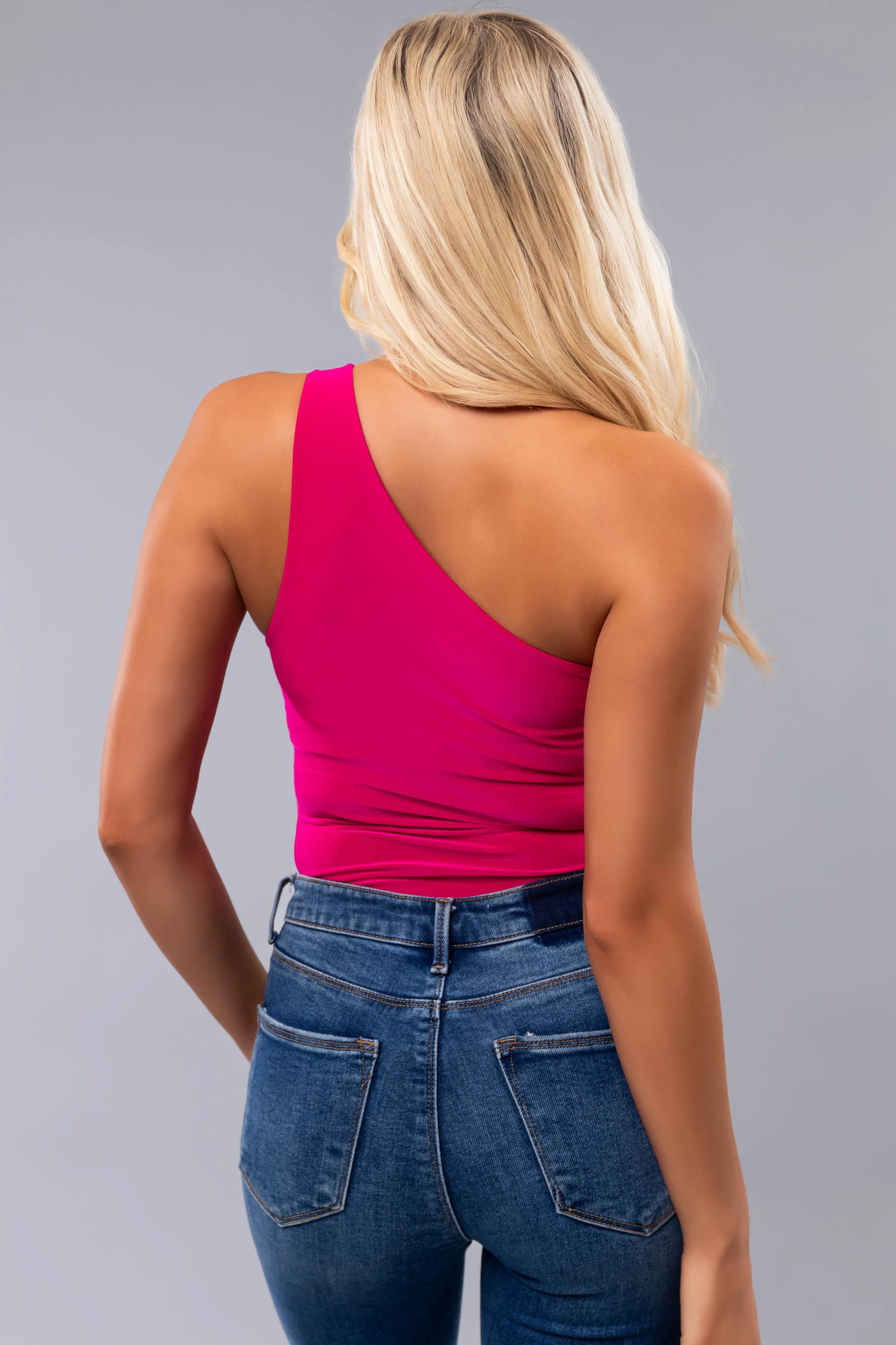 Magenta One Shoulder Stretchy Knit Bodysuit