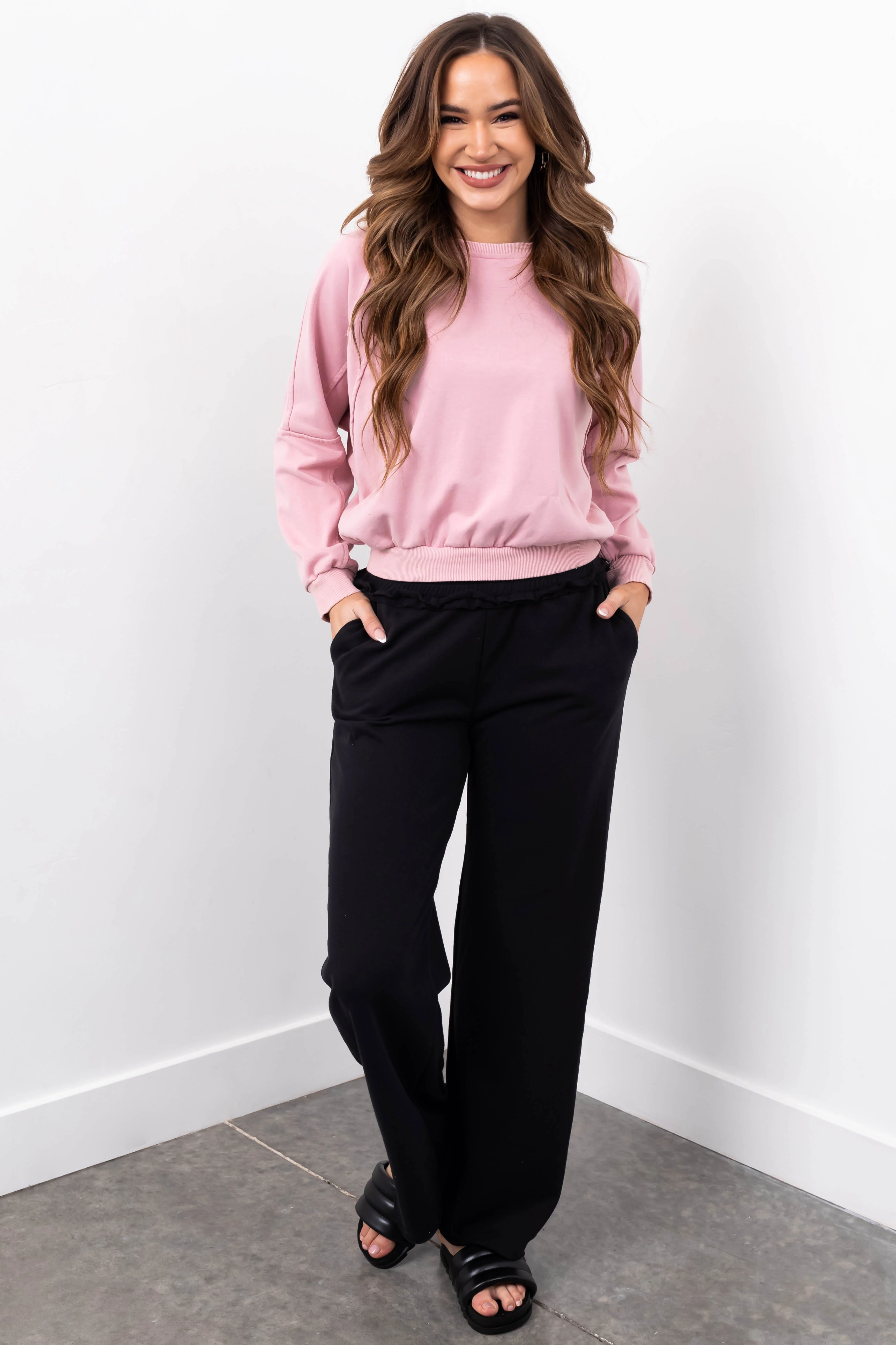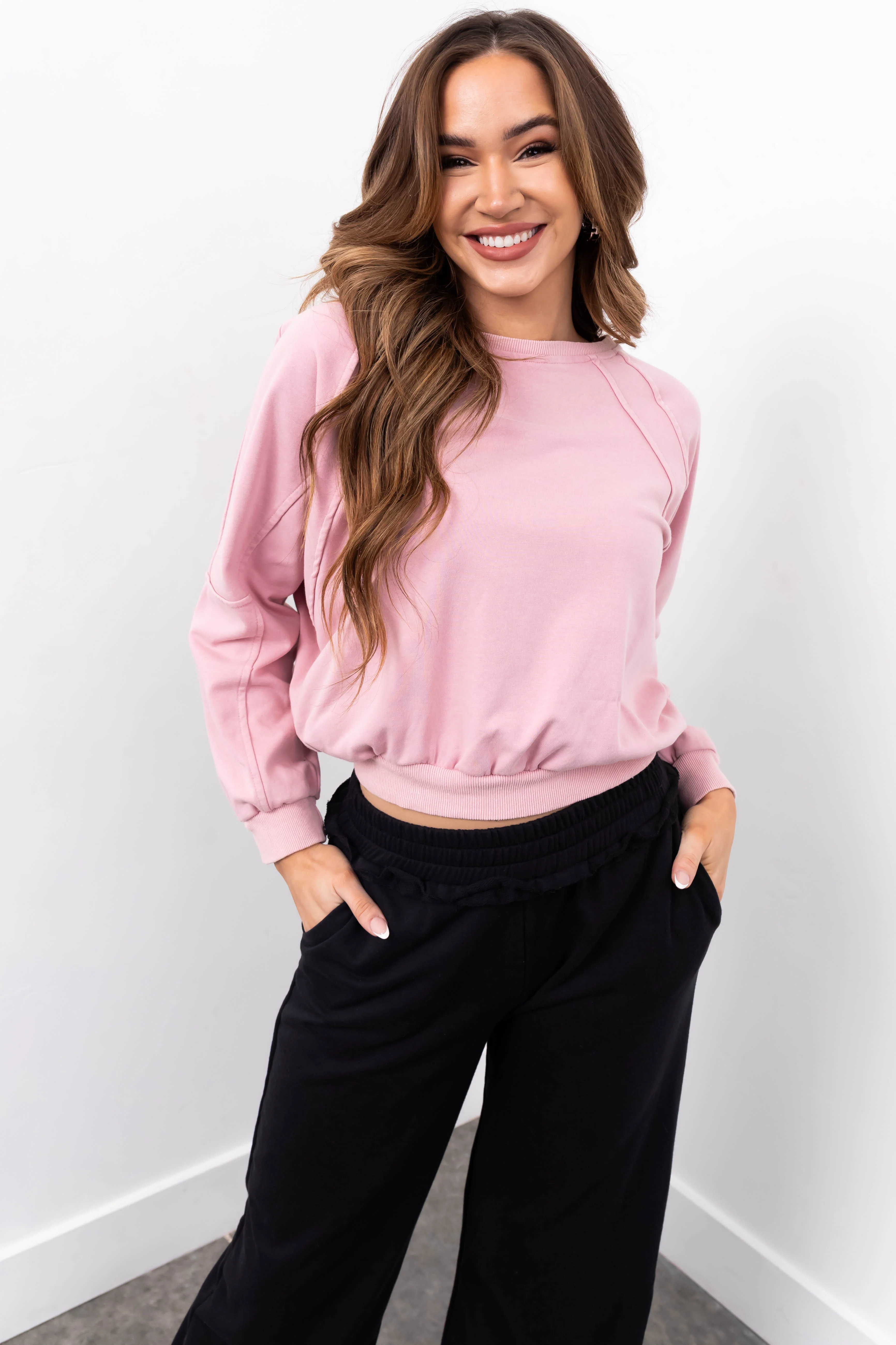 She+Sky Dusty Blush Seam Detail Pullover Top