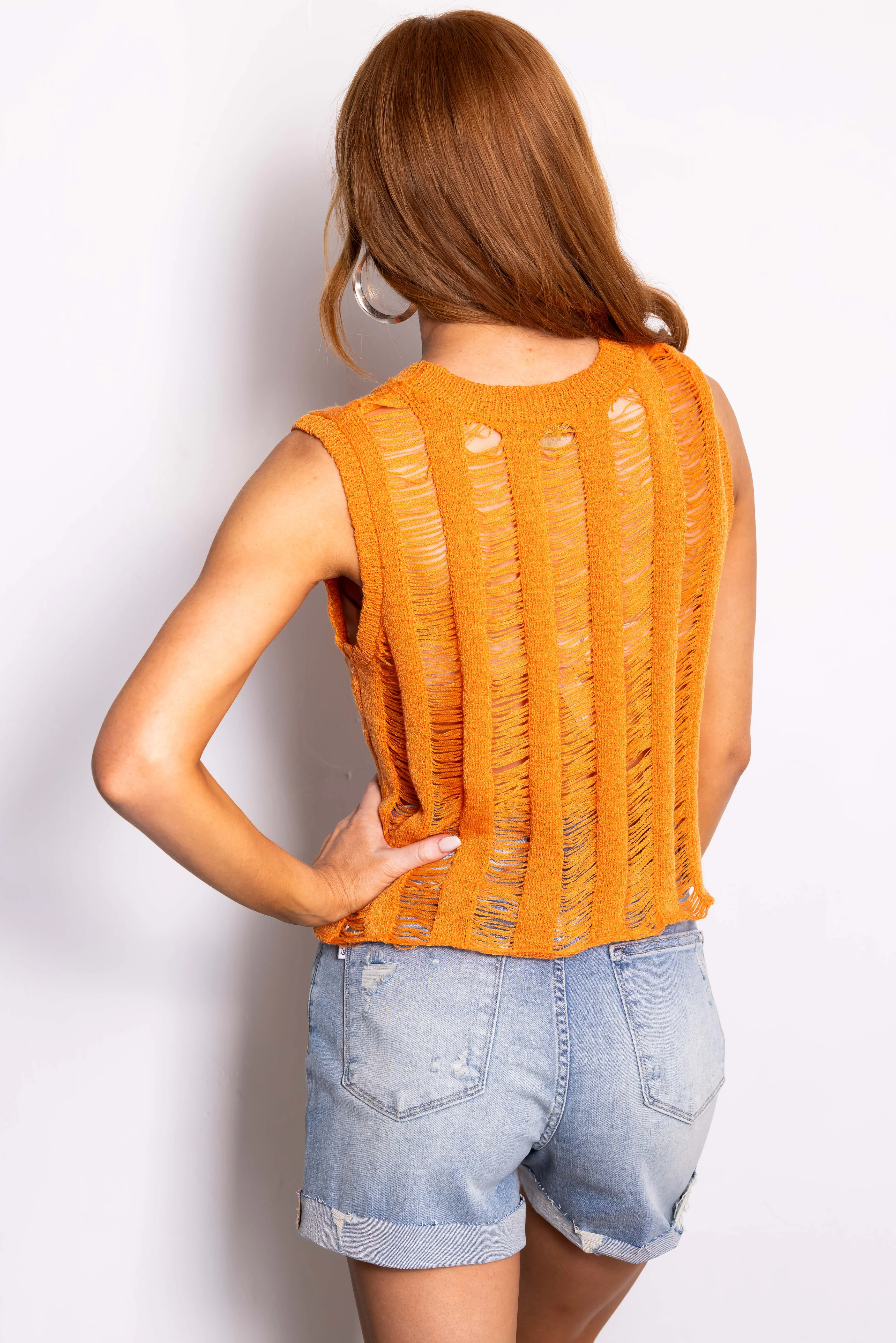 Tangerine Loose Threading Knit Tank Top