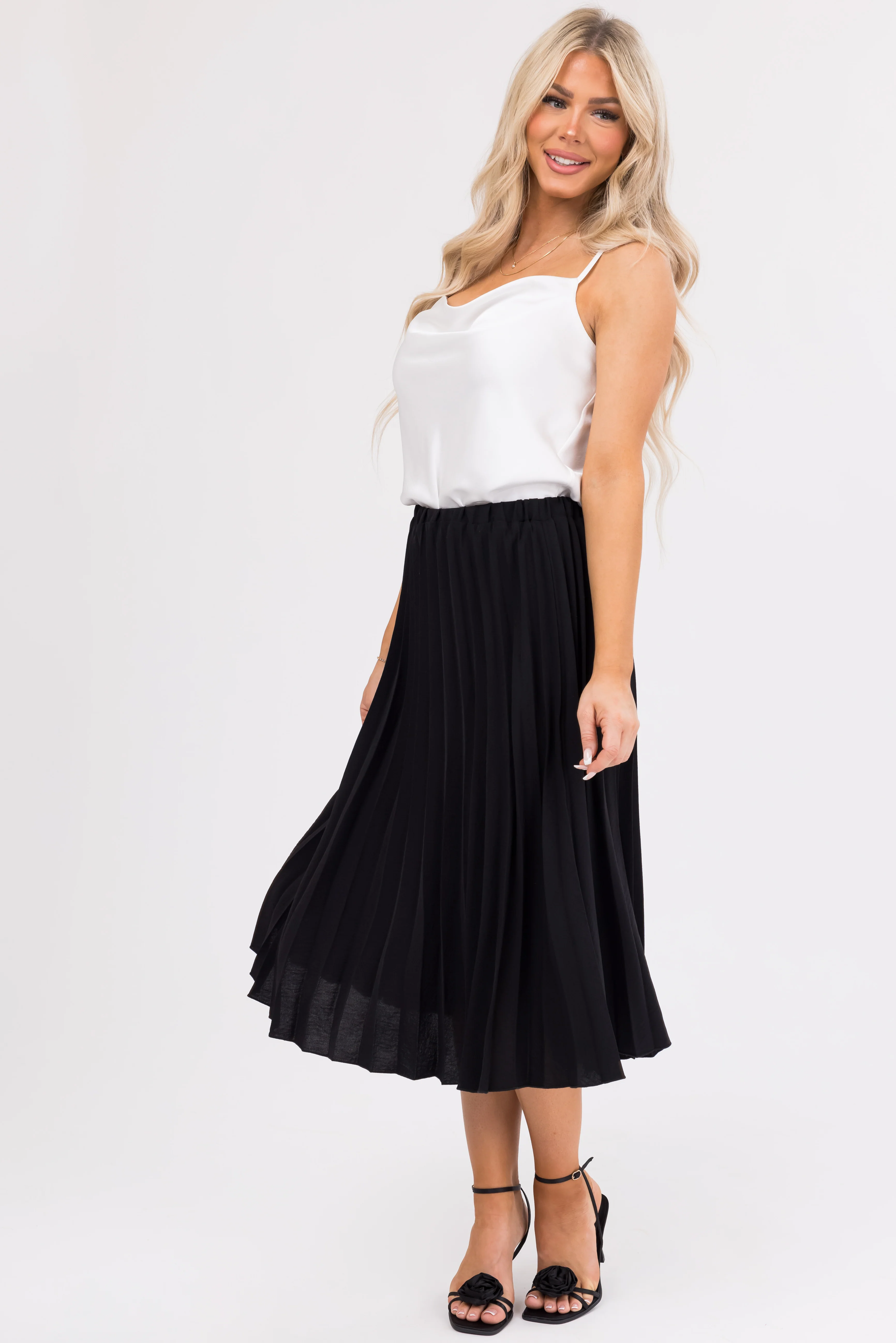 She+Sky Black Sleeveless Pleated Top