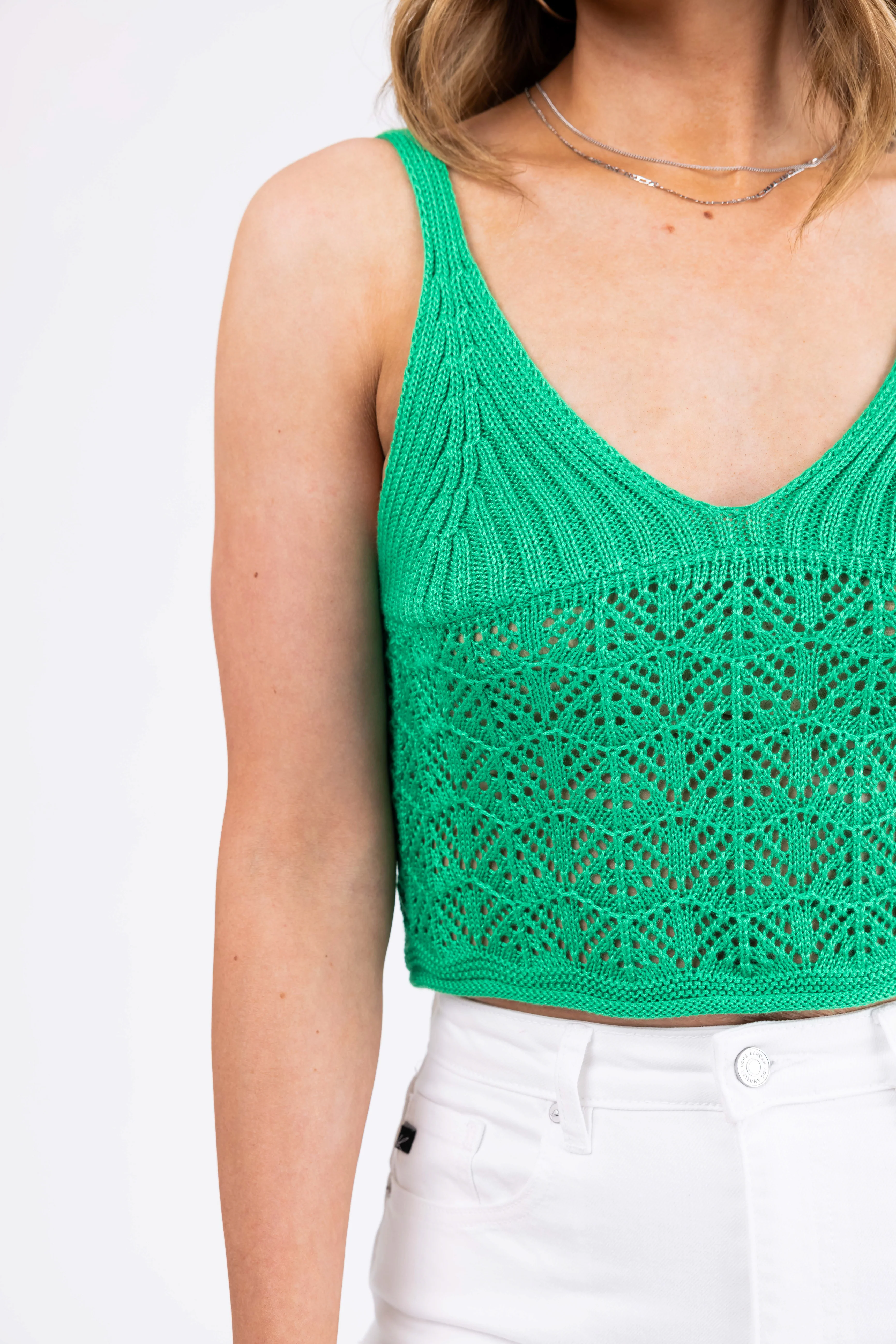Kelly Green Sleeveless V Neck Cut Out Knit Crop Top