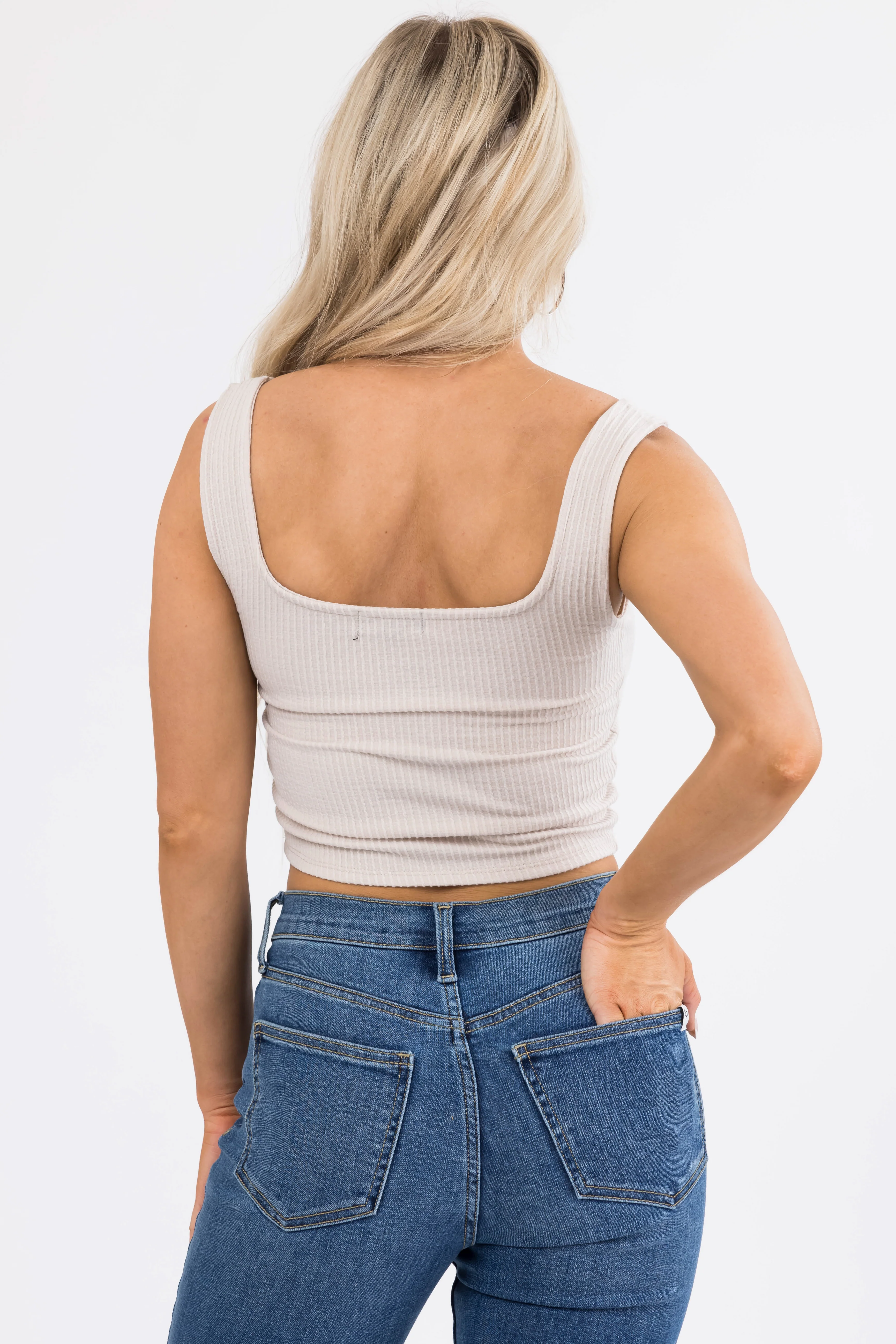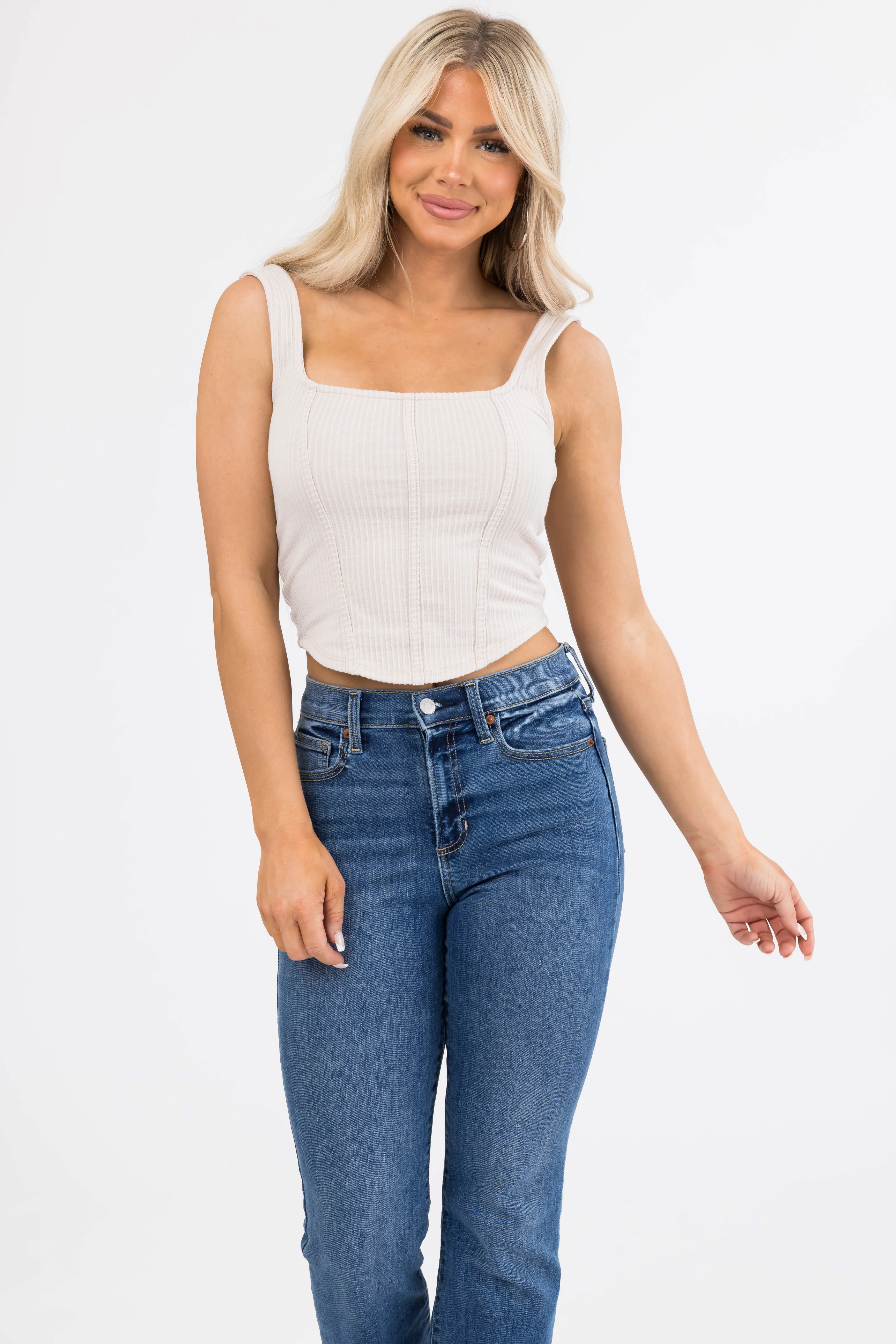 Coconut Square Neck Ribbed Corset Tank Top