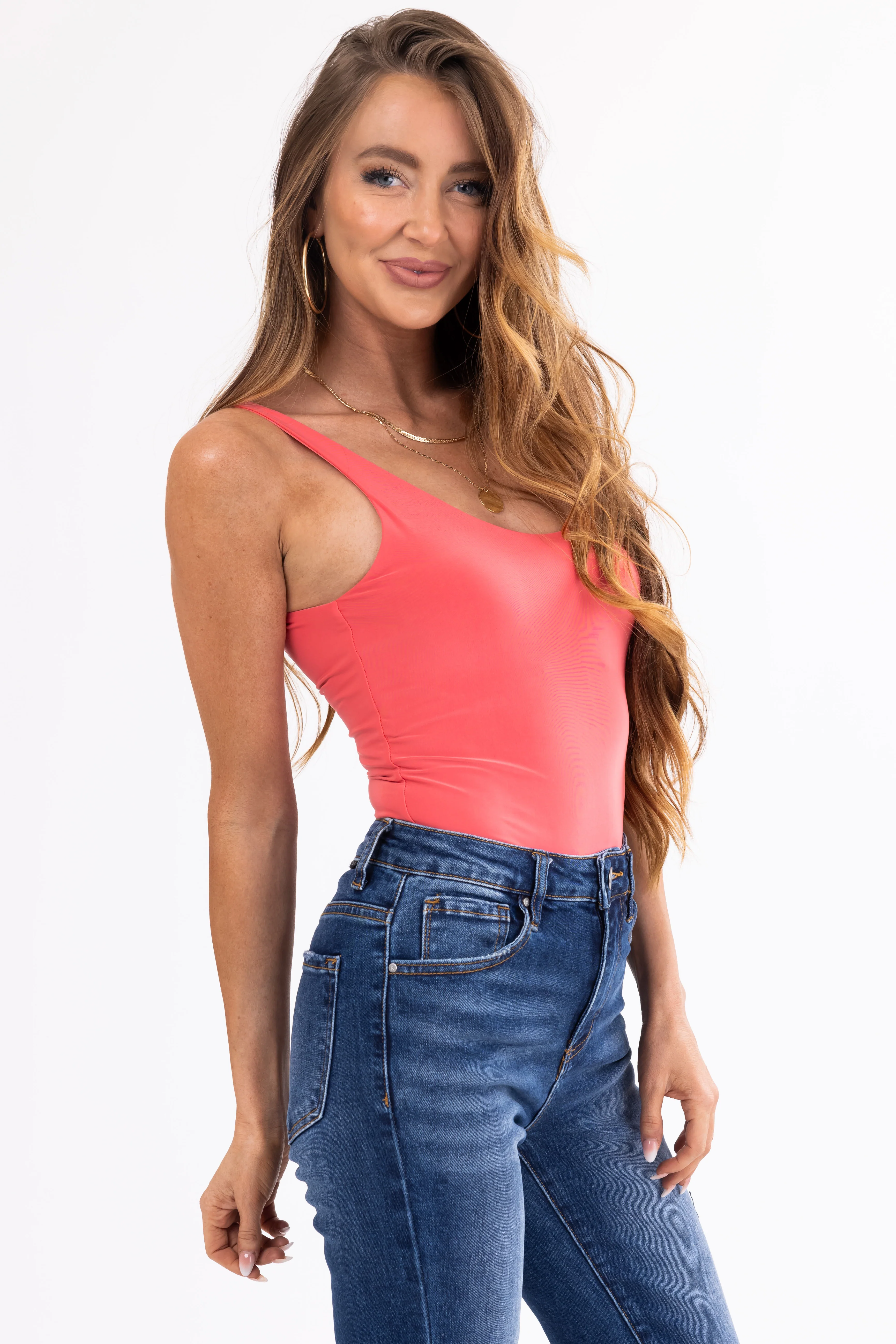 Watermelon Scoop Neck Sleeveless Silky Knit Bodysuit