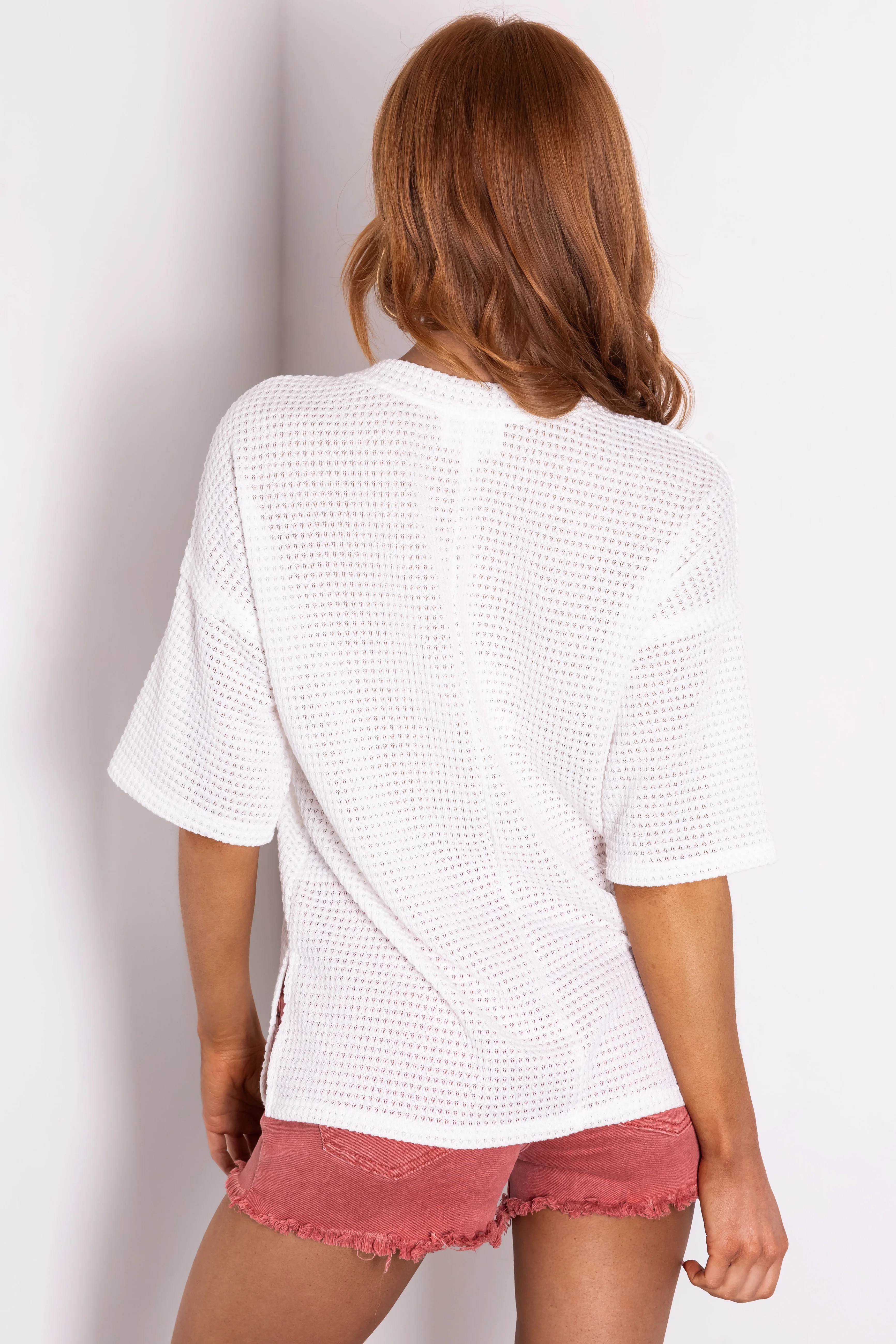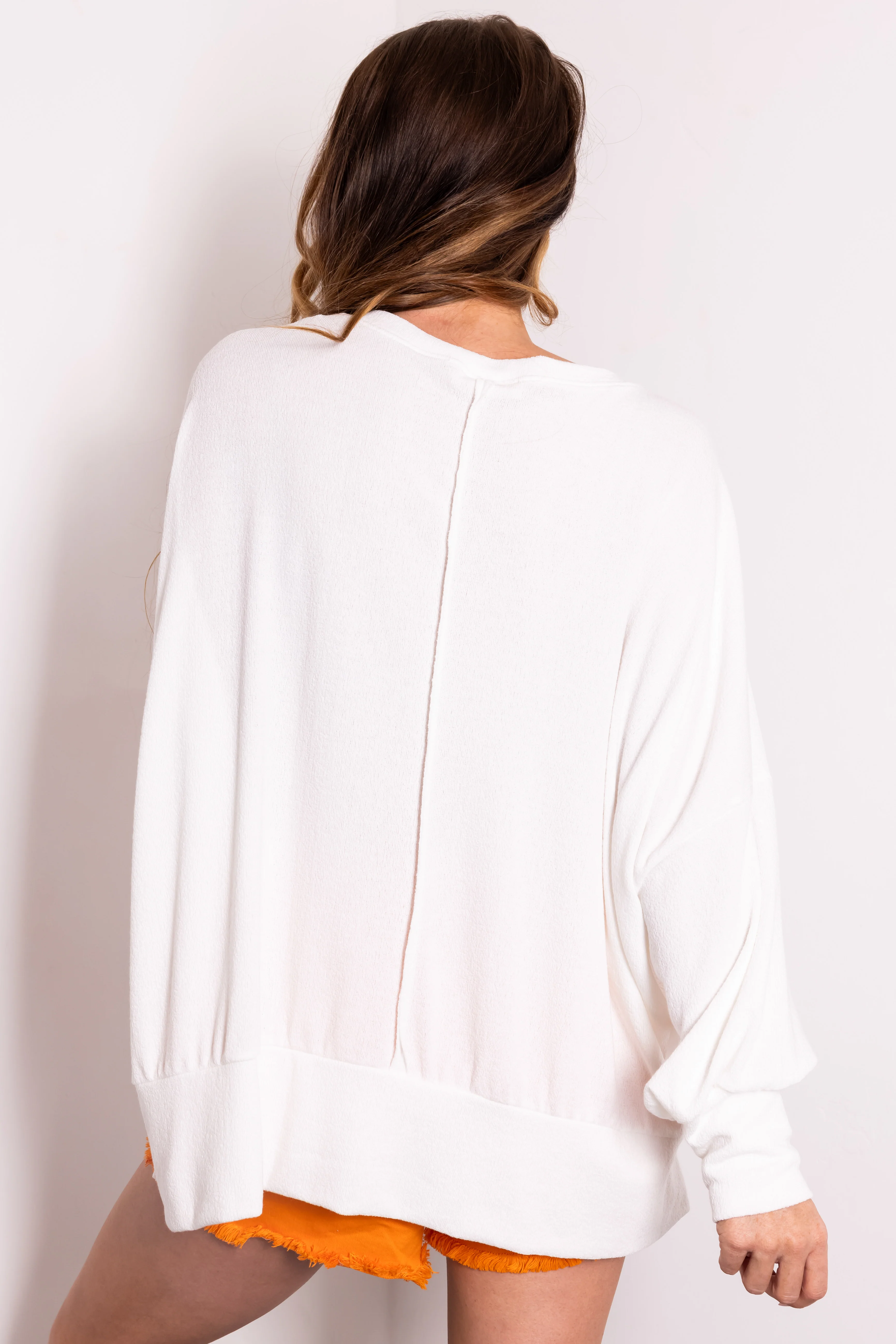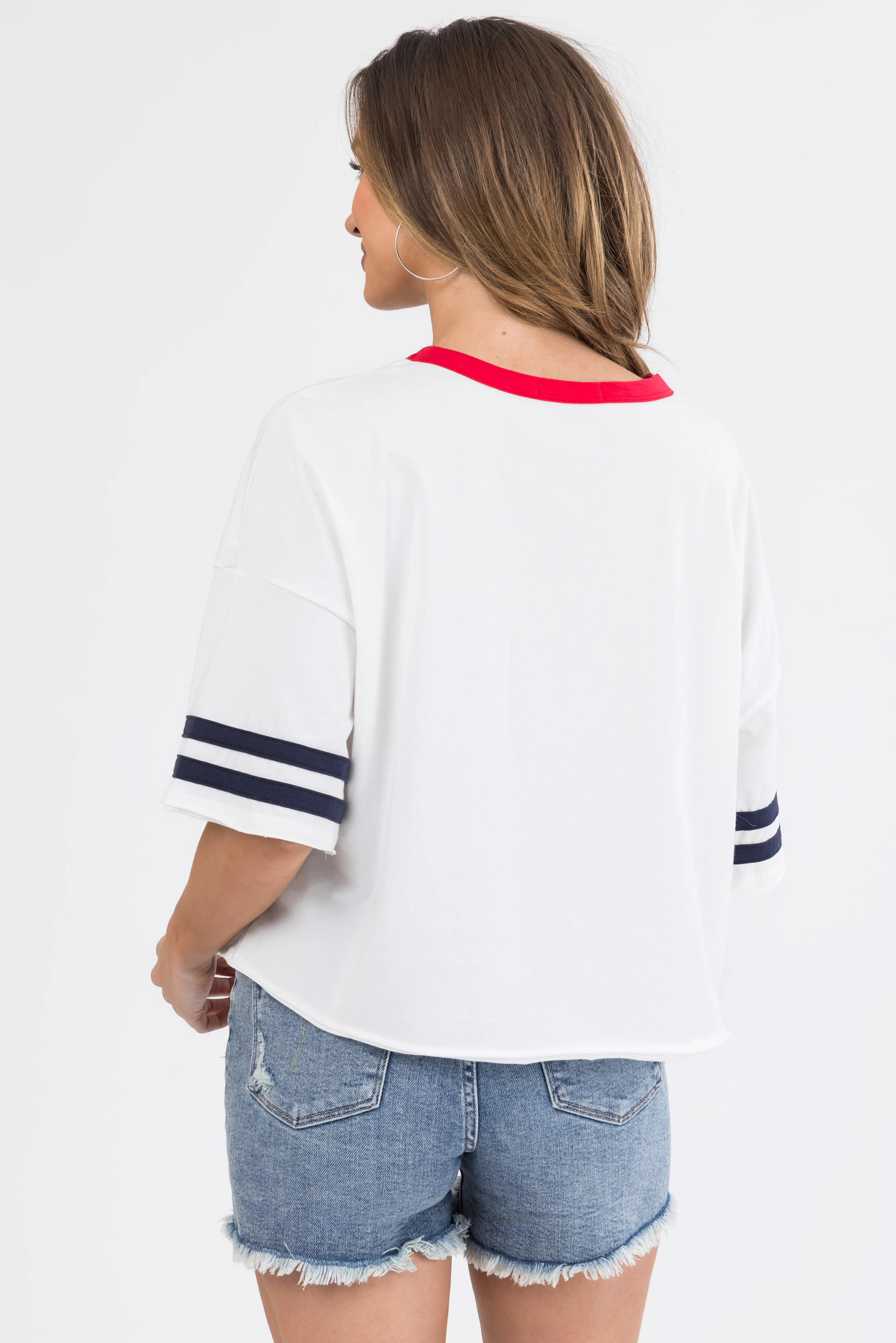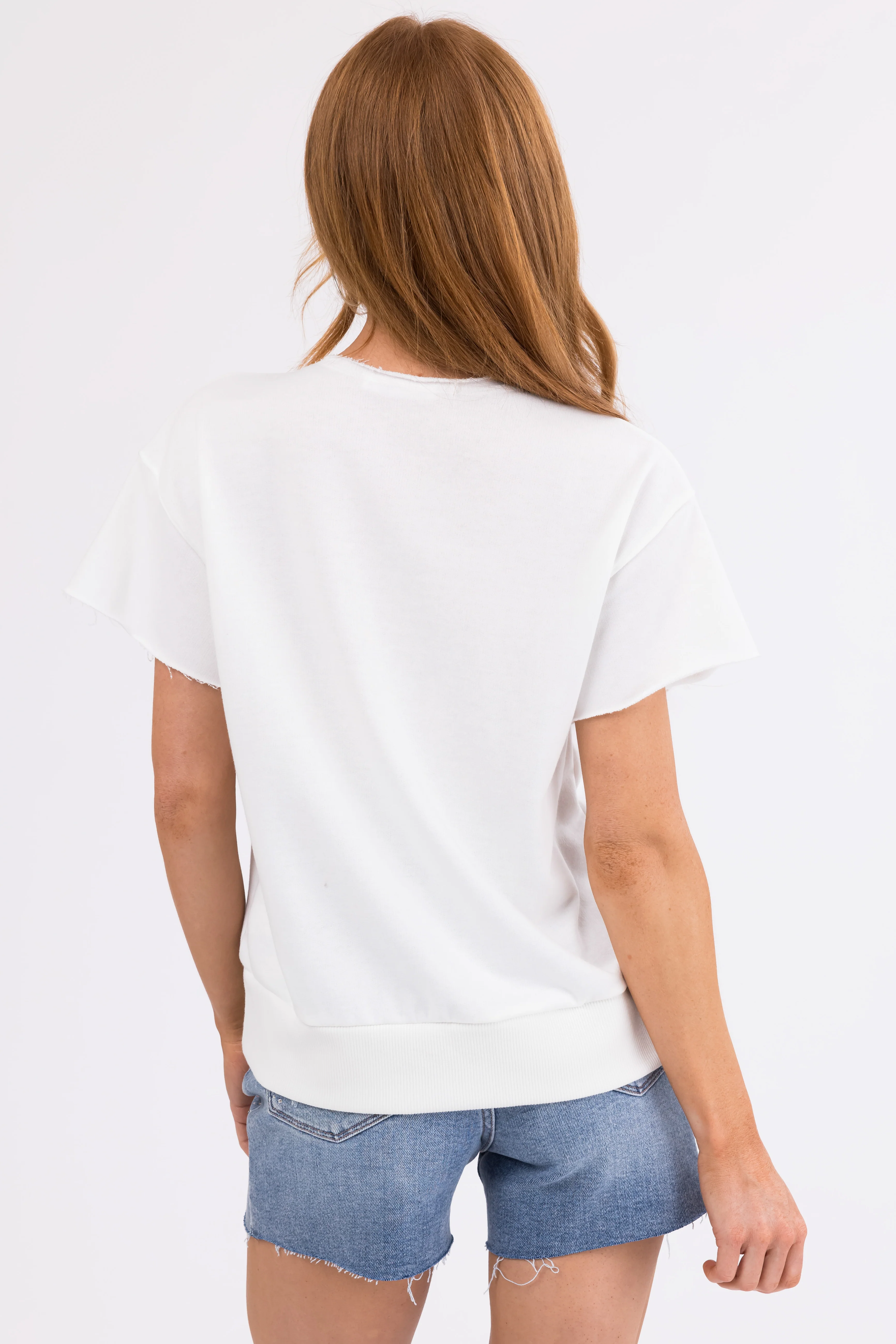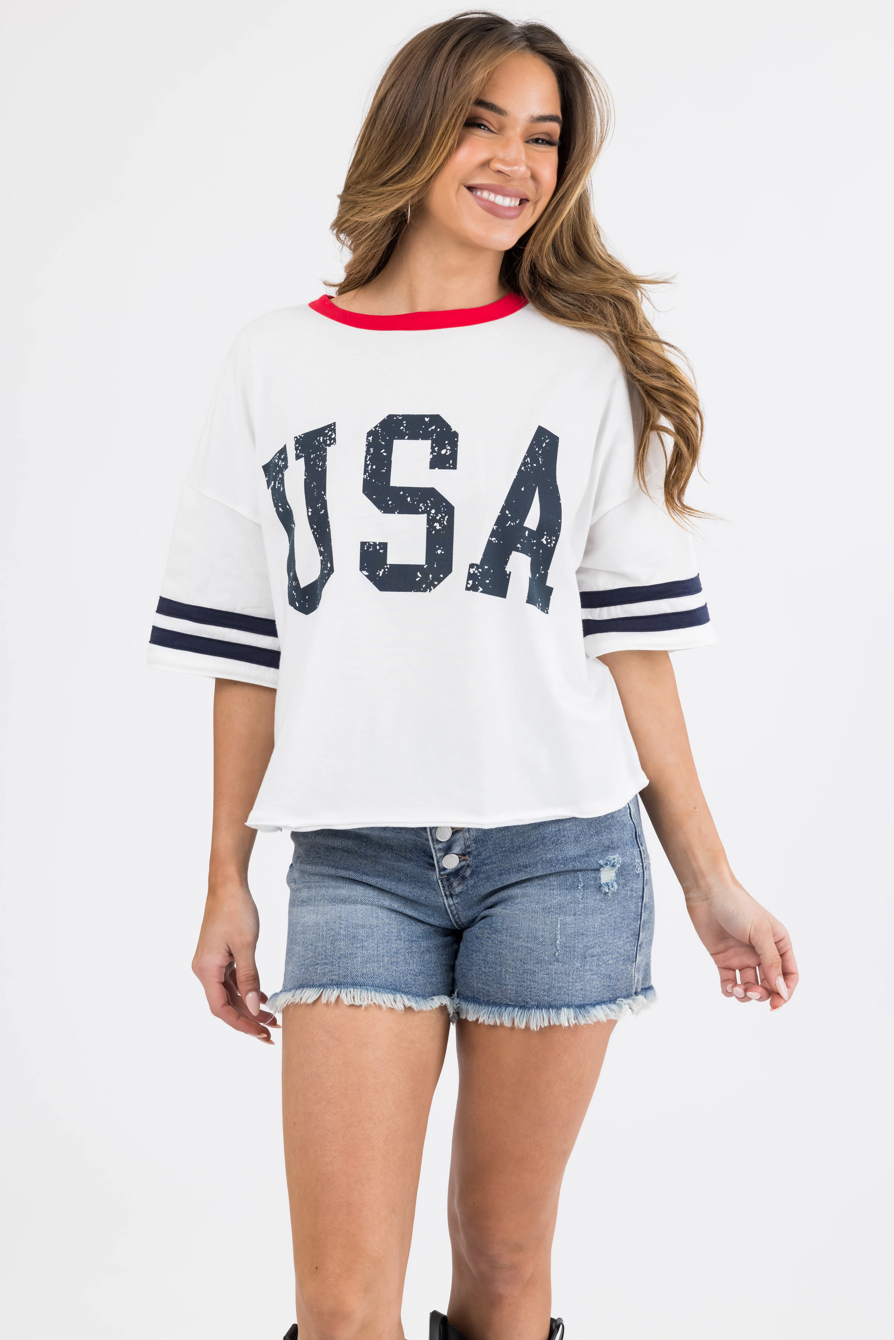 Off White Split Neck 'USA' Graphic Sweatshirt
