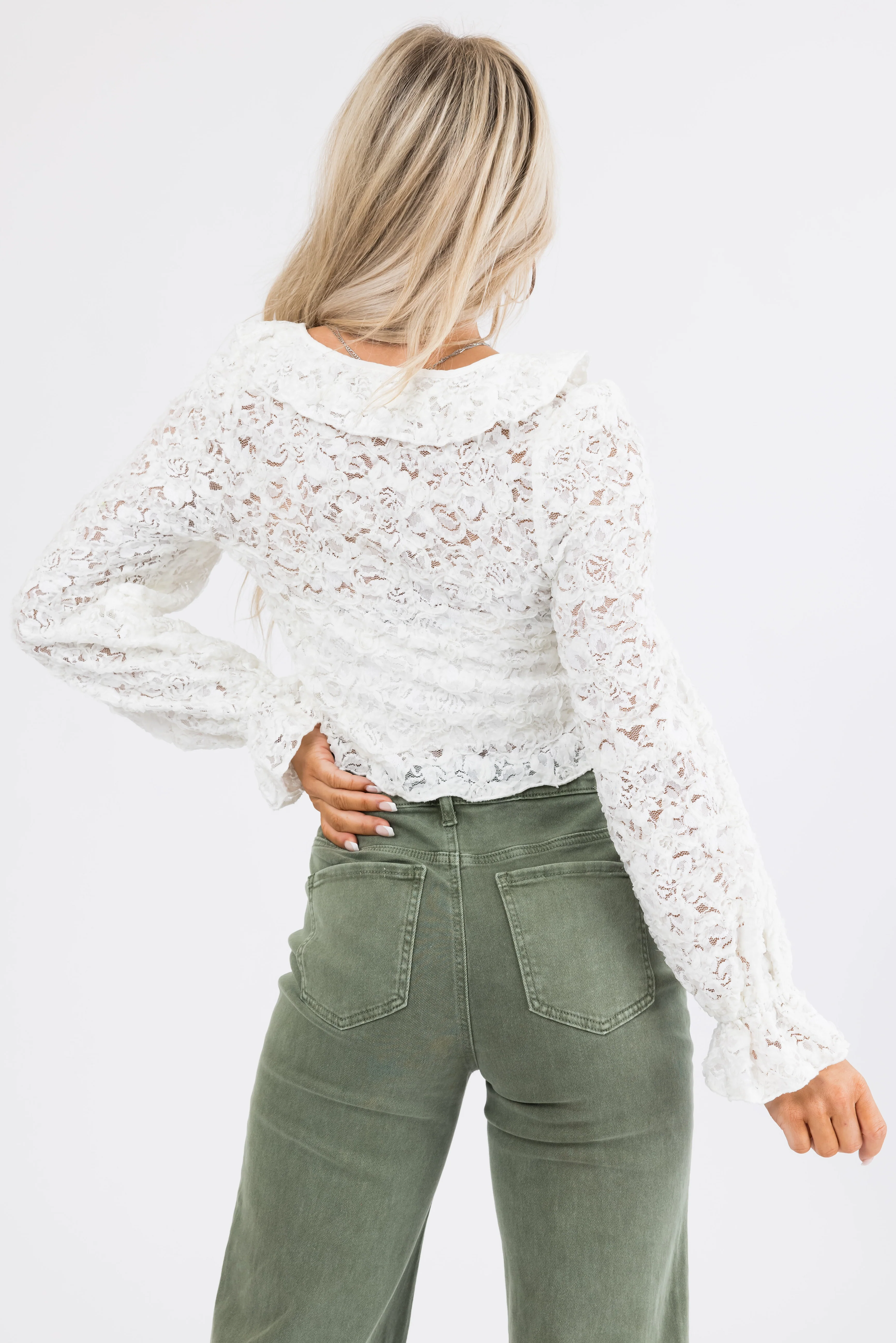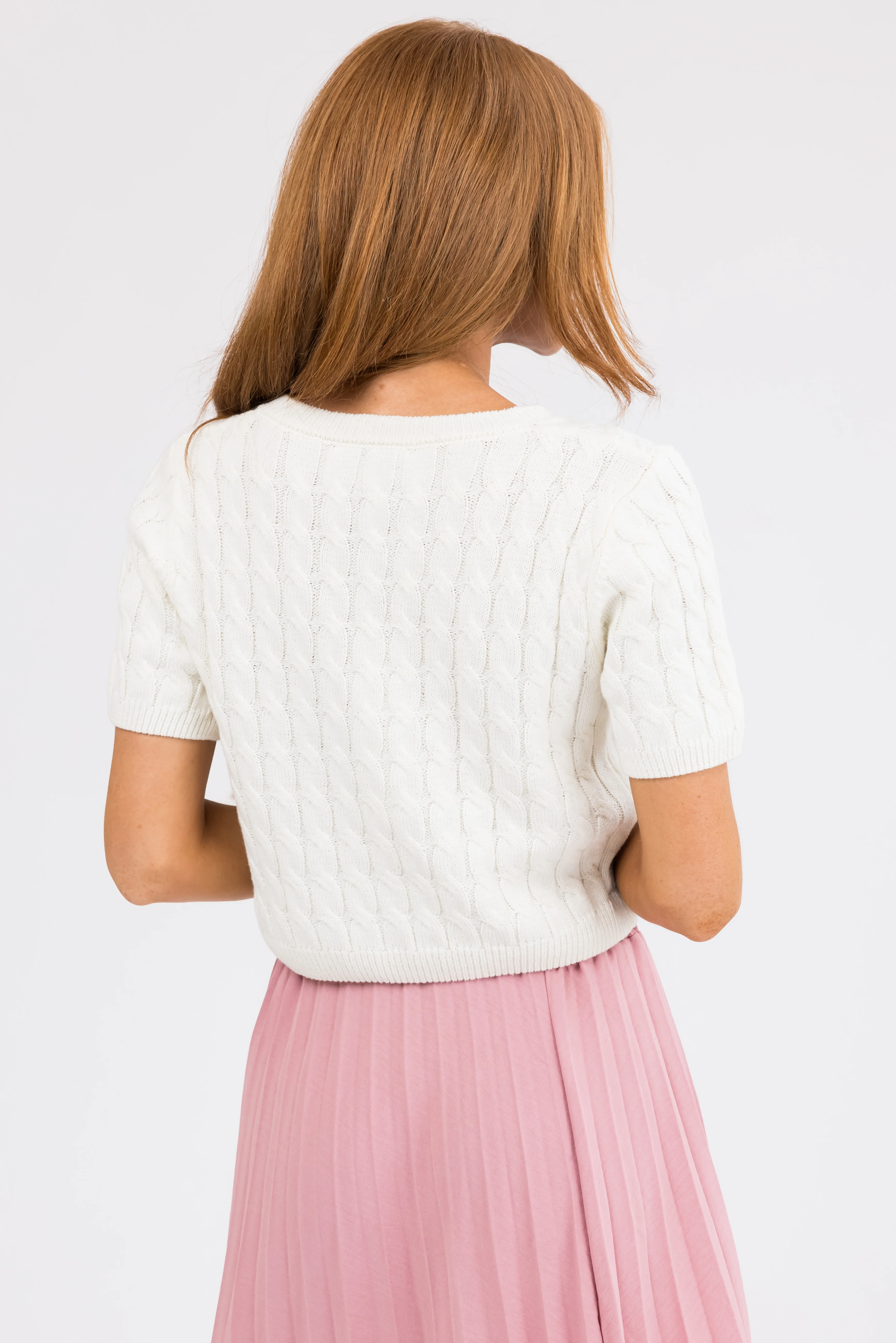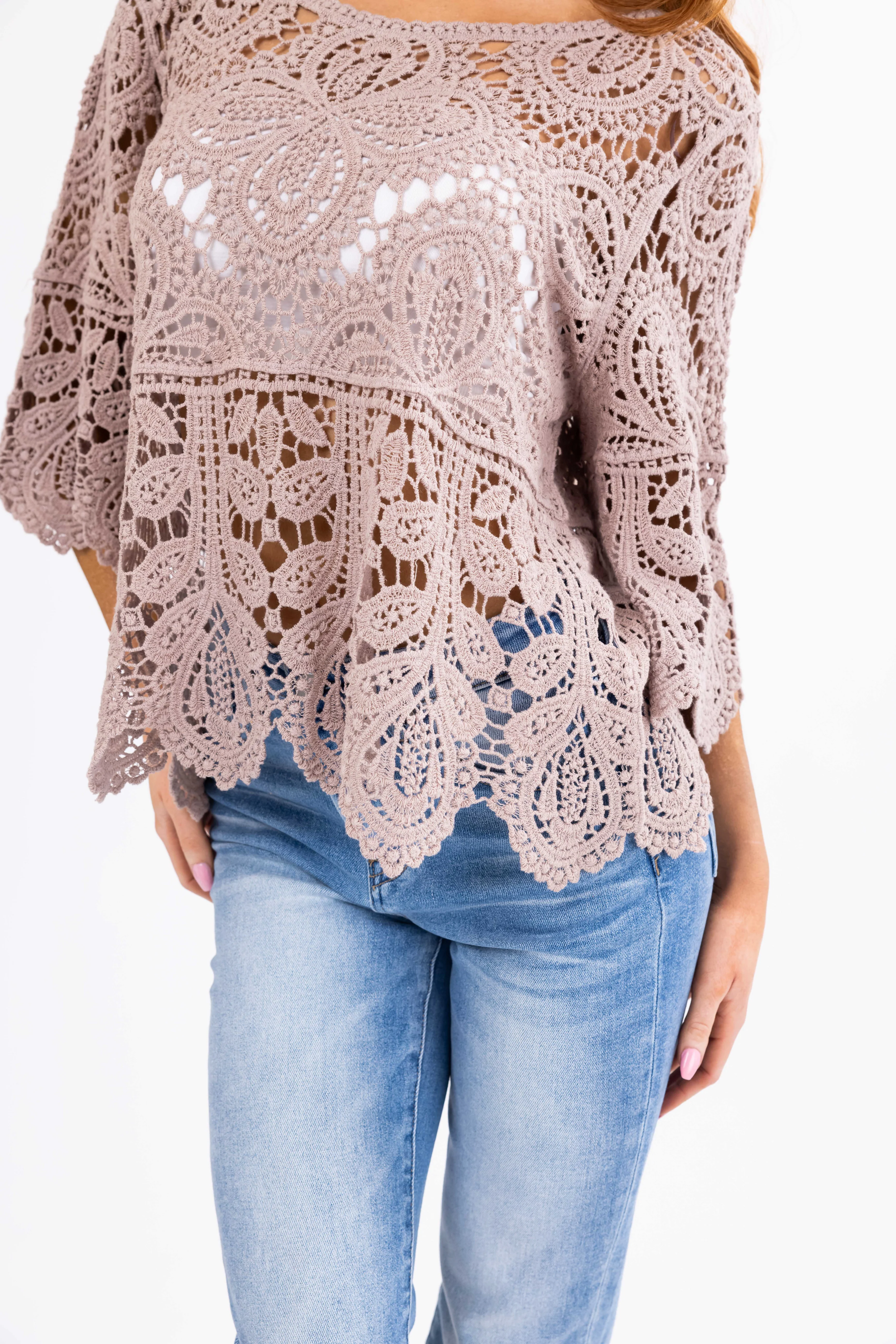 Latte Crochet Lace Scalloped Half Sleeve Top