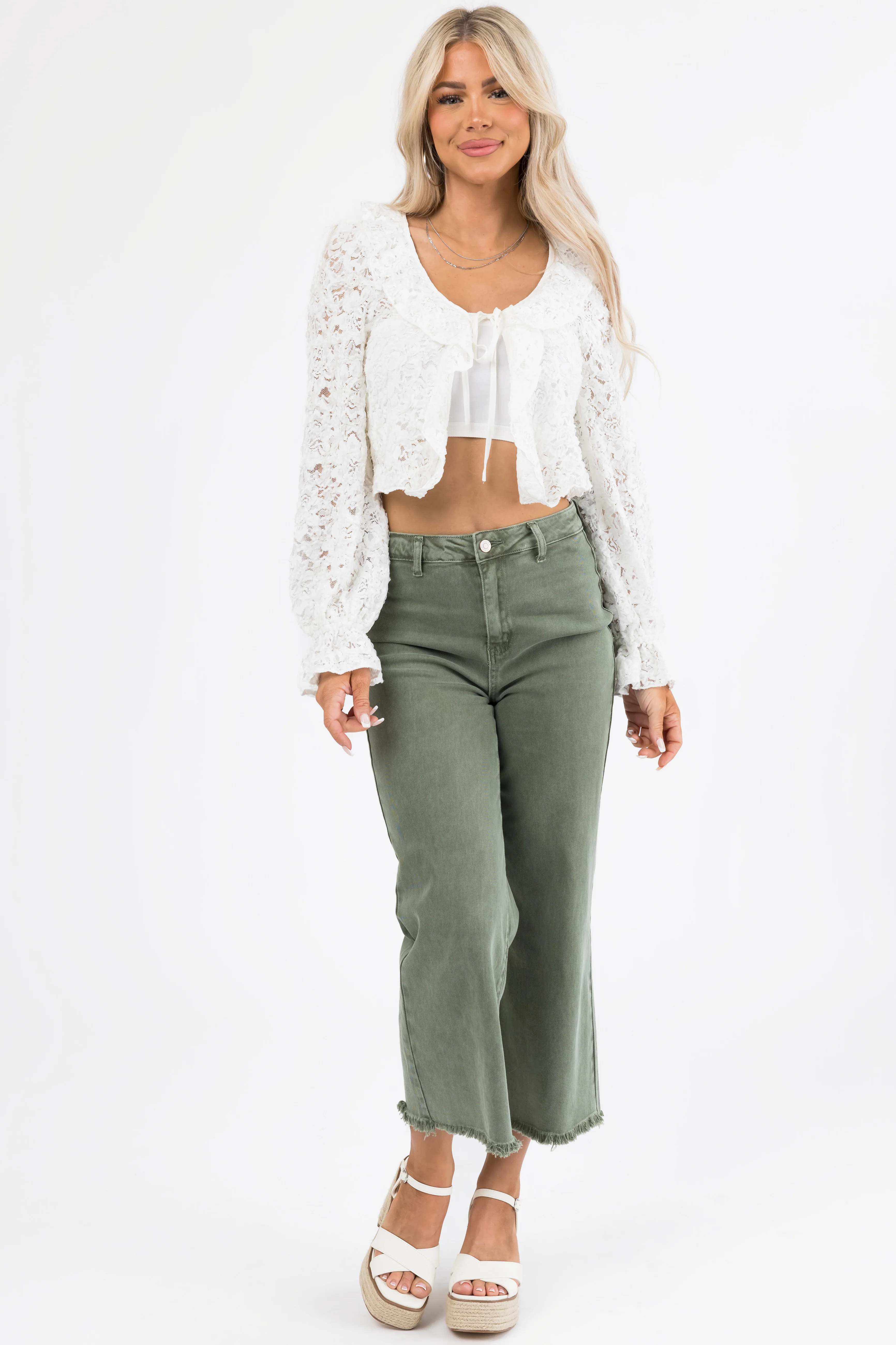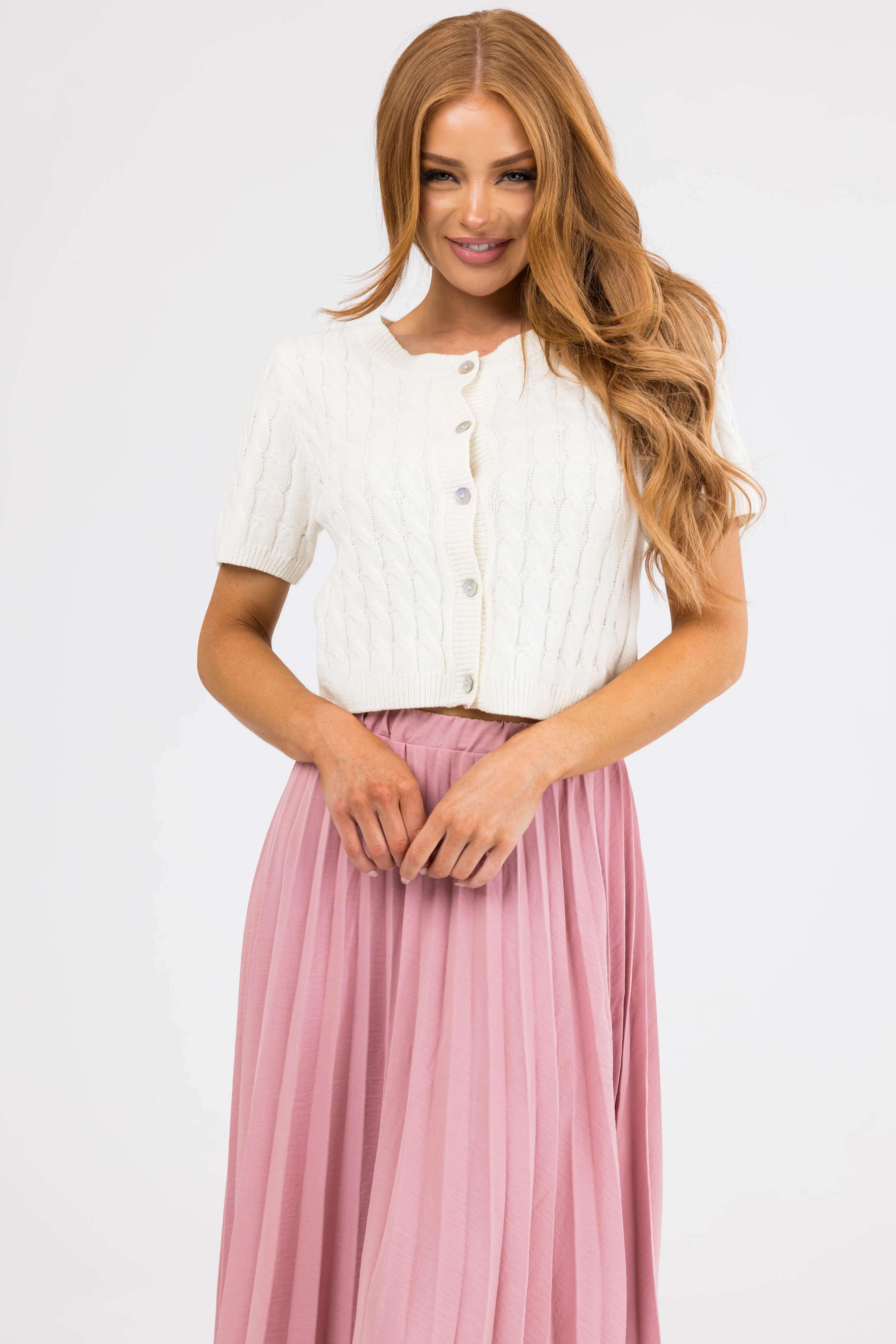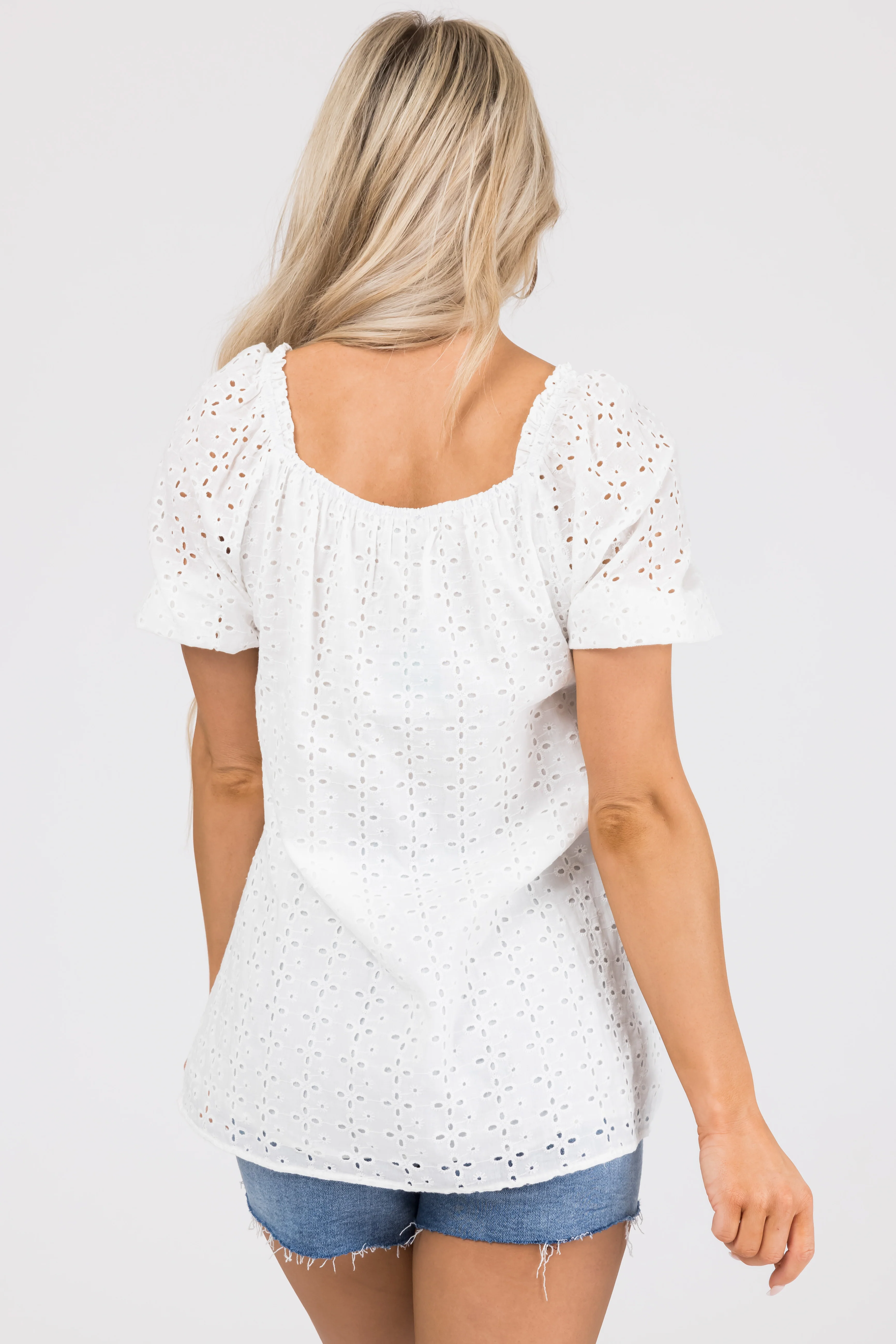 Latte Crochet Lace Scalloped Half Sleeve Top