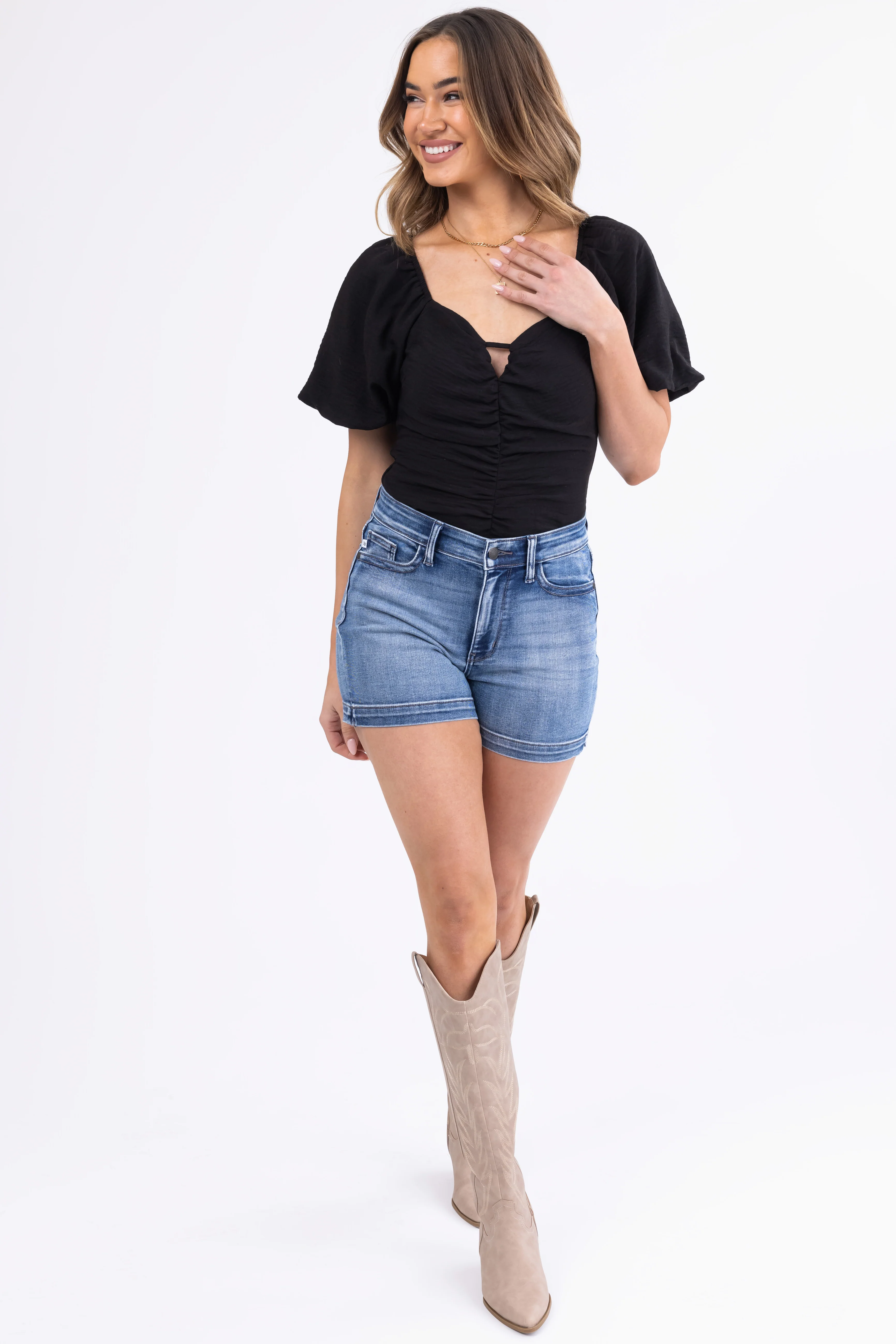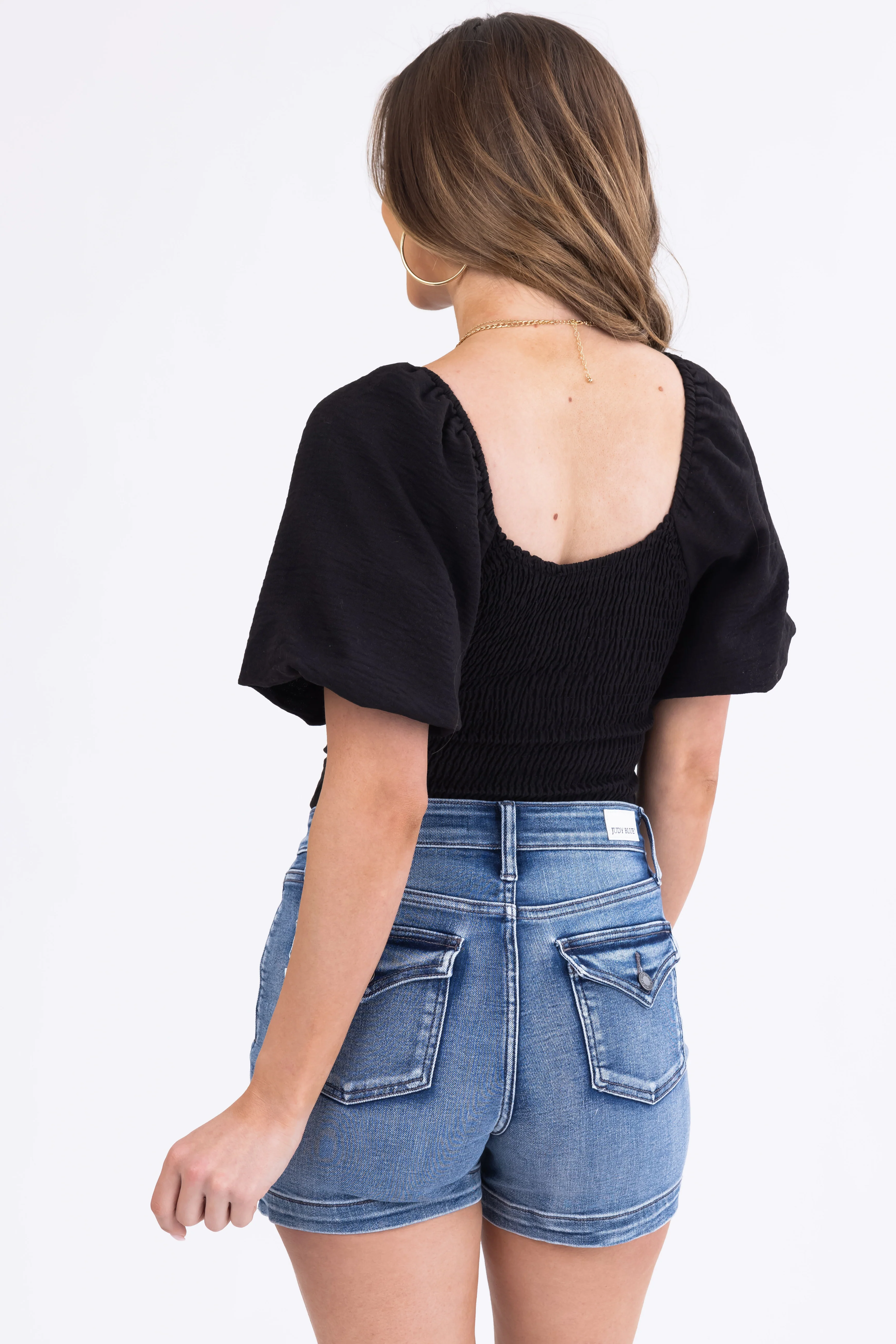 Faded Teal Square Neck Cap Sleeve Crop Top