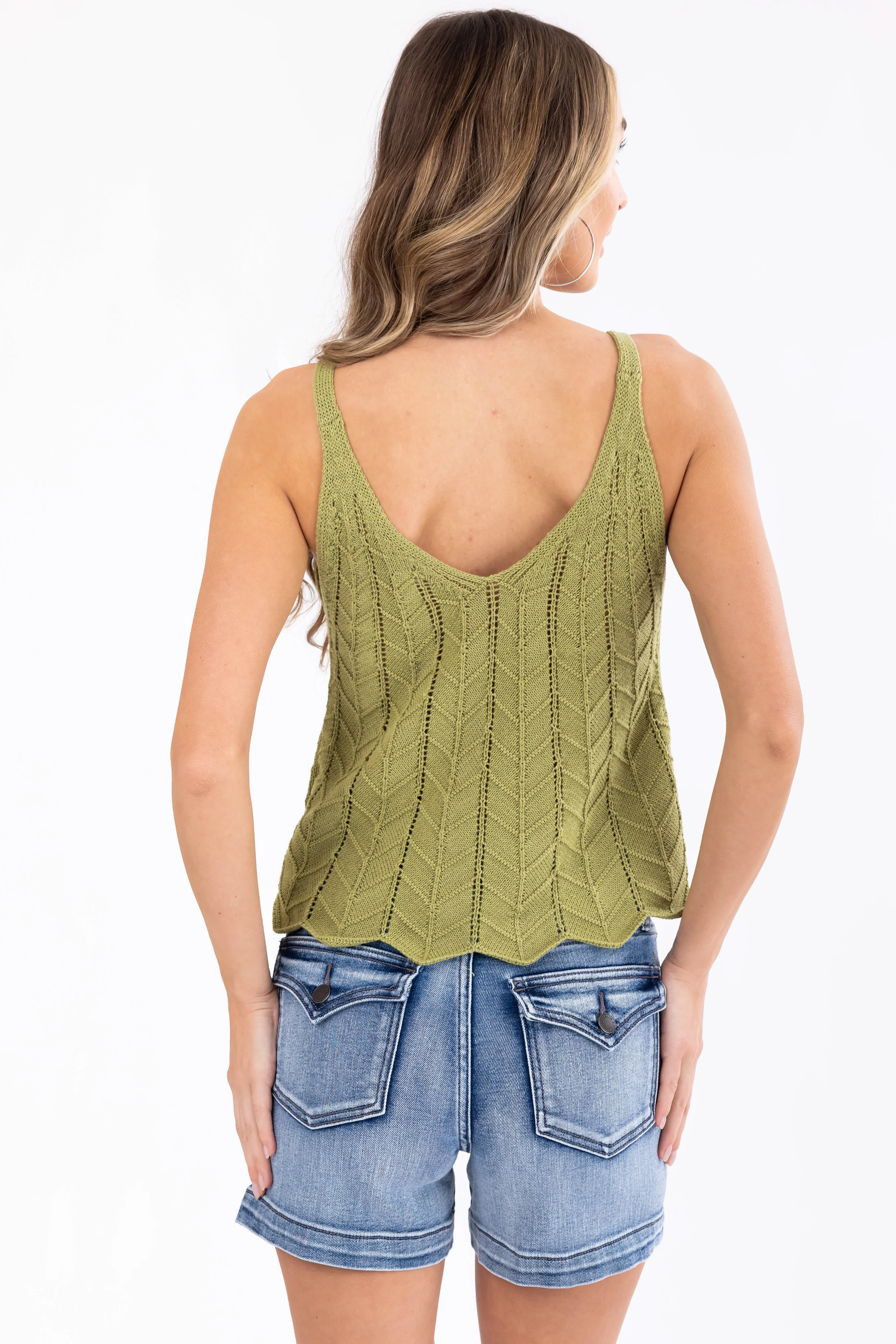 Olive Scallop Hem Textured Knit Sleeveless Top