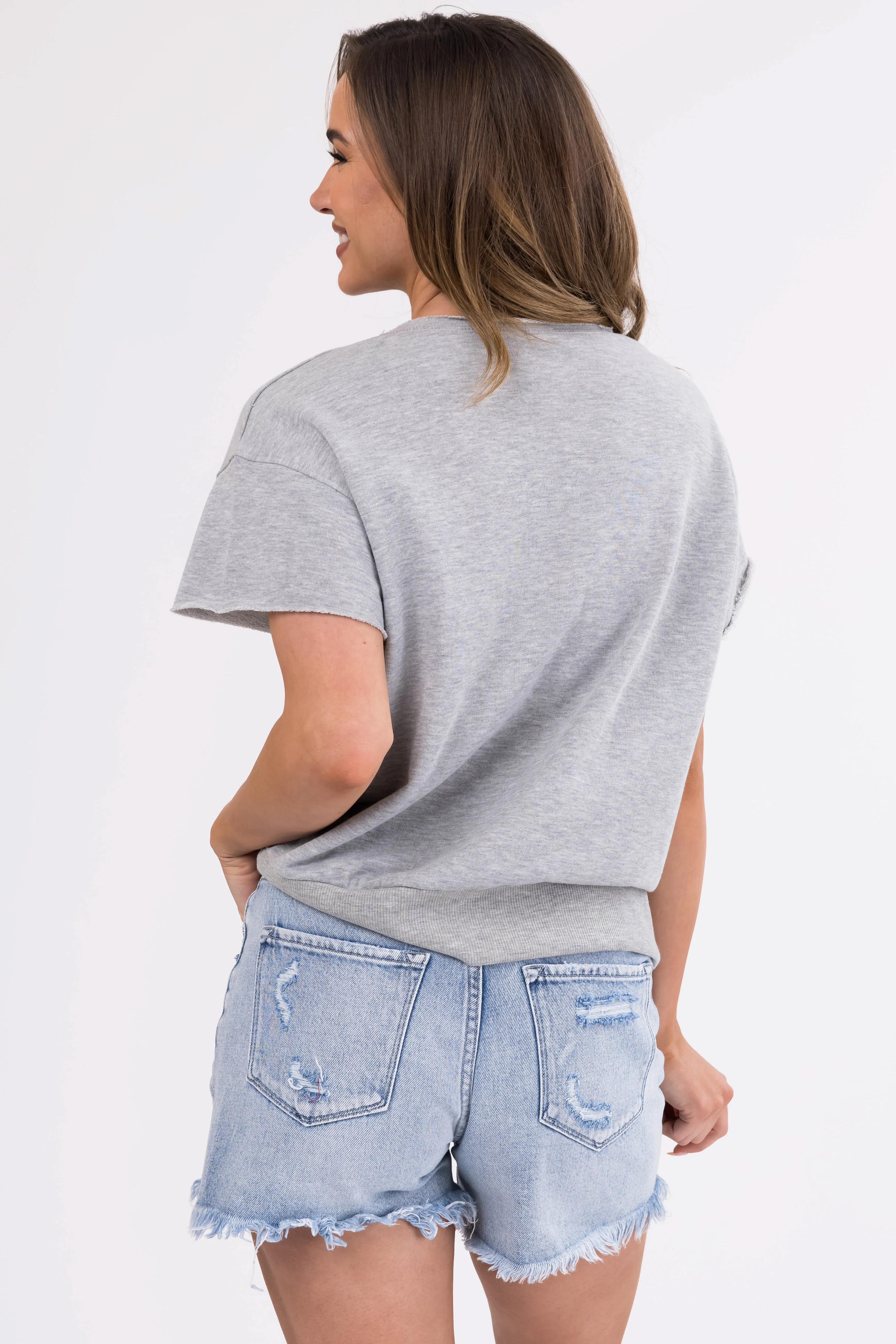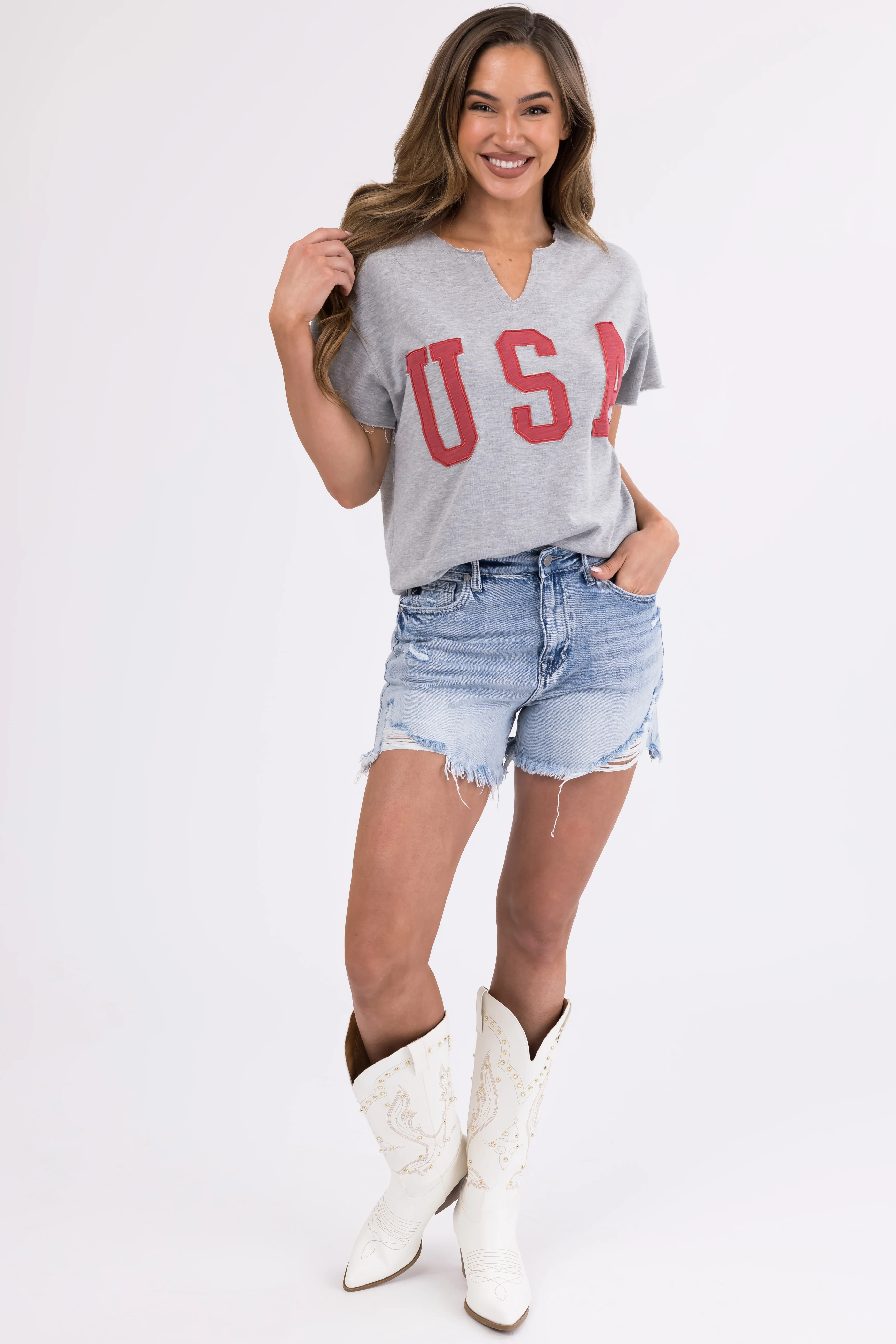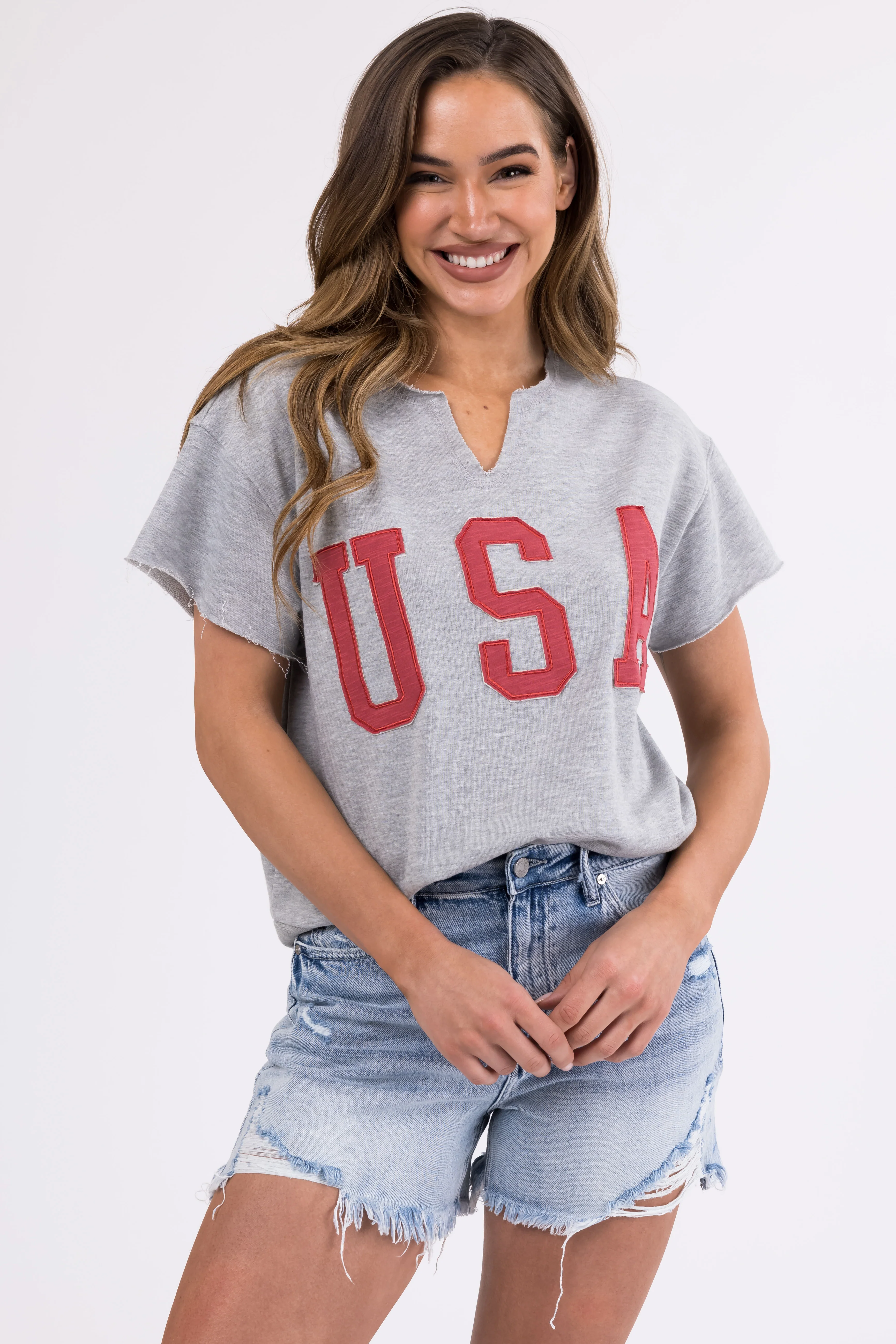 Heathered Grey Split Neck 'USA' Graphic Sweatshirt
