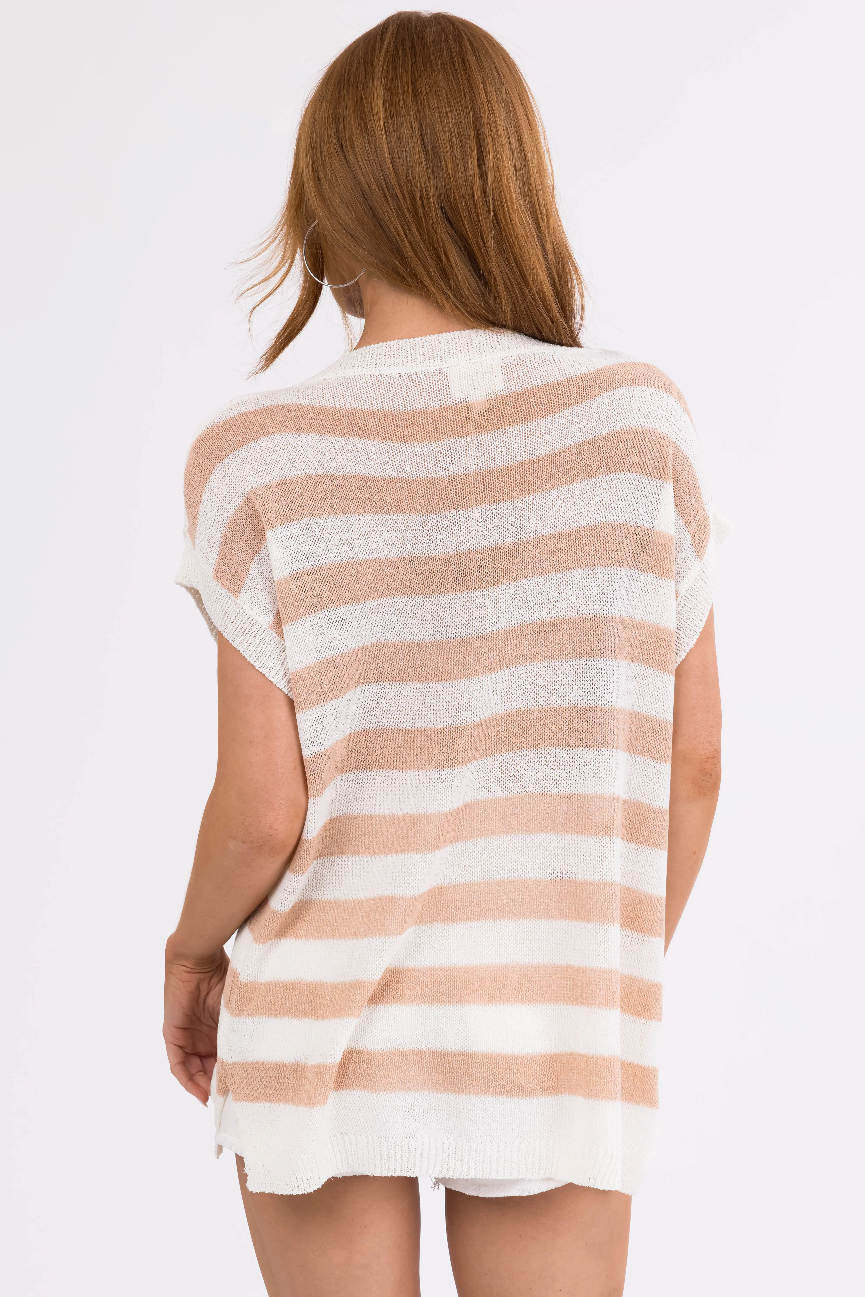Beige and Cornflower Striped Ruffle Sleeve Top