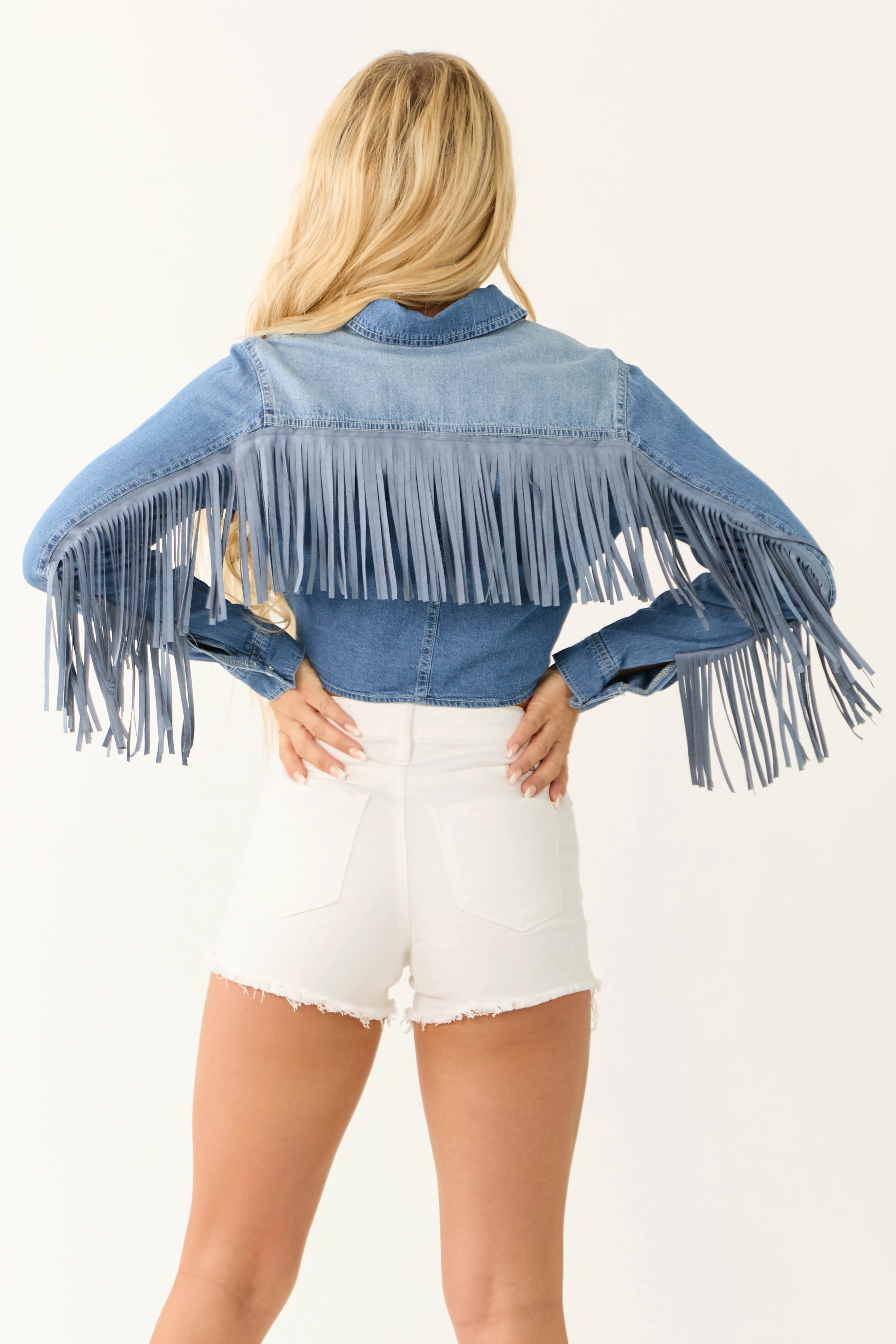 Dark Denim Cap Sleeve Faux Button Down Crop Top