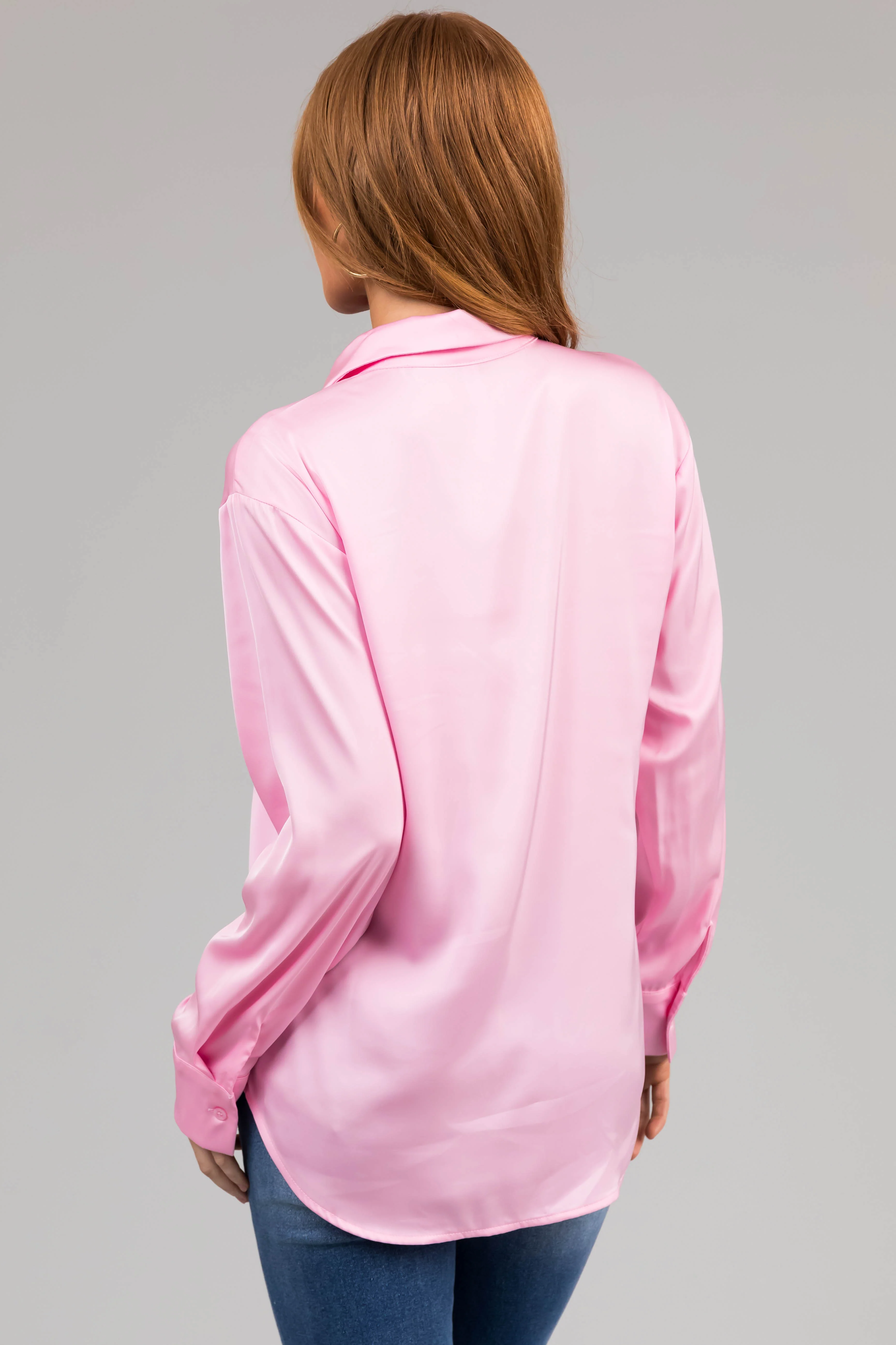 Blush Satin Button Front Collared Shirt