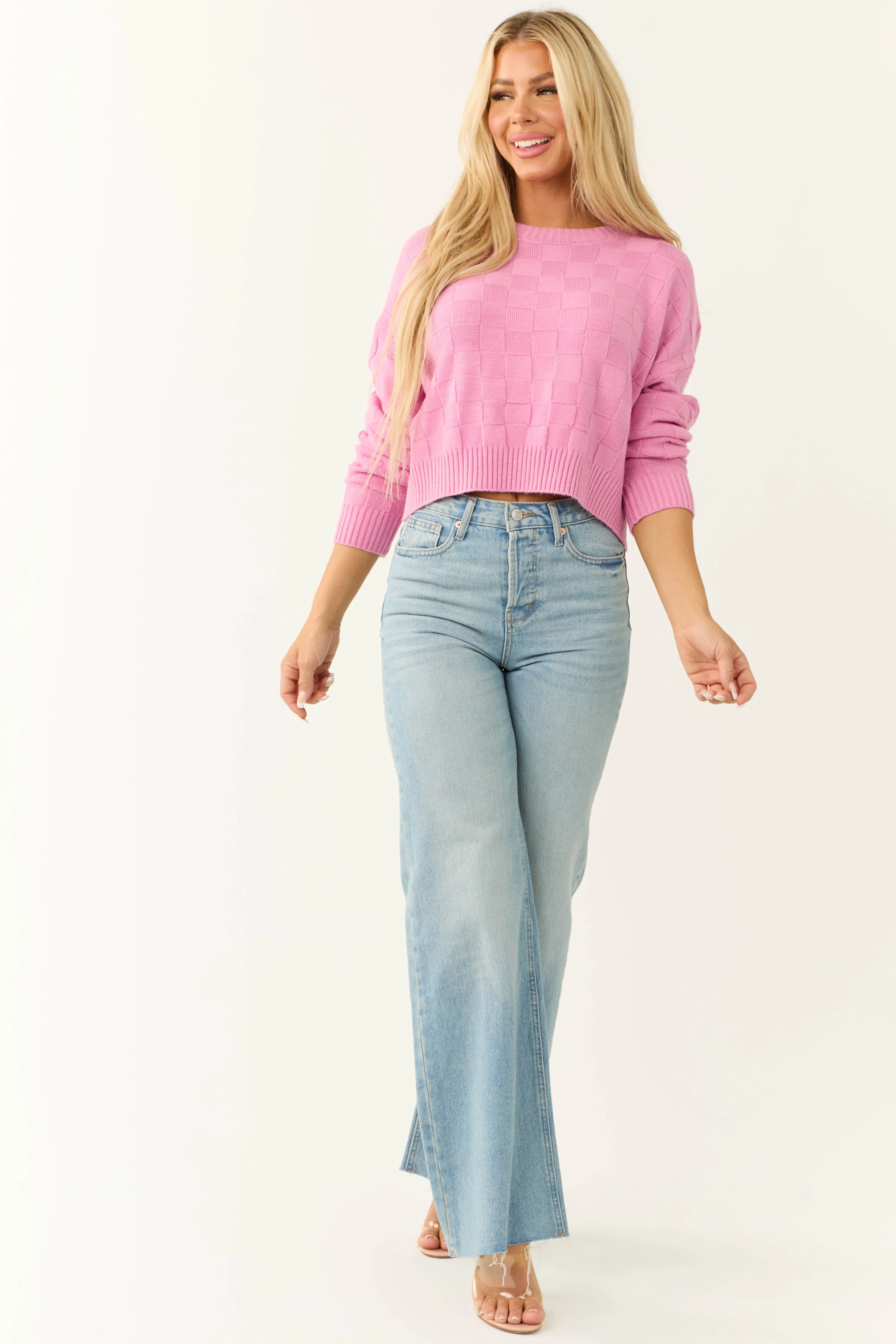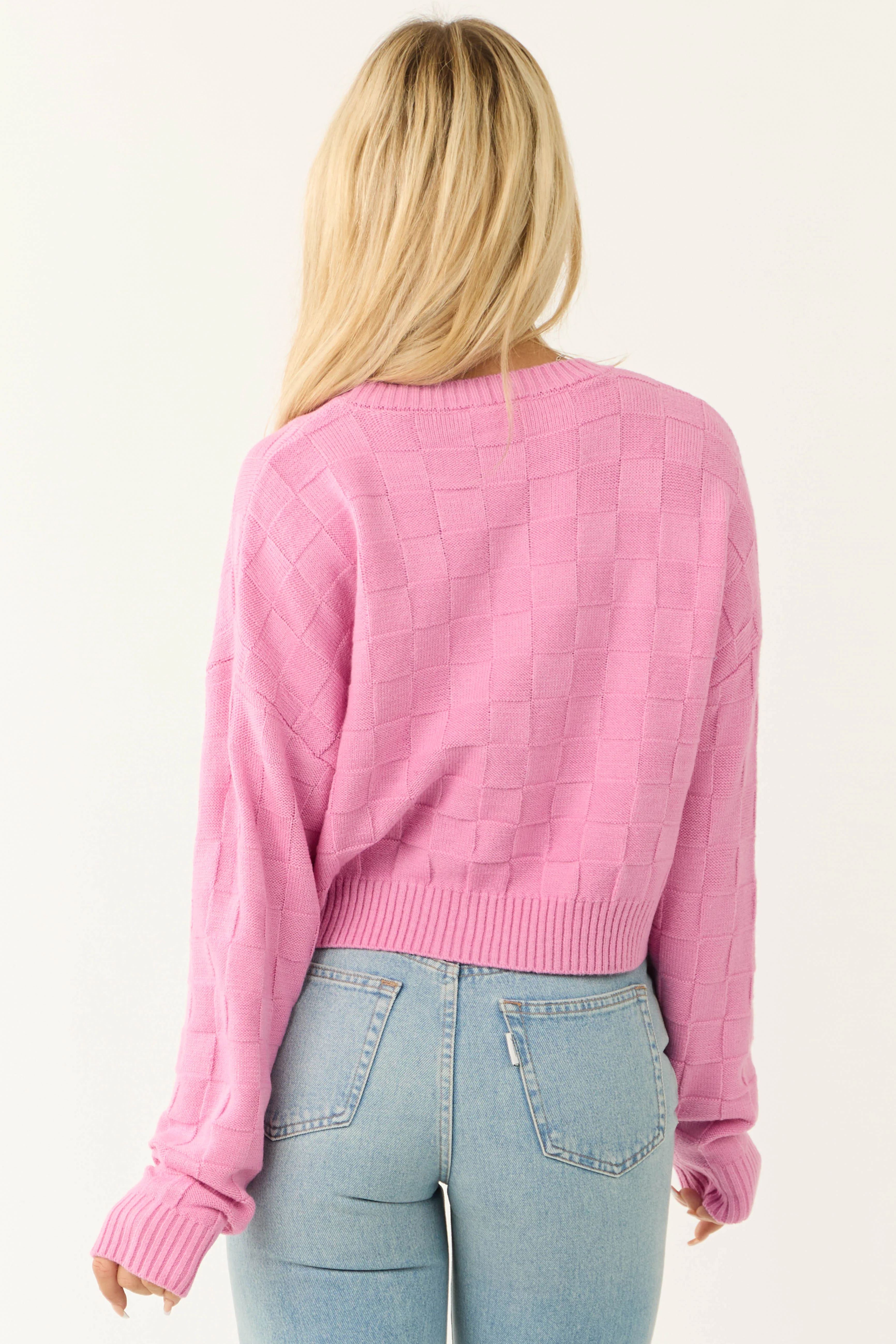 Bubblegum Checkered Texture Long Sleeve Sweater