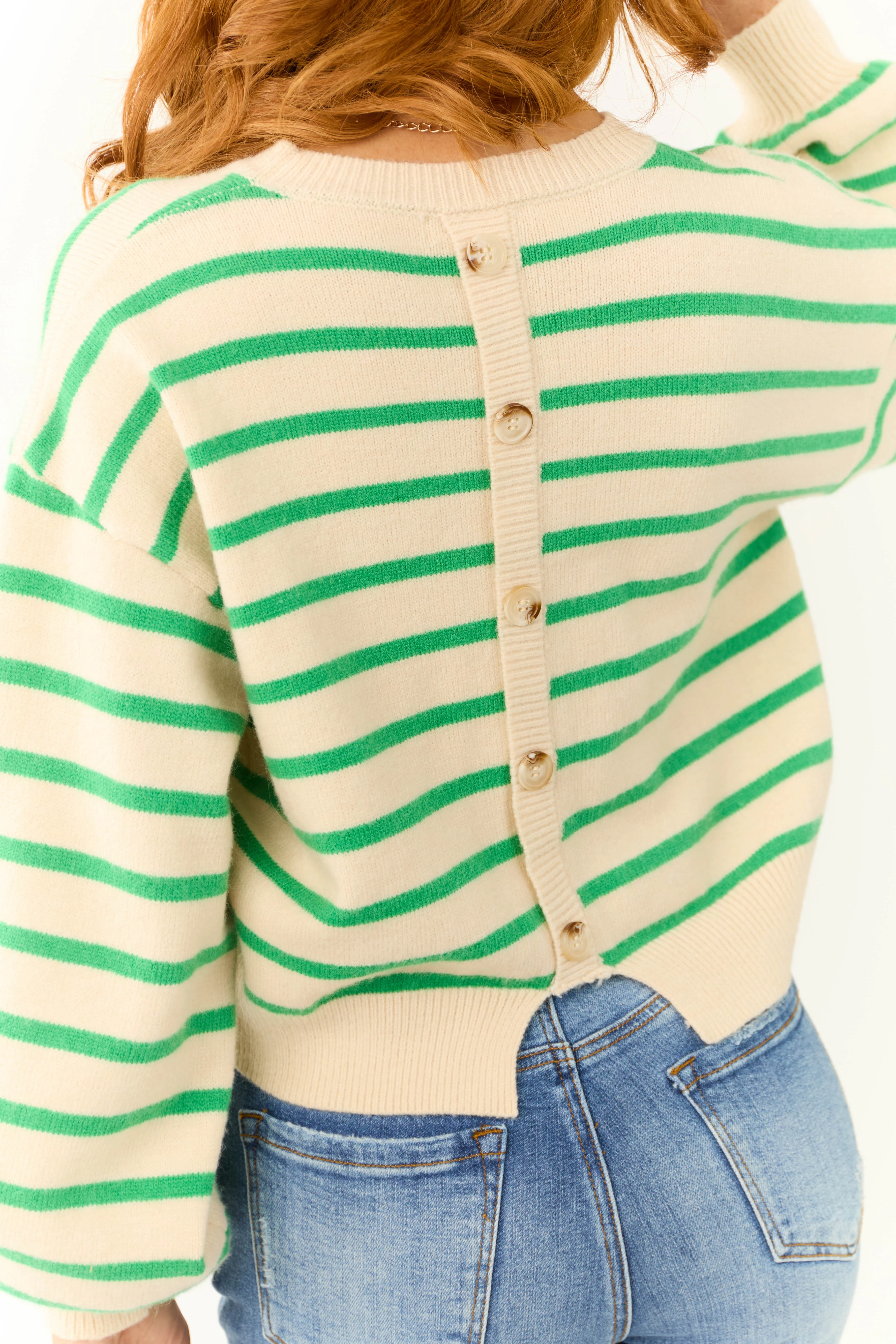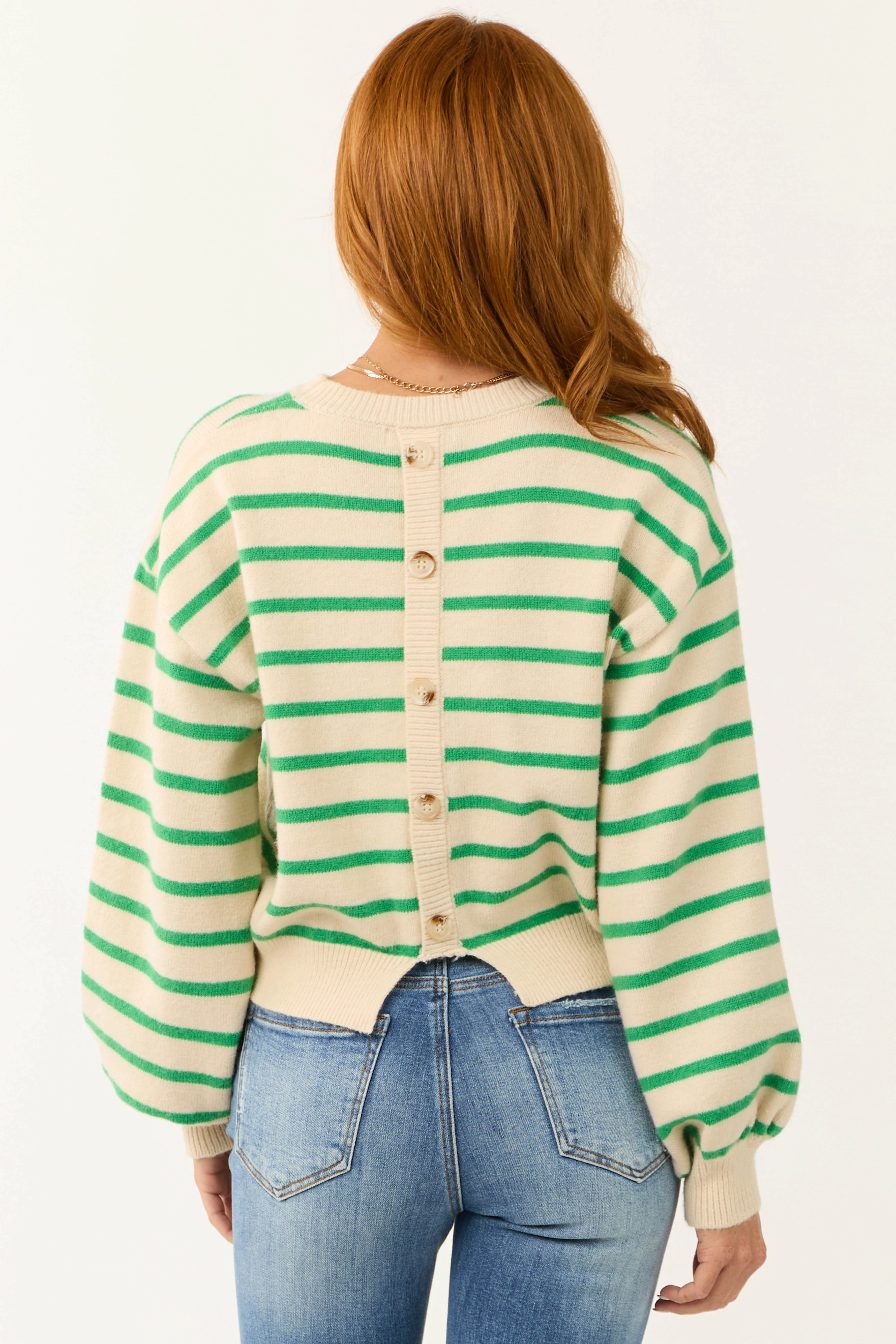 Coconut and Kelly Green Buttoned Striped Sweater