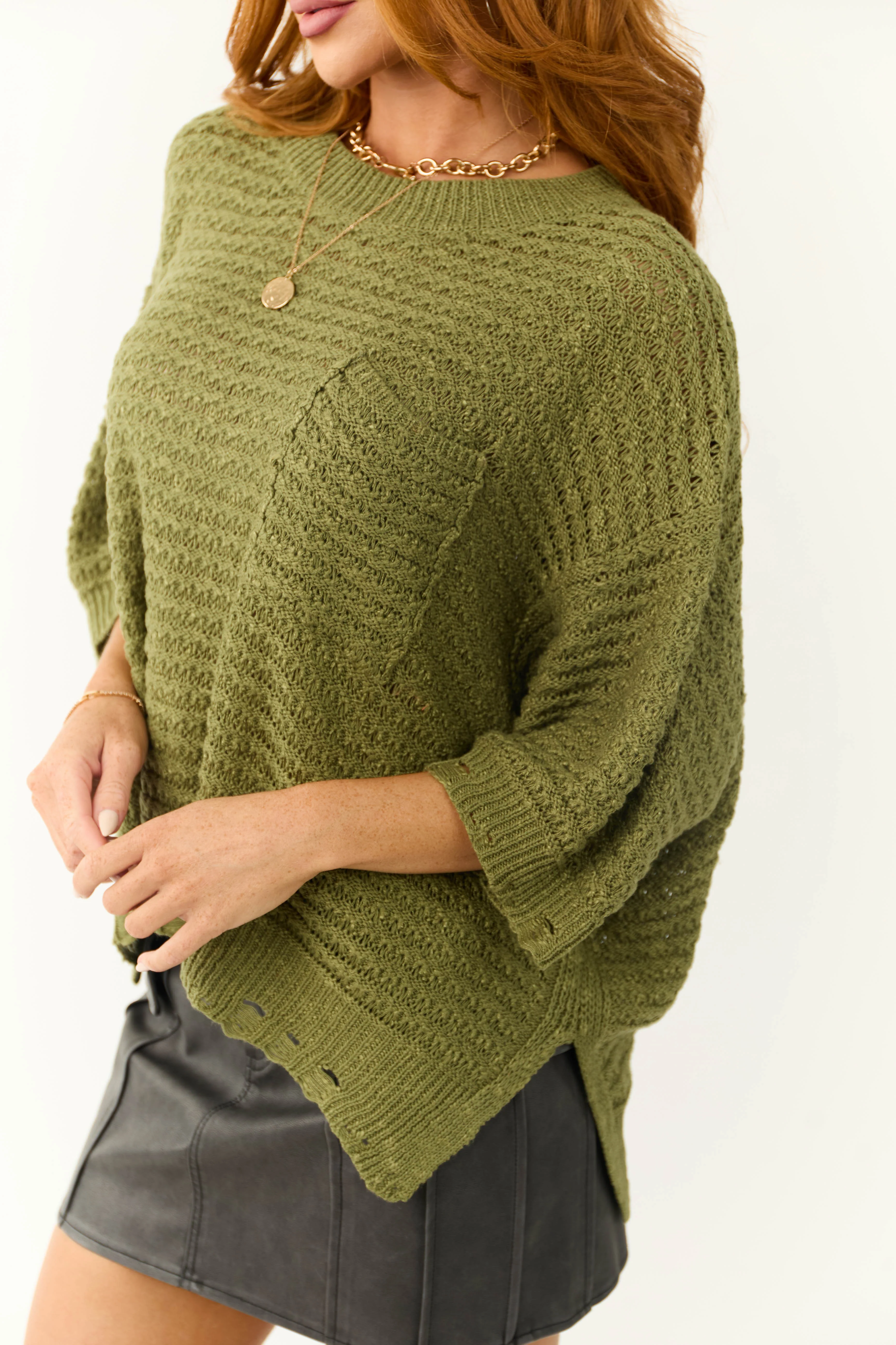 Army Green Oversized Knit Half Sleeve Top
